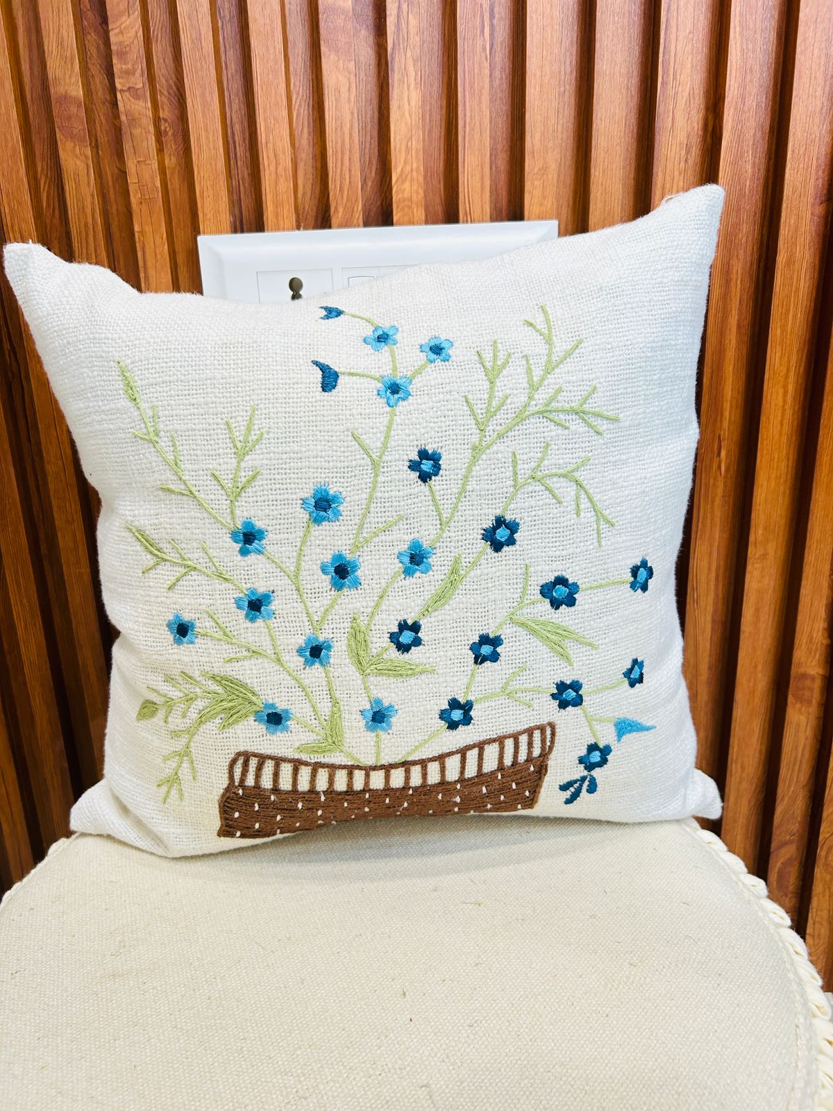 Mini blue flower jute cotton cushion cover