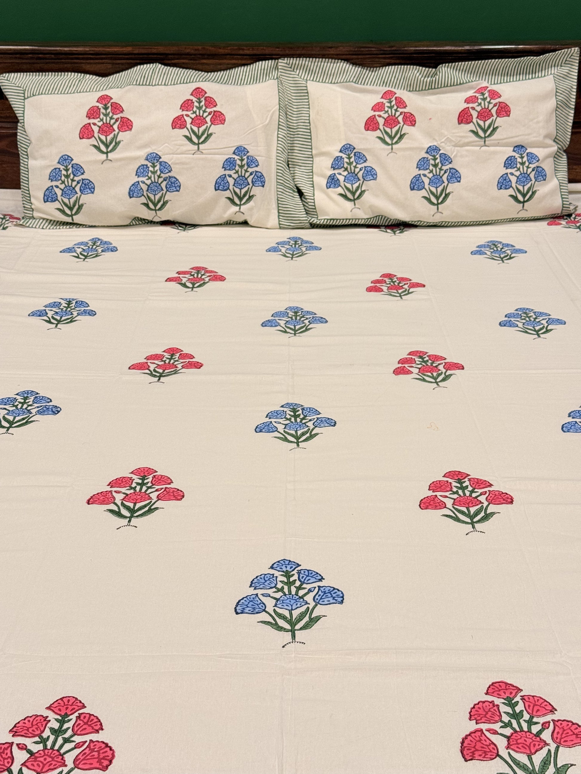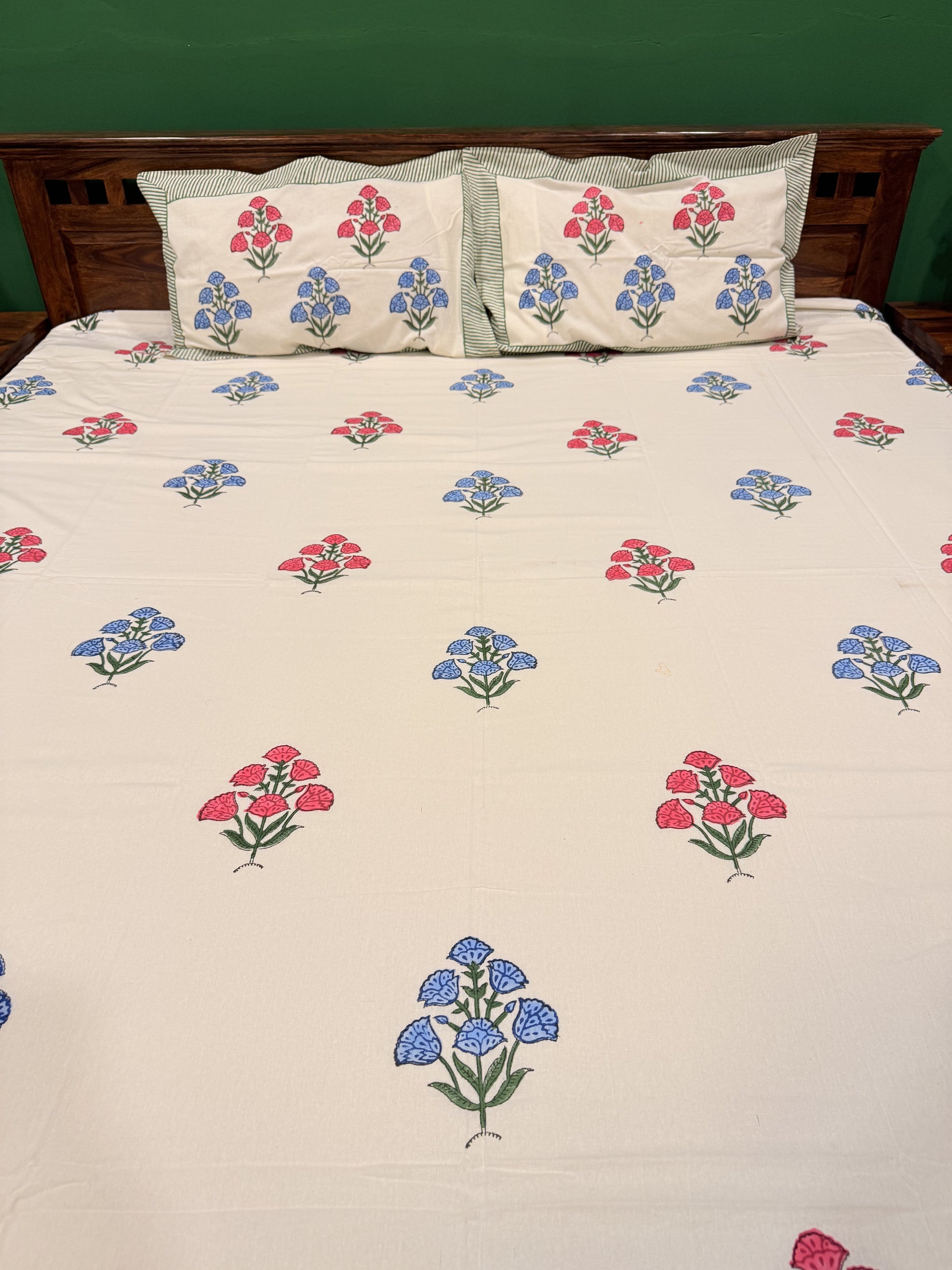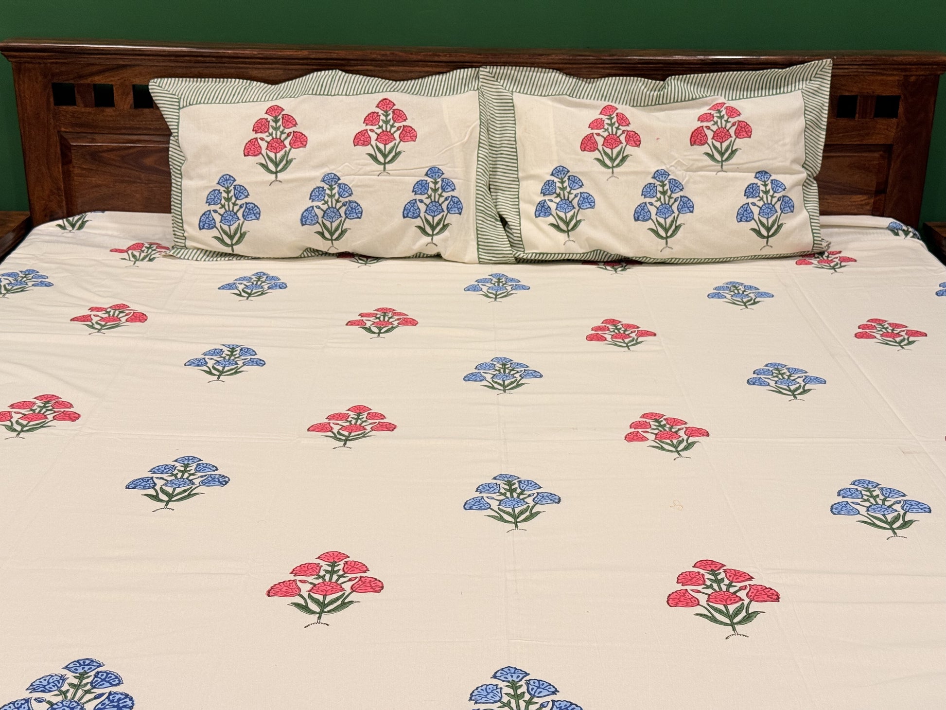 Multicolor Premium Cotton Handblock Double Bedsheet