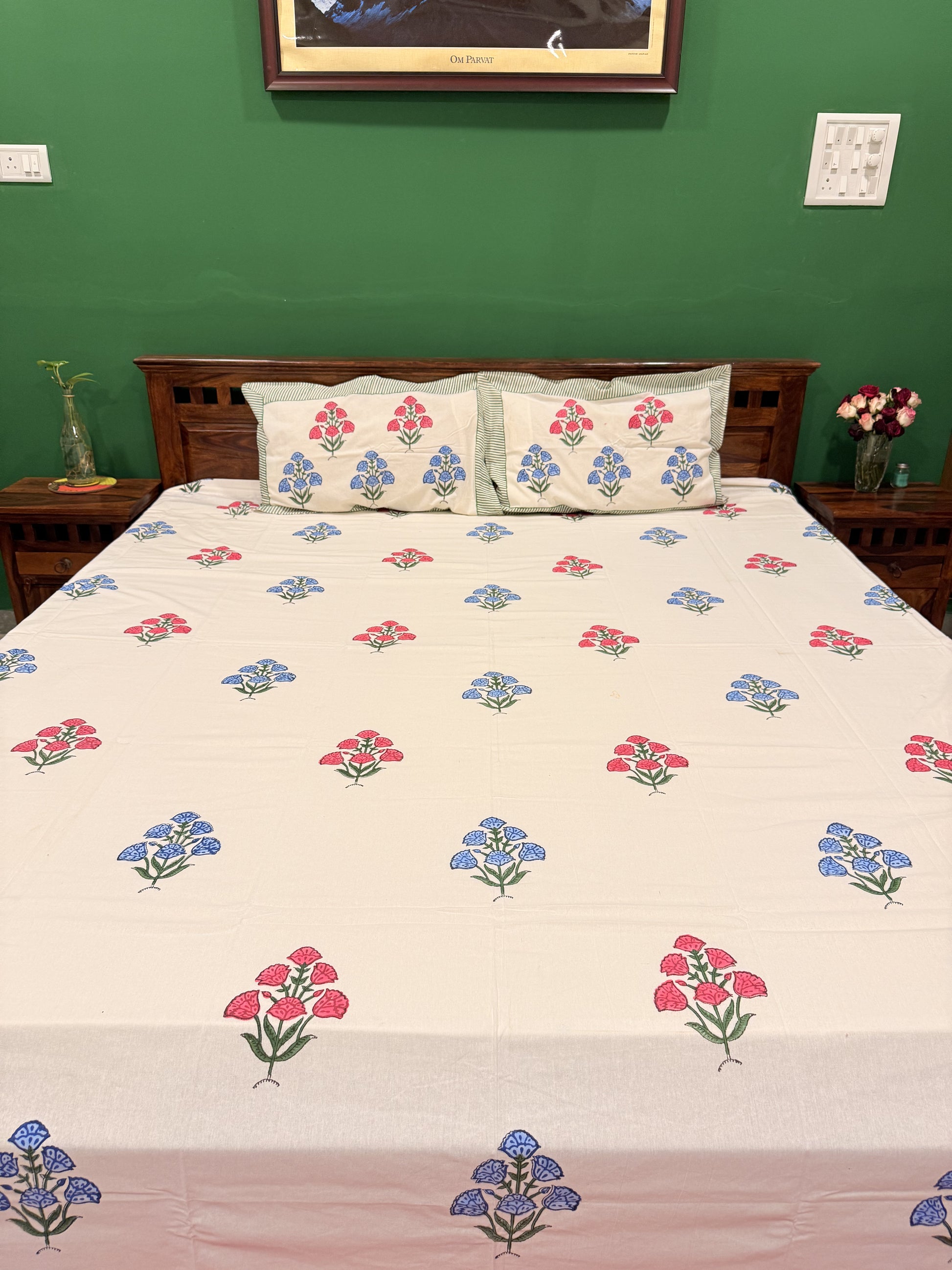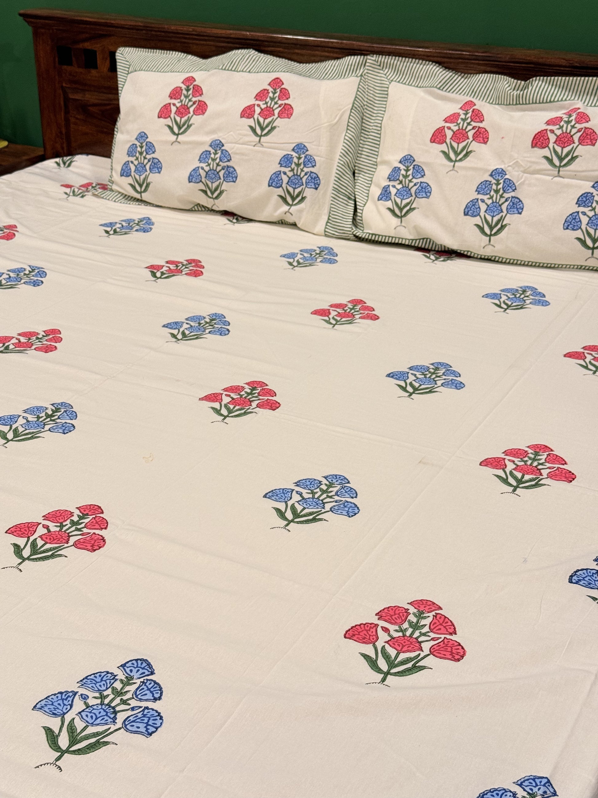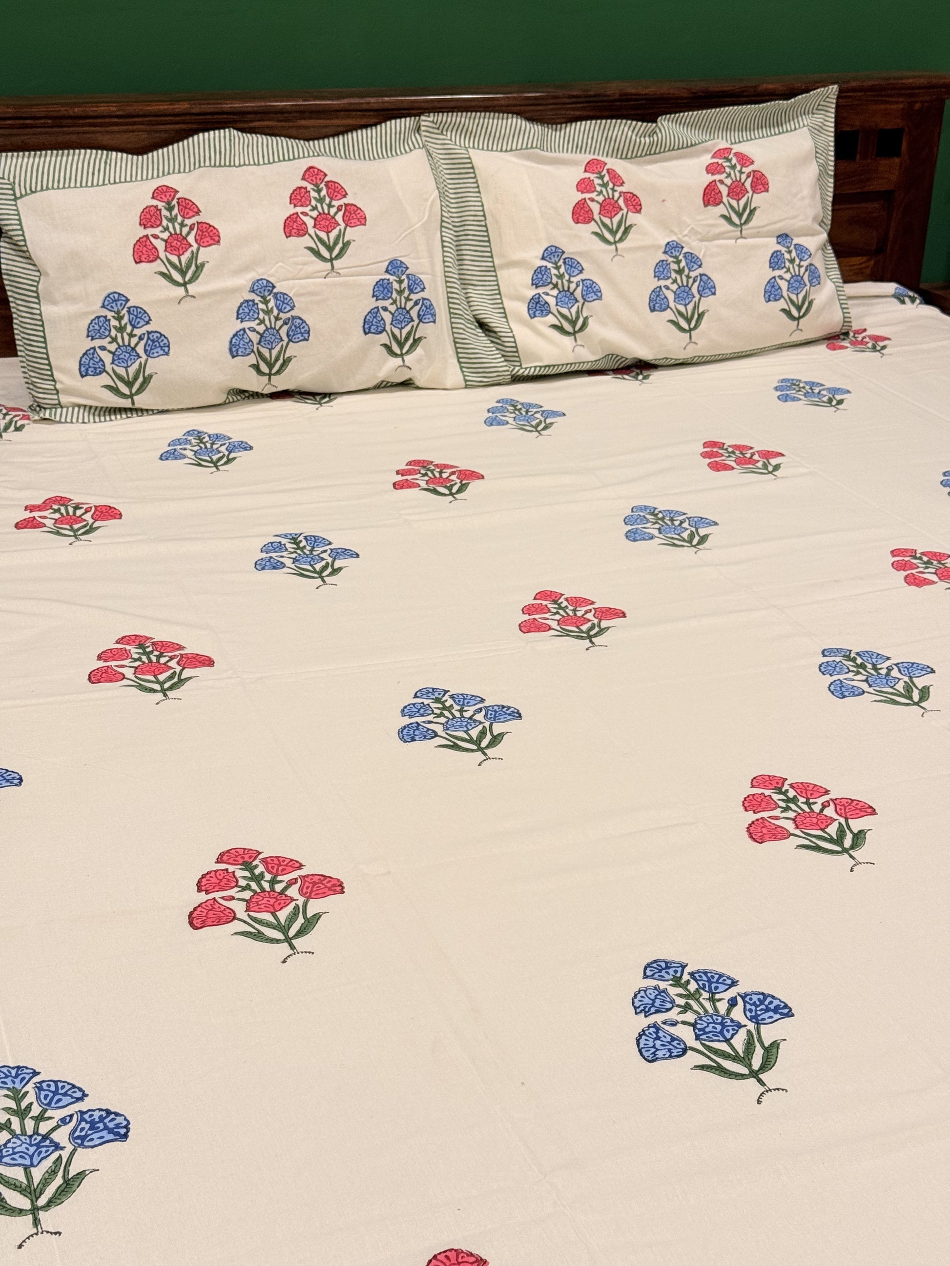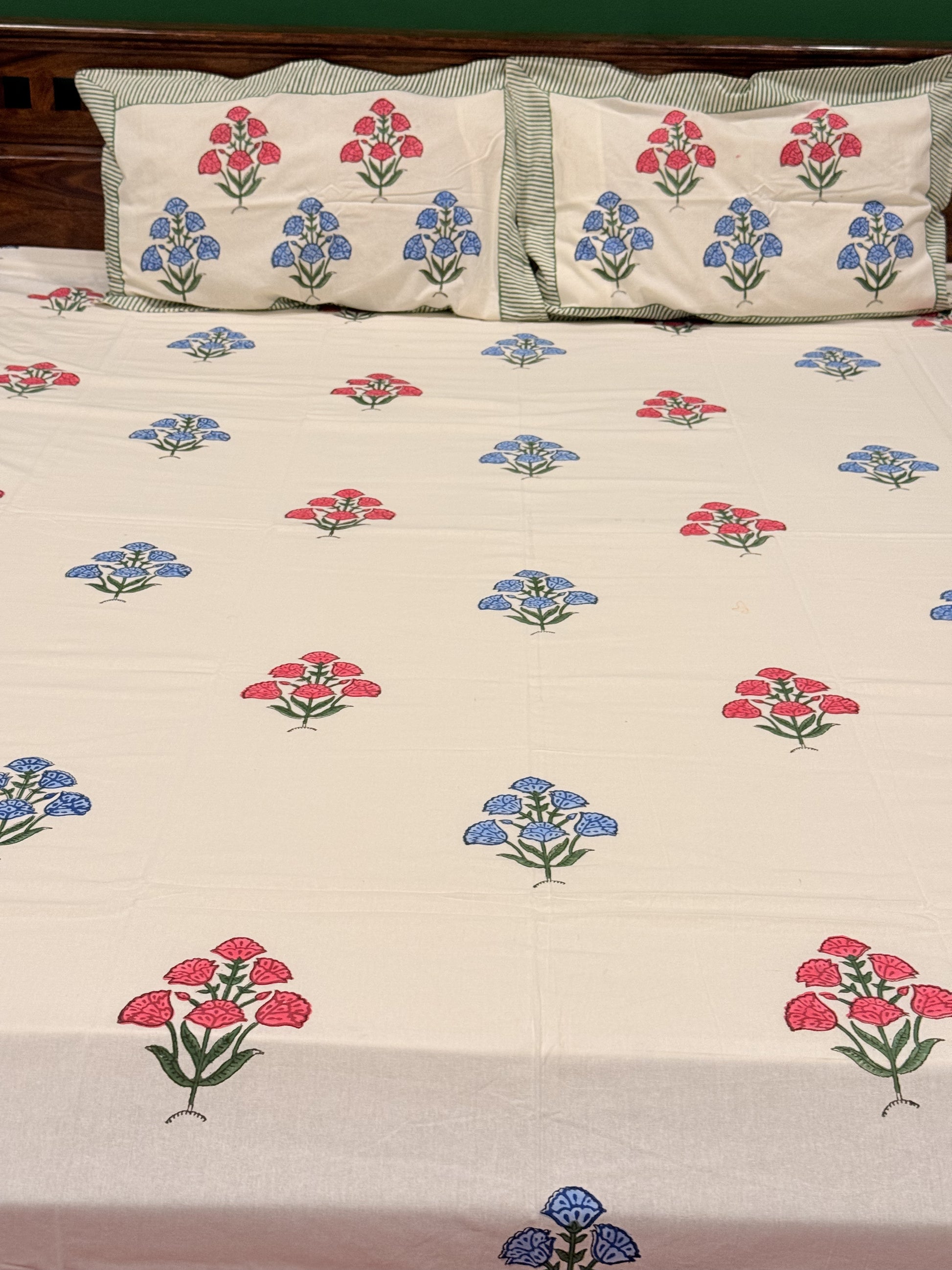 Multicolor Premium Cotton Handblock Double Bedsheet