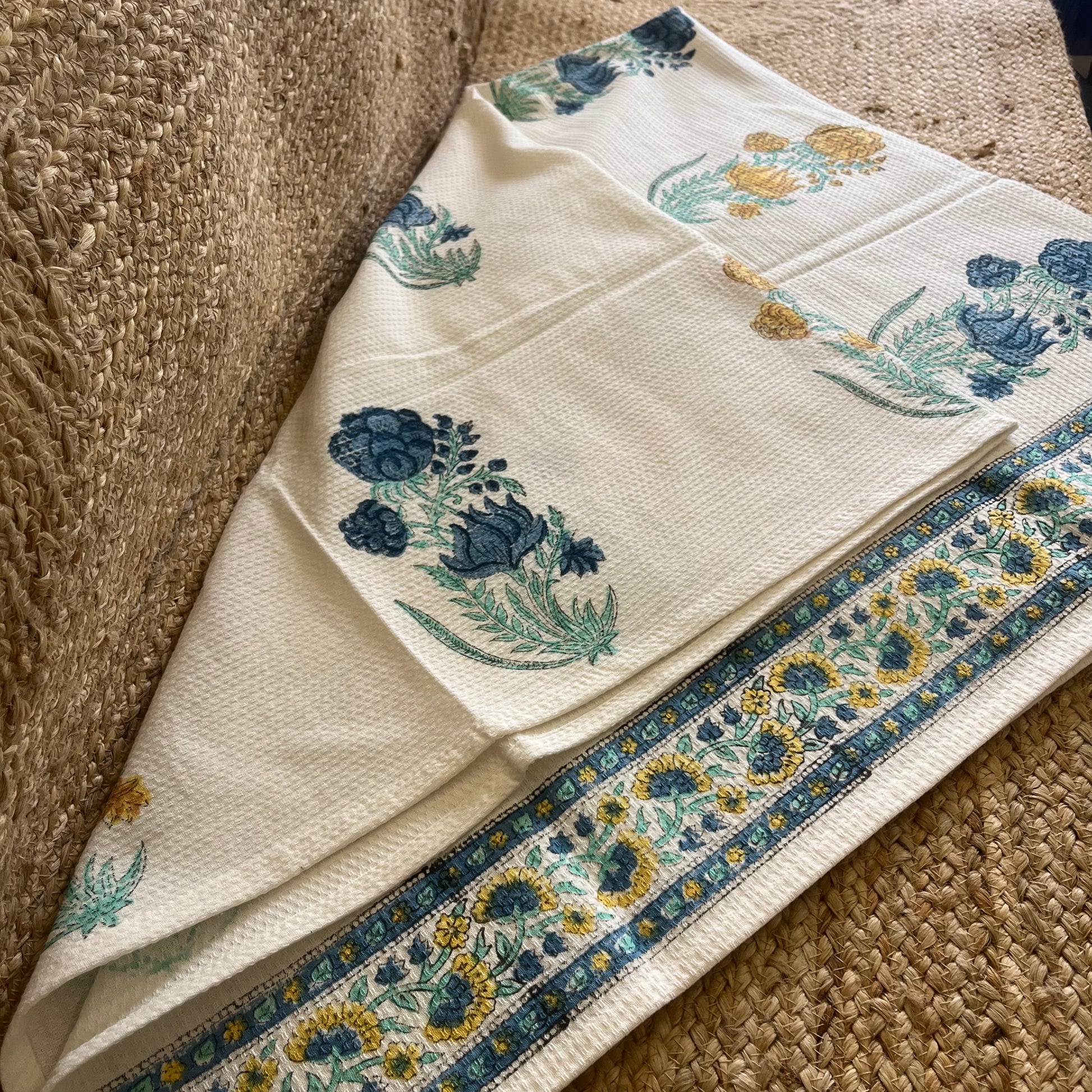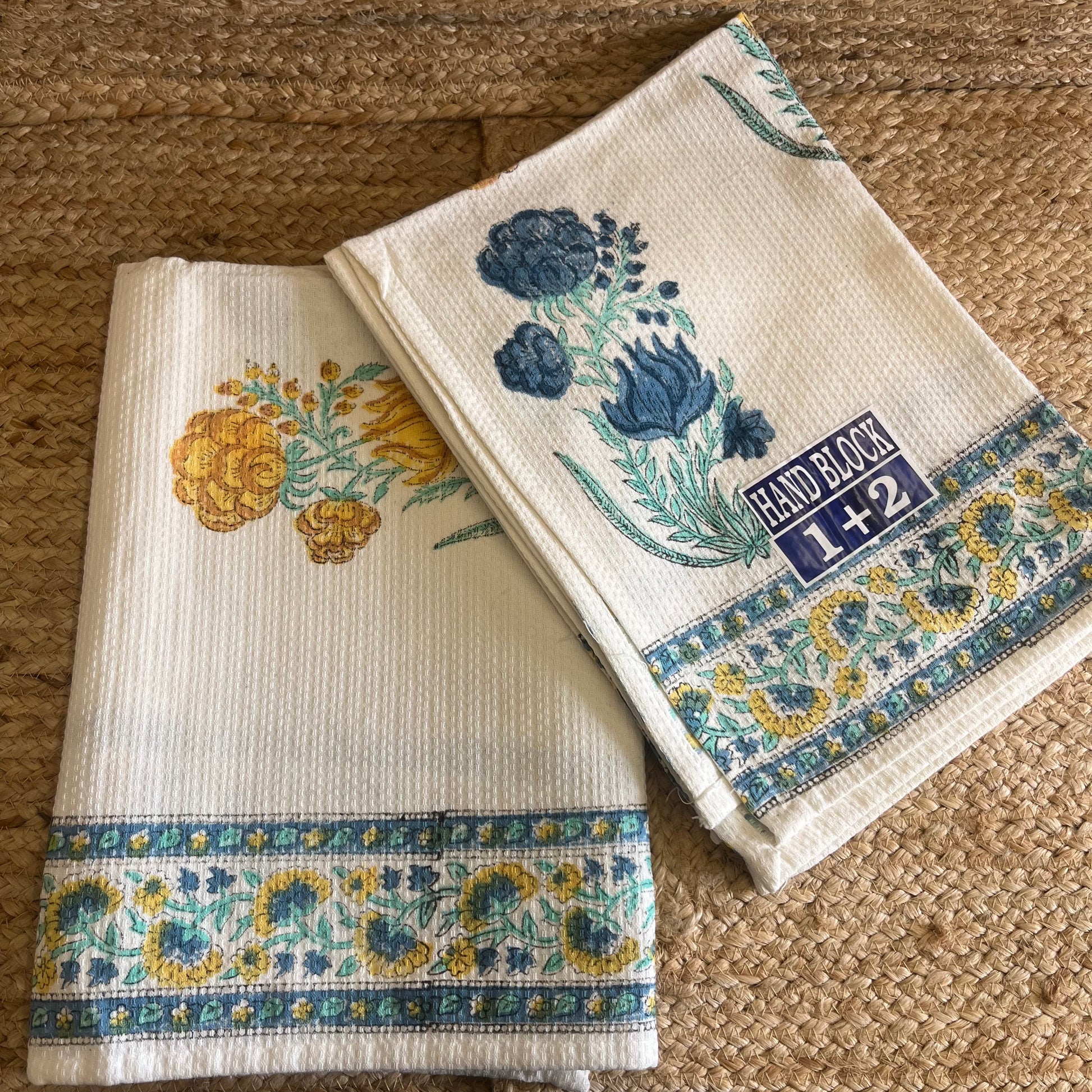 Waffle Cotton Handblock Printed Towel Set – Soft, Absorbent & Artisanal ✨