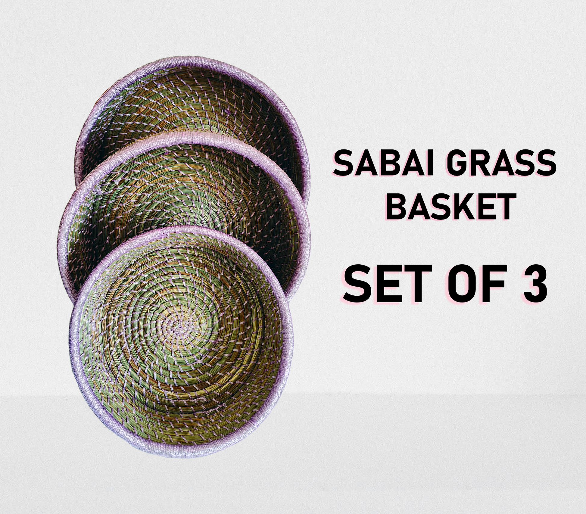 Purple Hand-Crafted Sabai Grass Jute Organiser (Set of 3)
