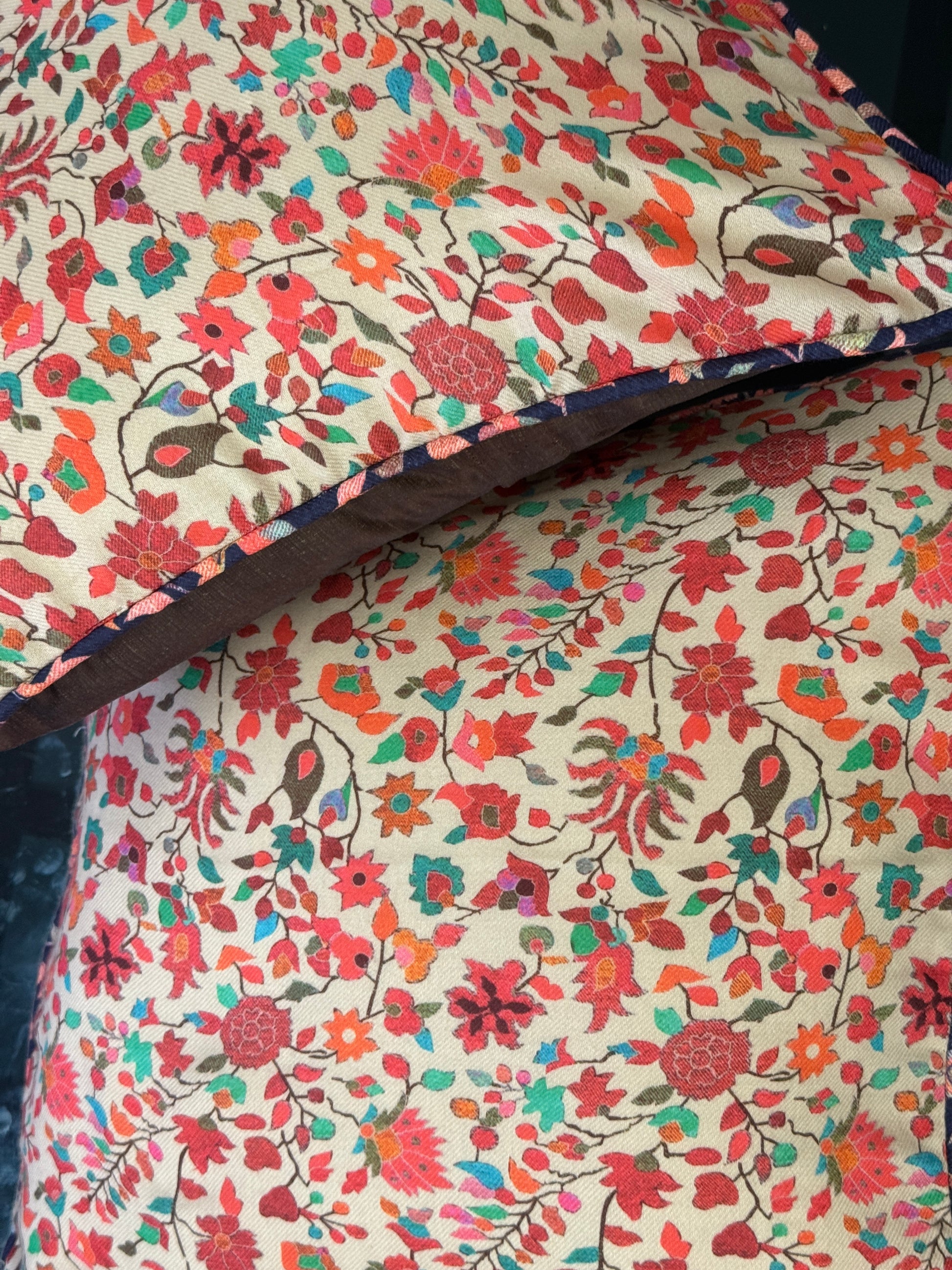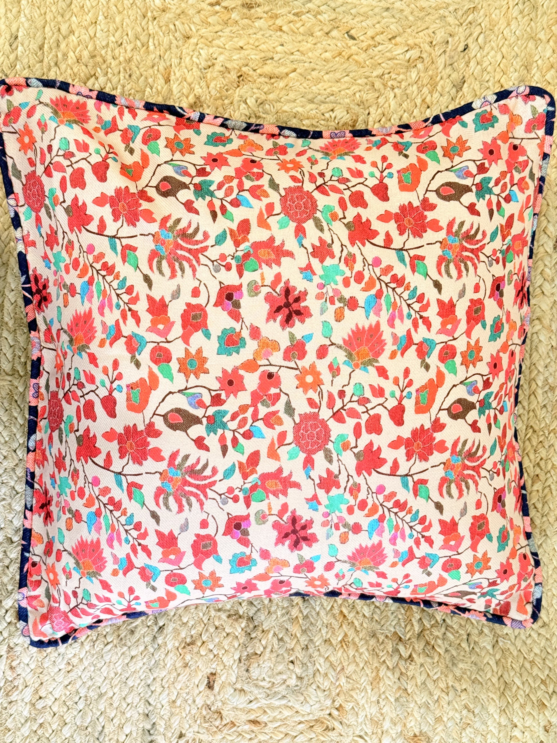 Pashmina Beige Pink Floral Cushion Cover – Size 16*16