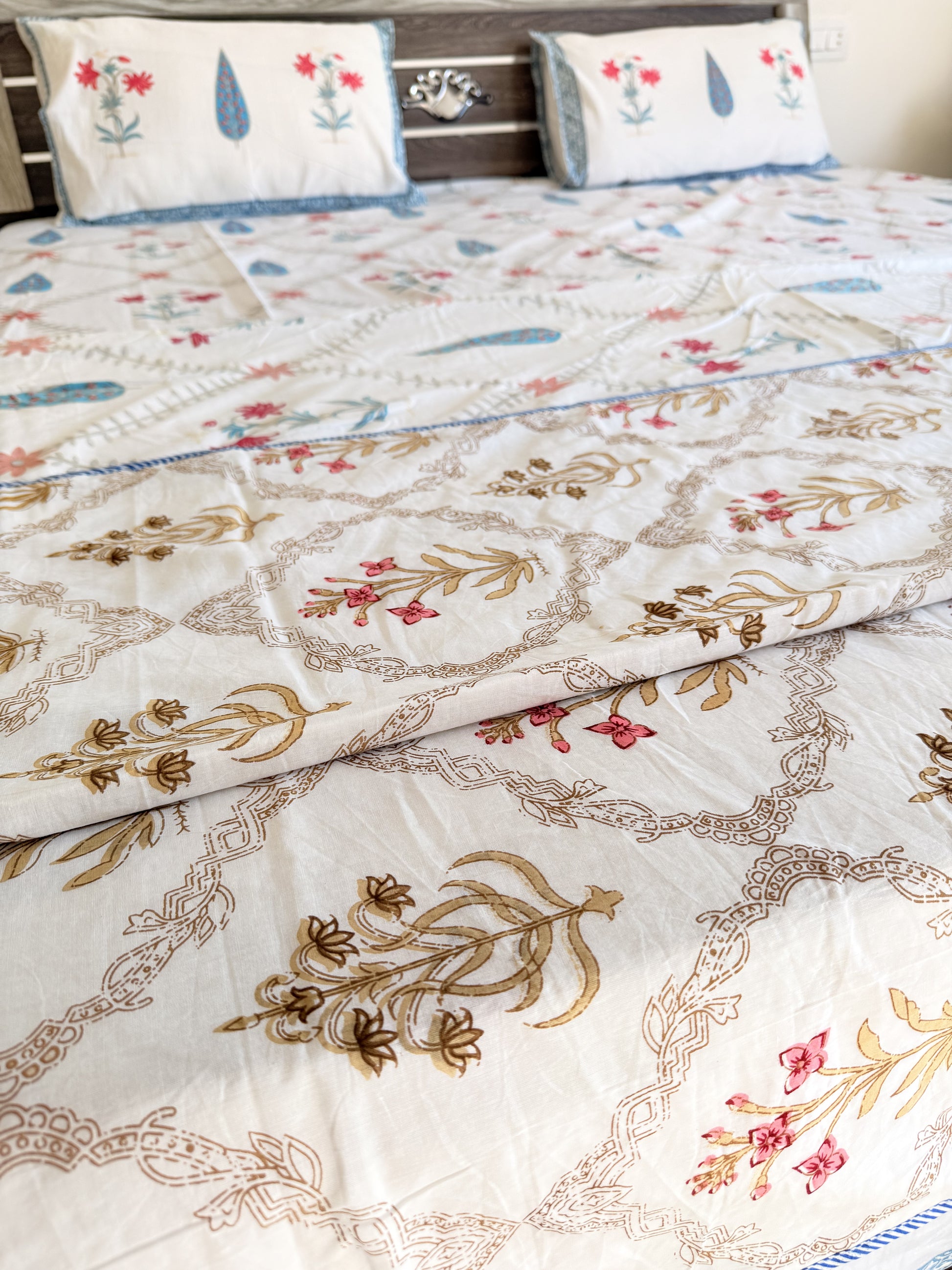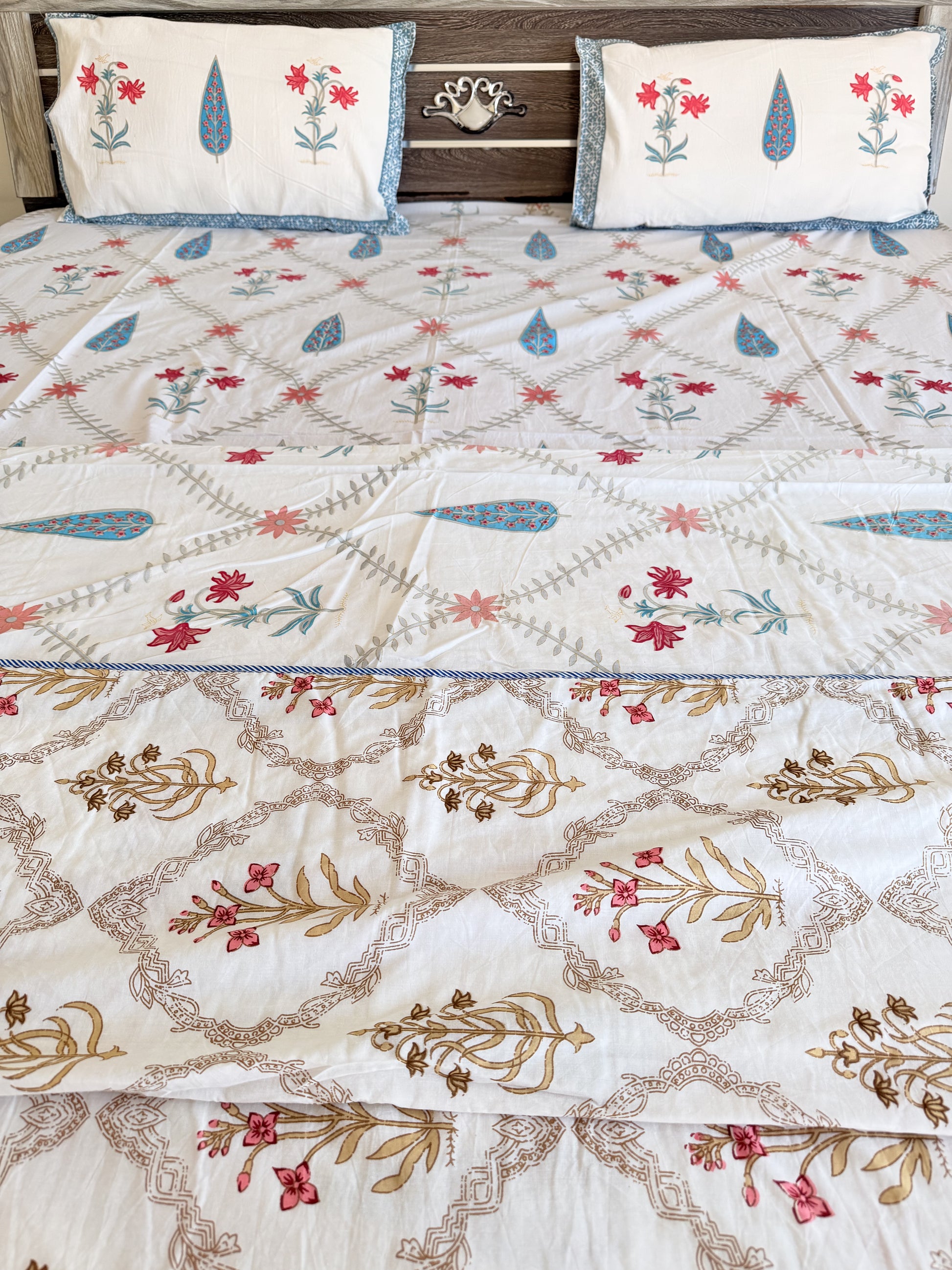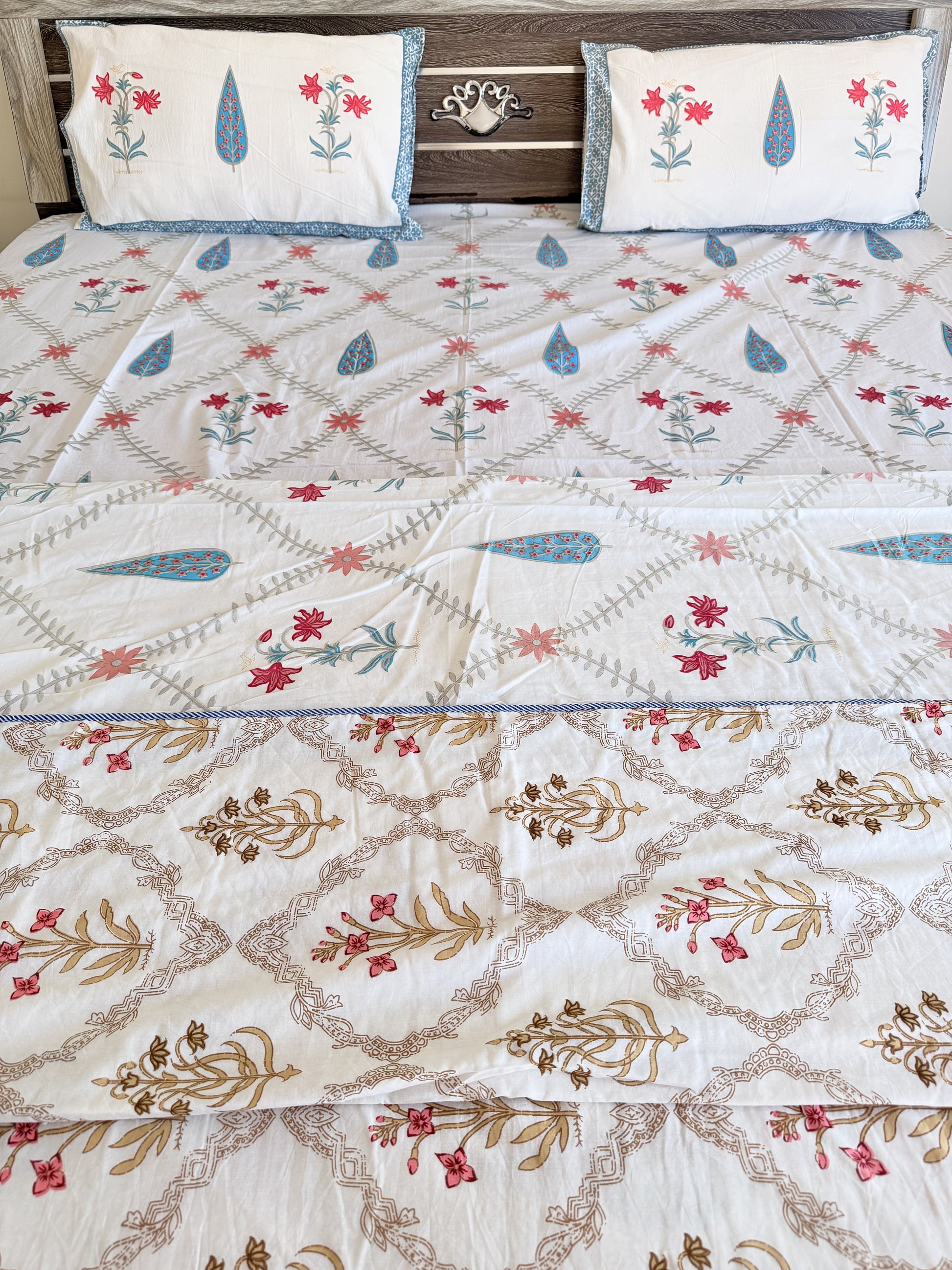 Wrap yourself in the comfort of tradition with this exquisite handmade dohar bedsheet set, a perfect blend of artistry, softness, and durability!