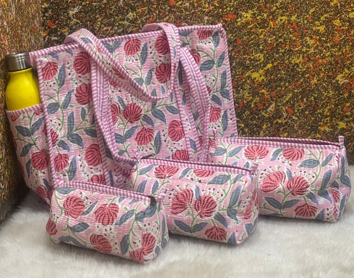 Pastel Pink Tote Bag with Set of 3 Pouches
