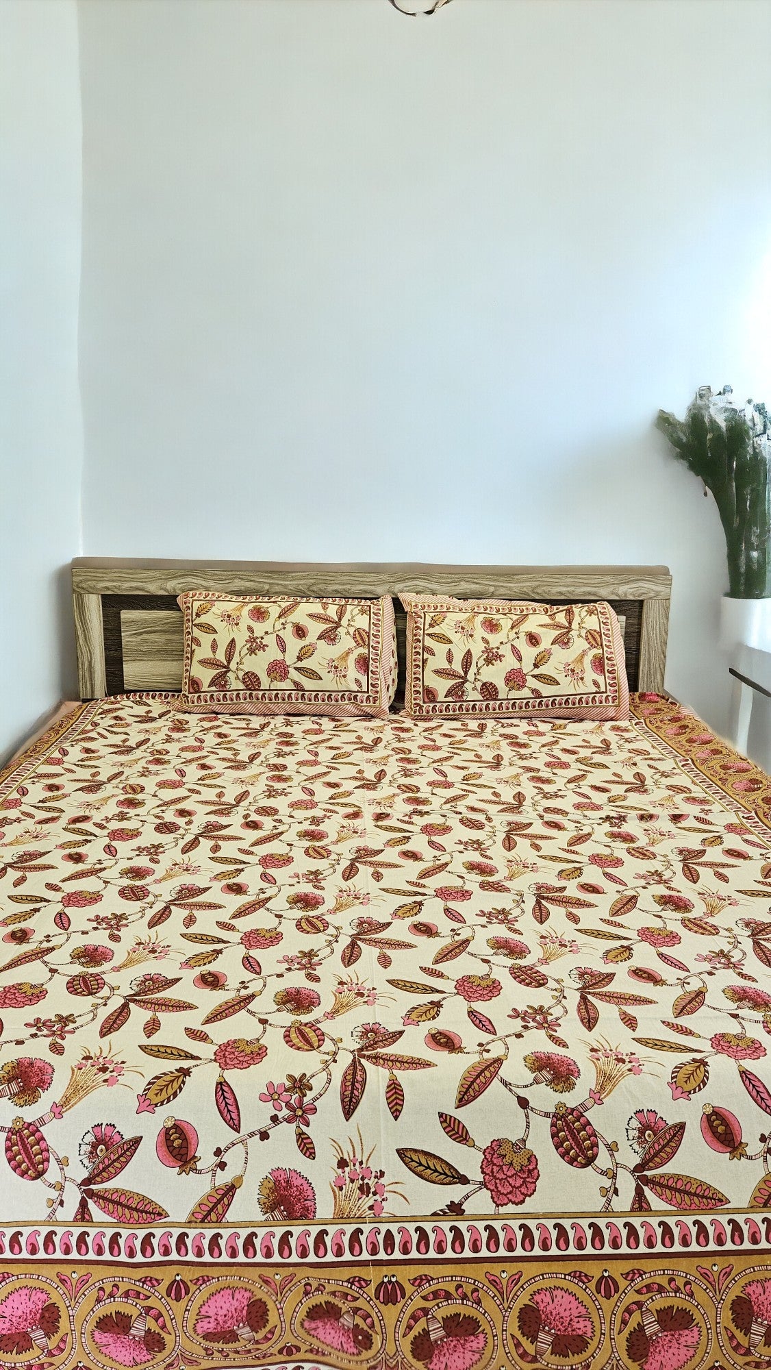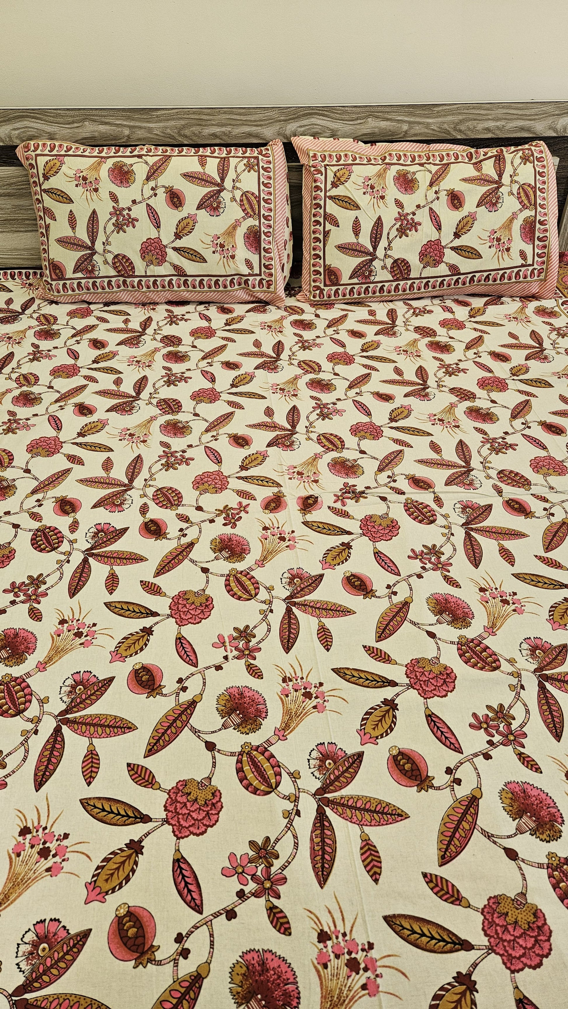 Peach Leaf Double Bedsheet with 2 Pillow Cover