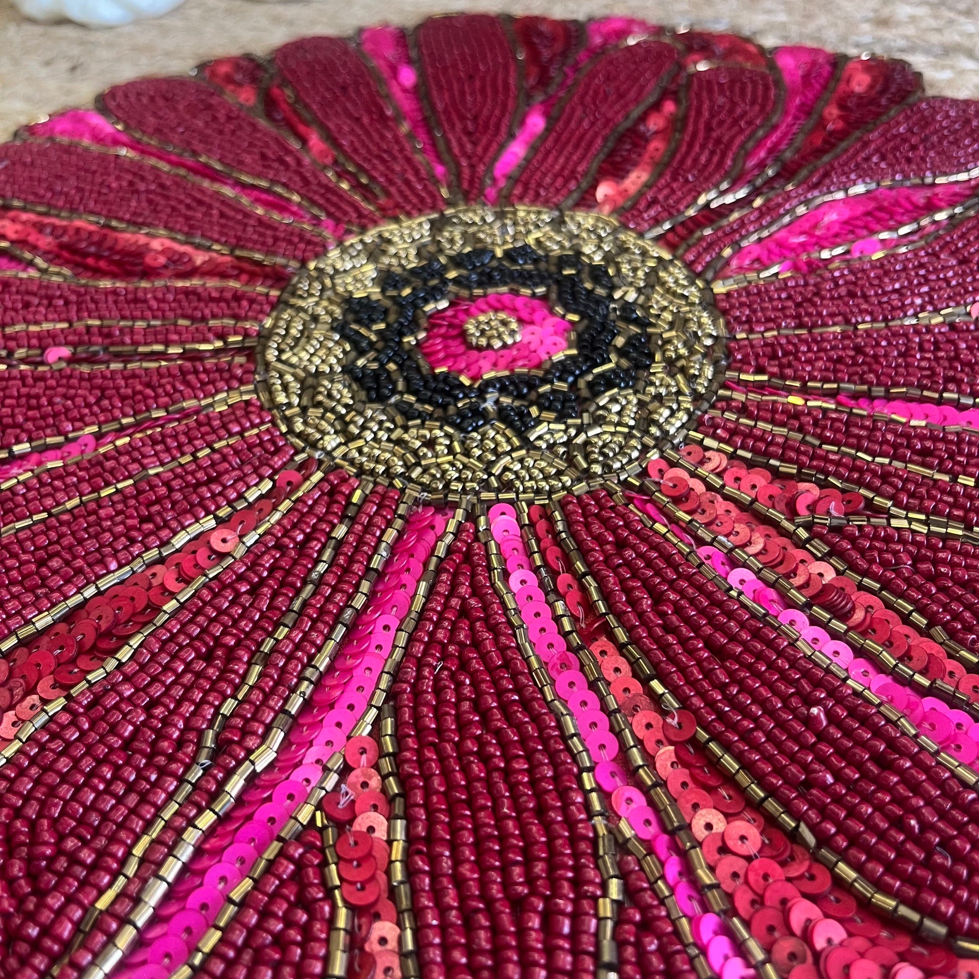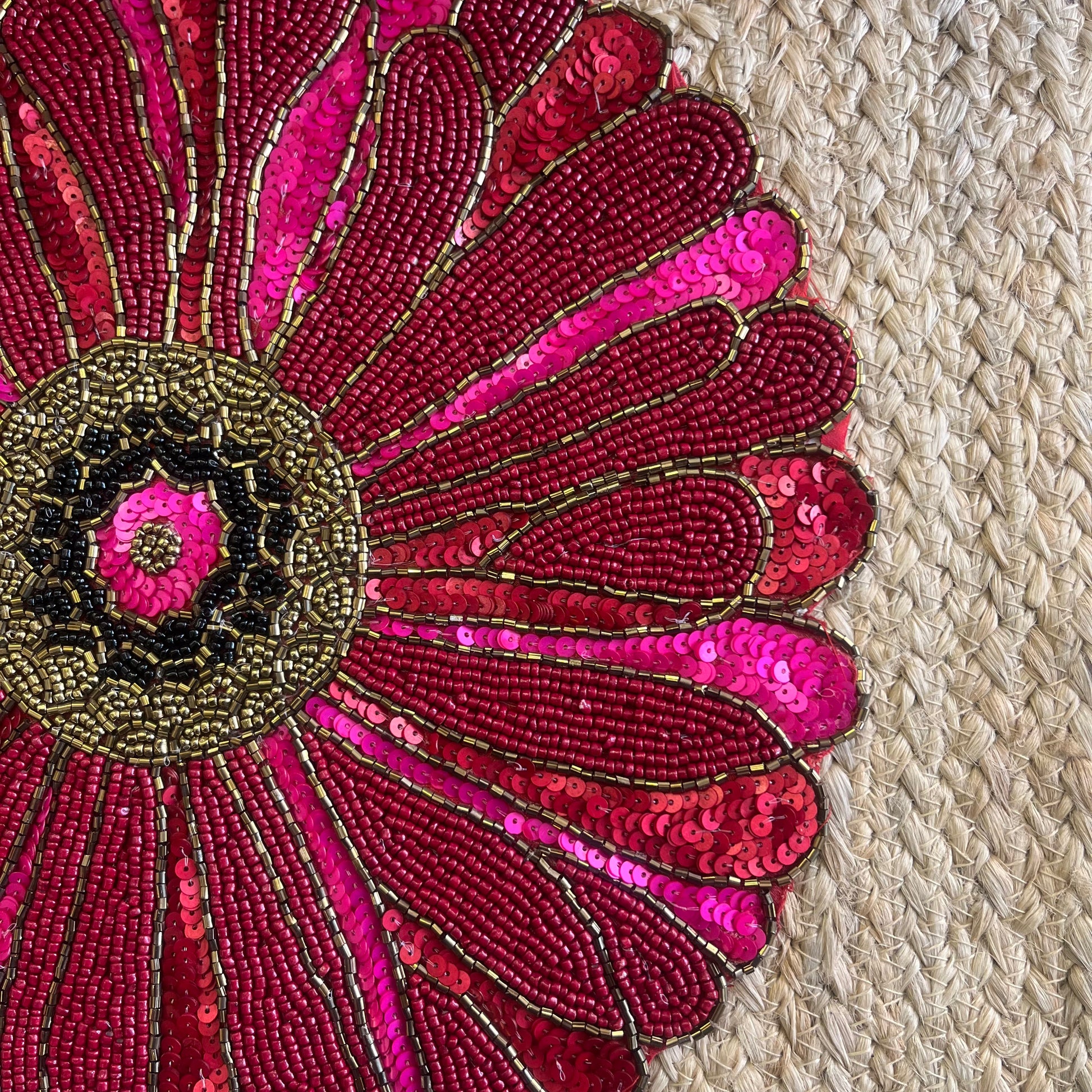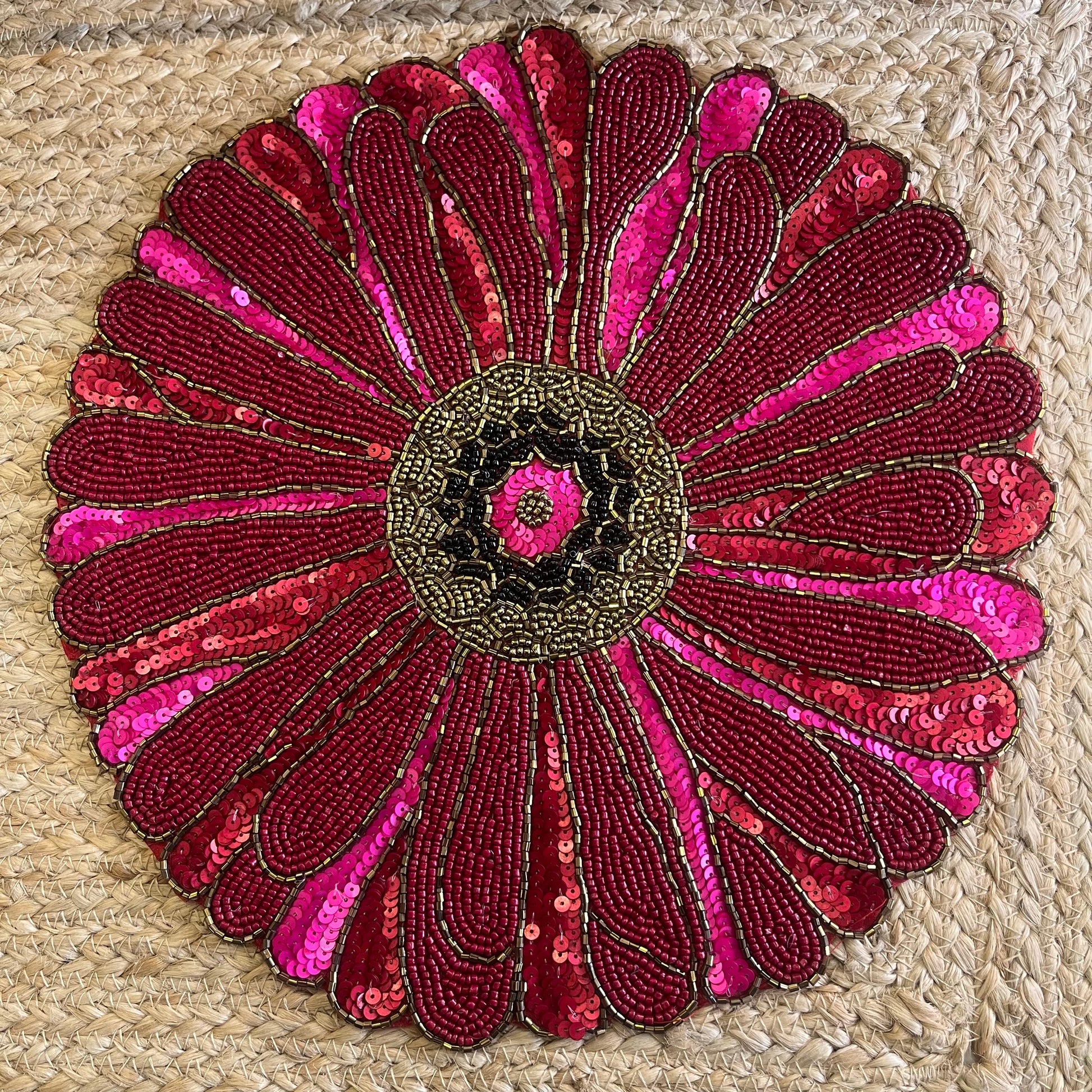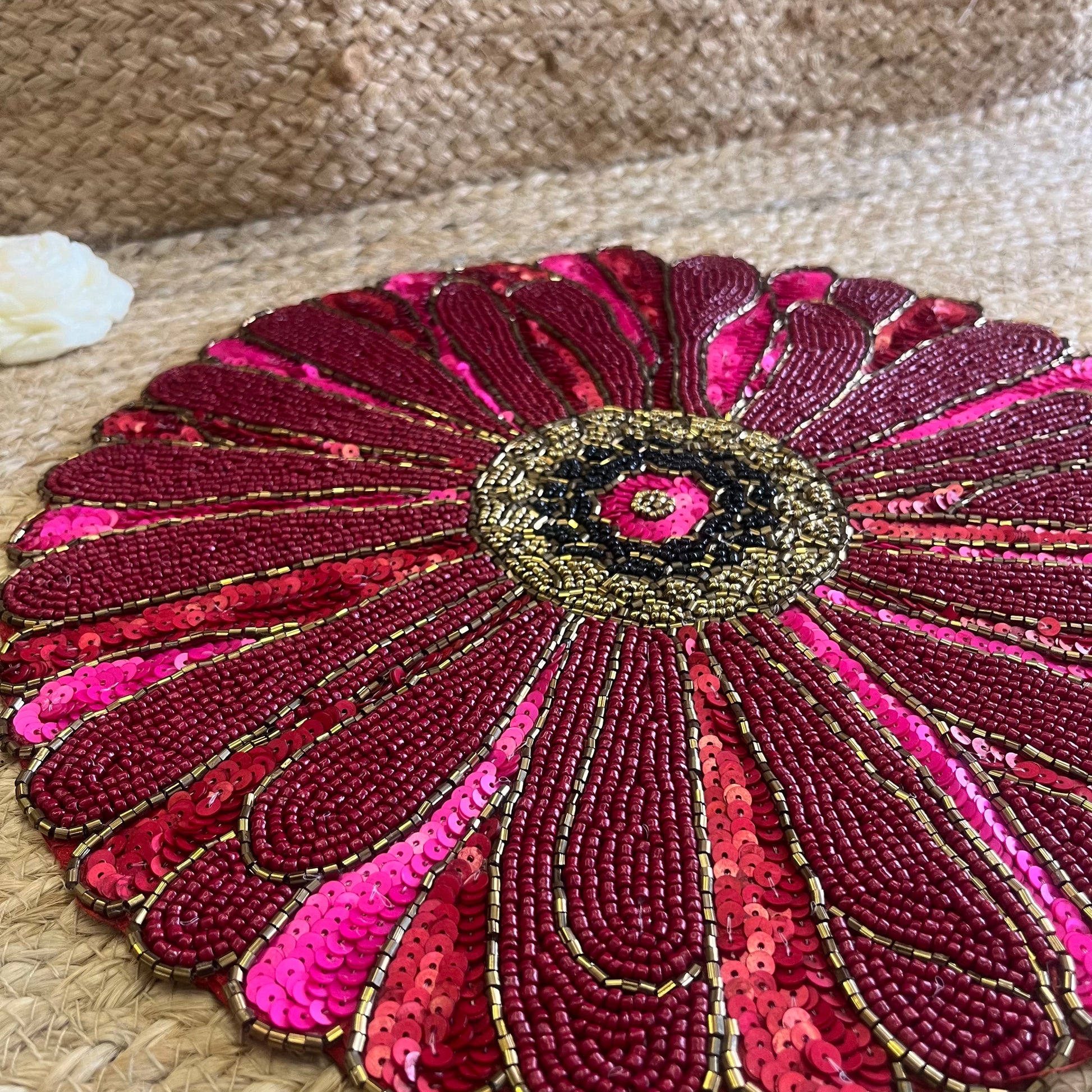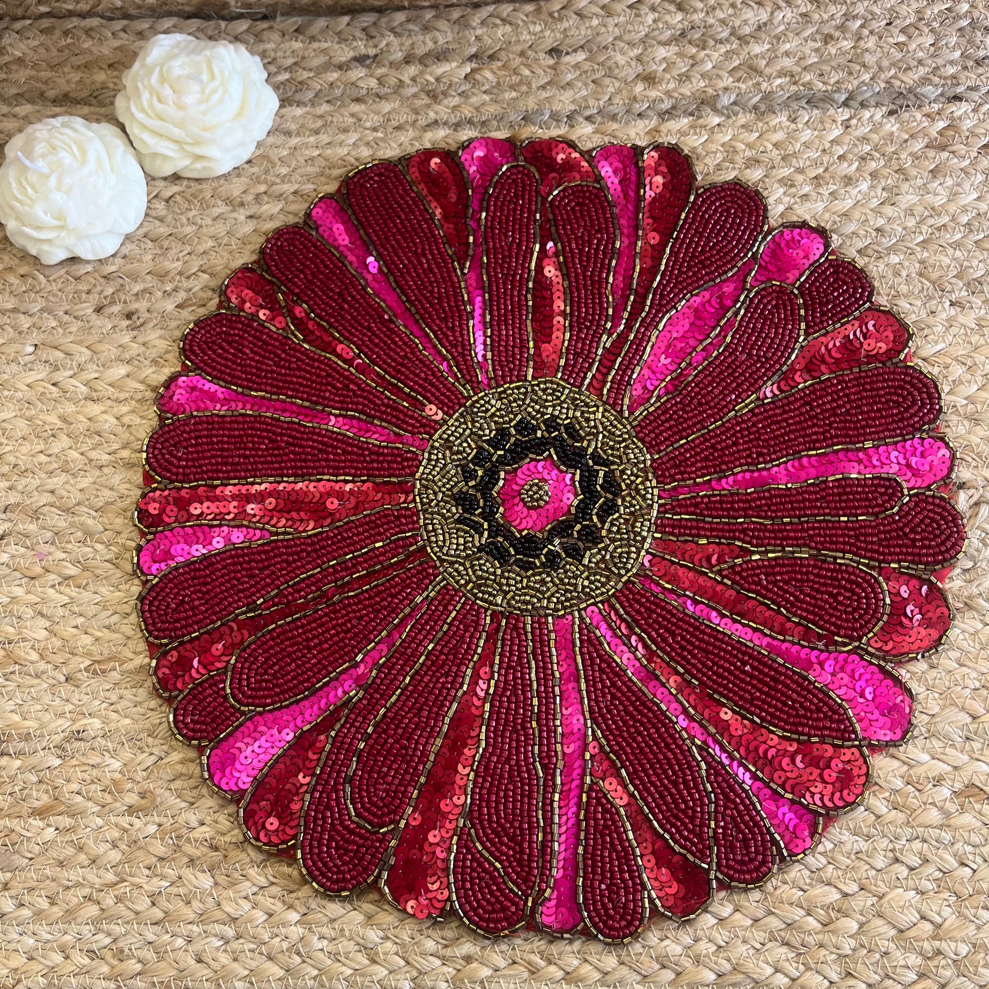 Pink Abstract Flower Handmade Glass Beaded Table Placemat