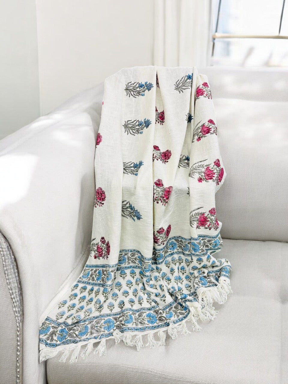 Pink and Blue Bunch of Floral Premium Handblock TNT Throws
