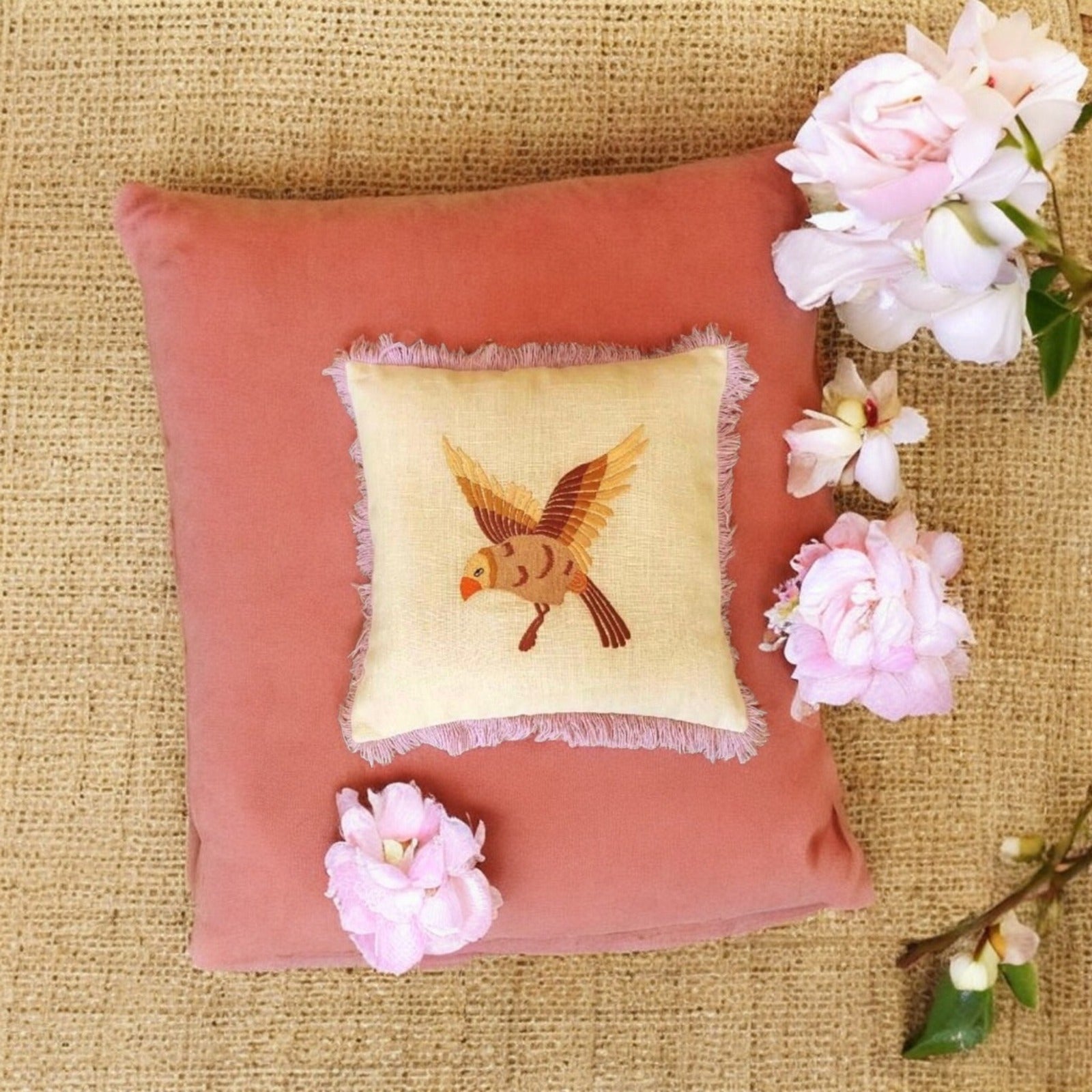 Bring life to your living space with our Pink Bird Frill Cushion Cover. The vibrant green and yellow tufted design adds a pop of color, while the delicate frill detailing gives a charming finish. Made from soft jute cotton, it's perfect for snuggling and enhancing your home’s style.