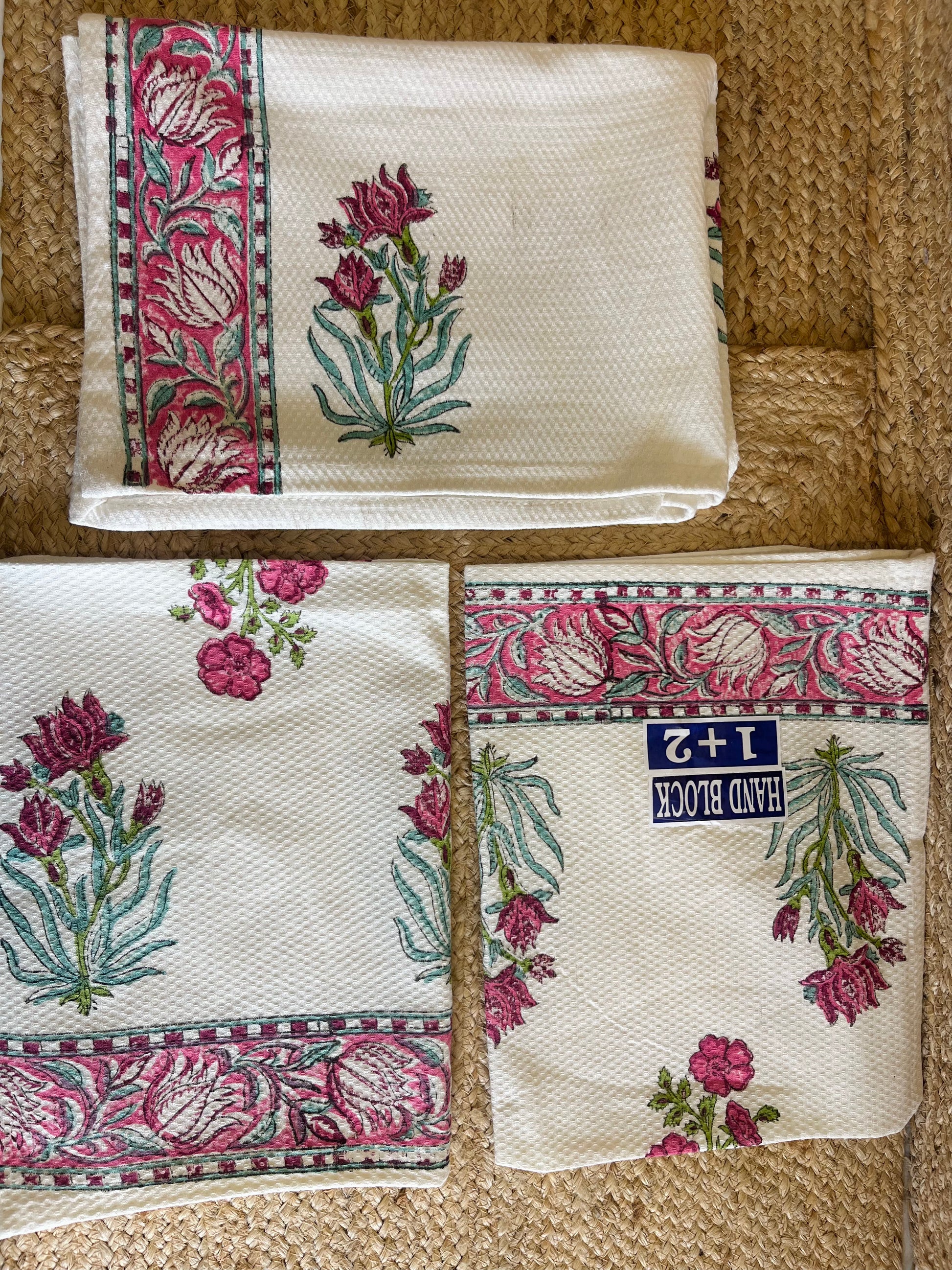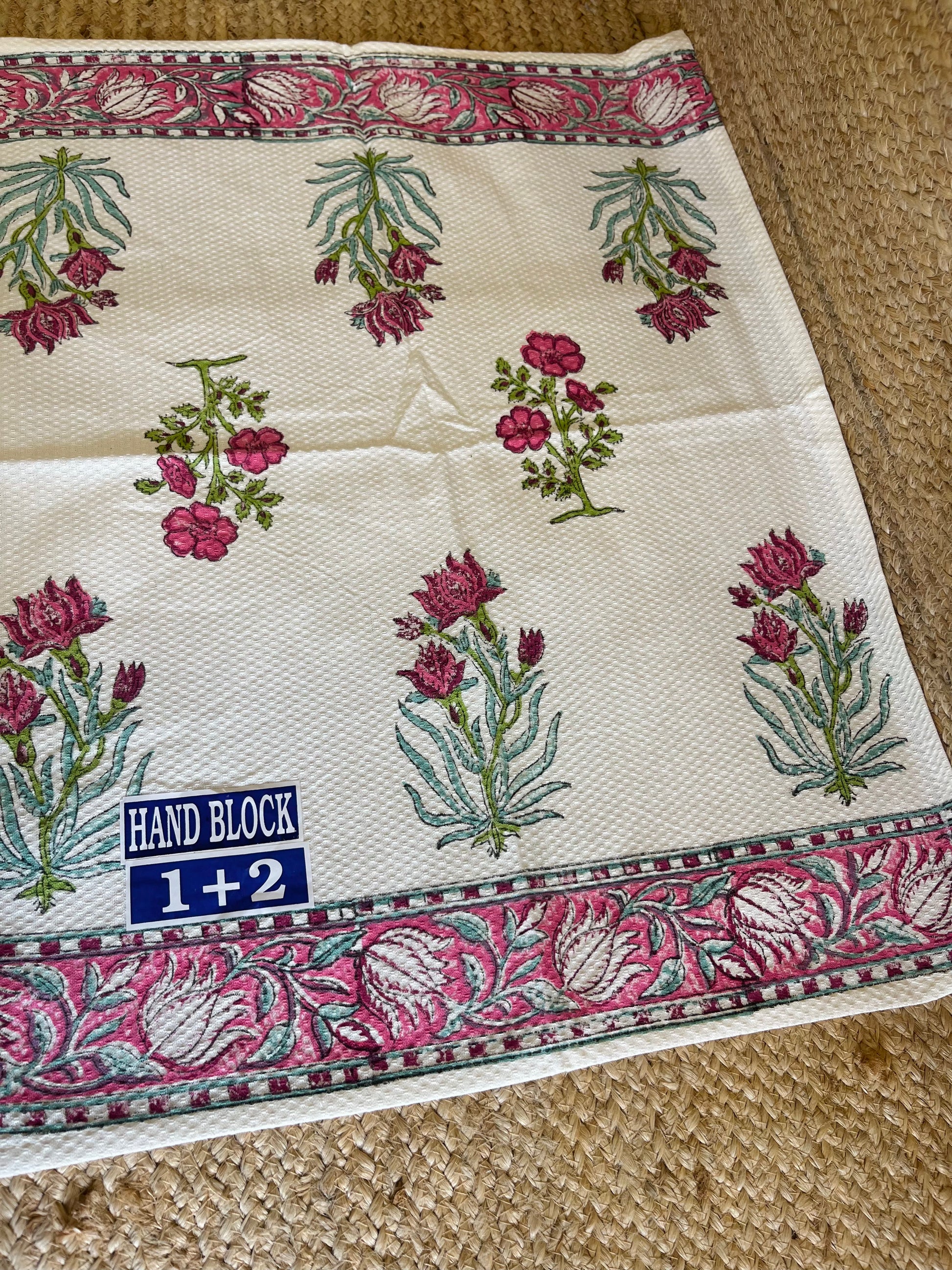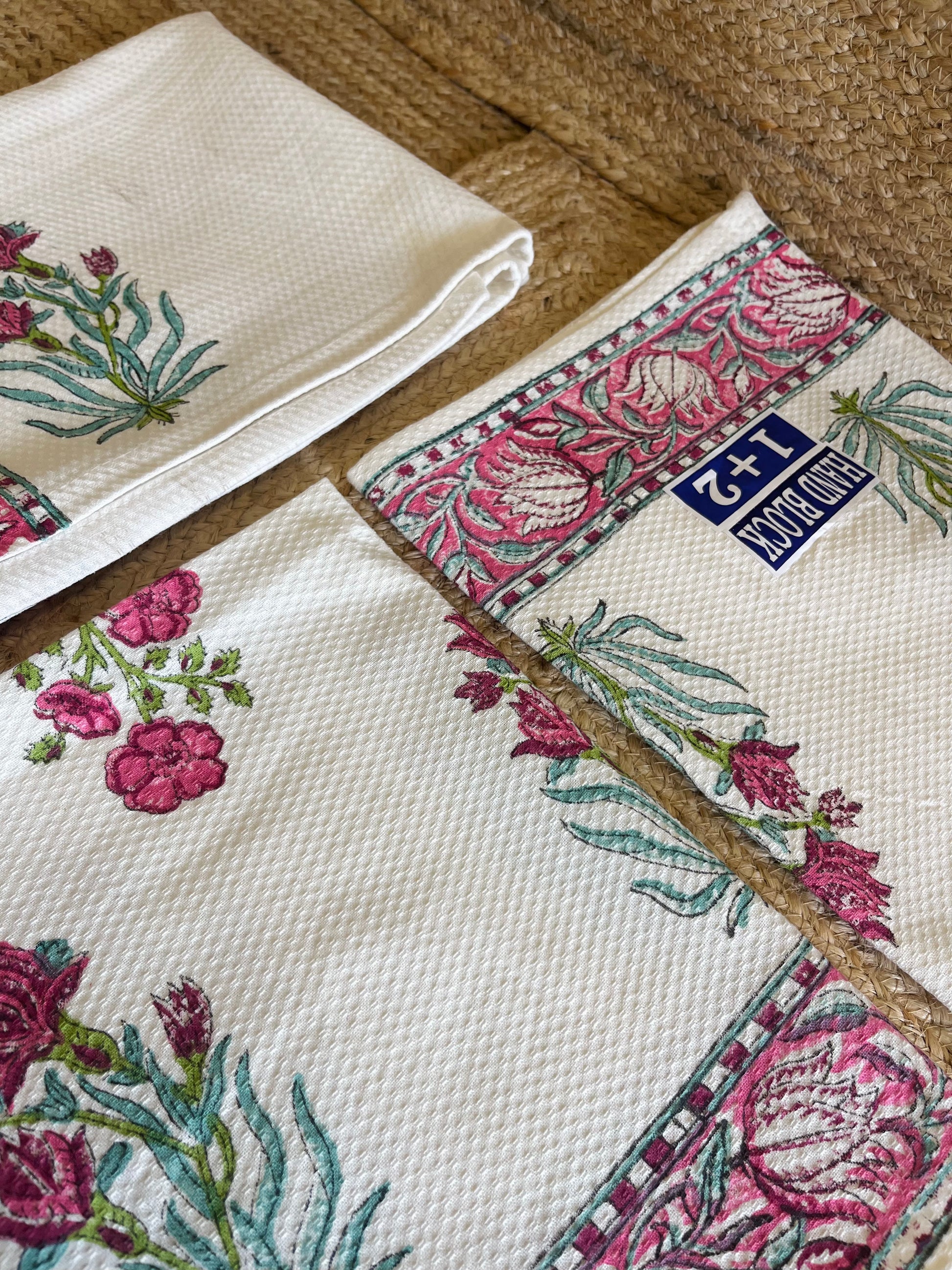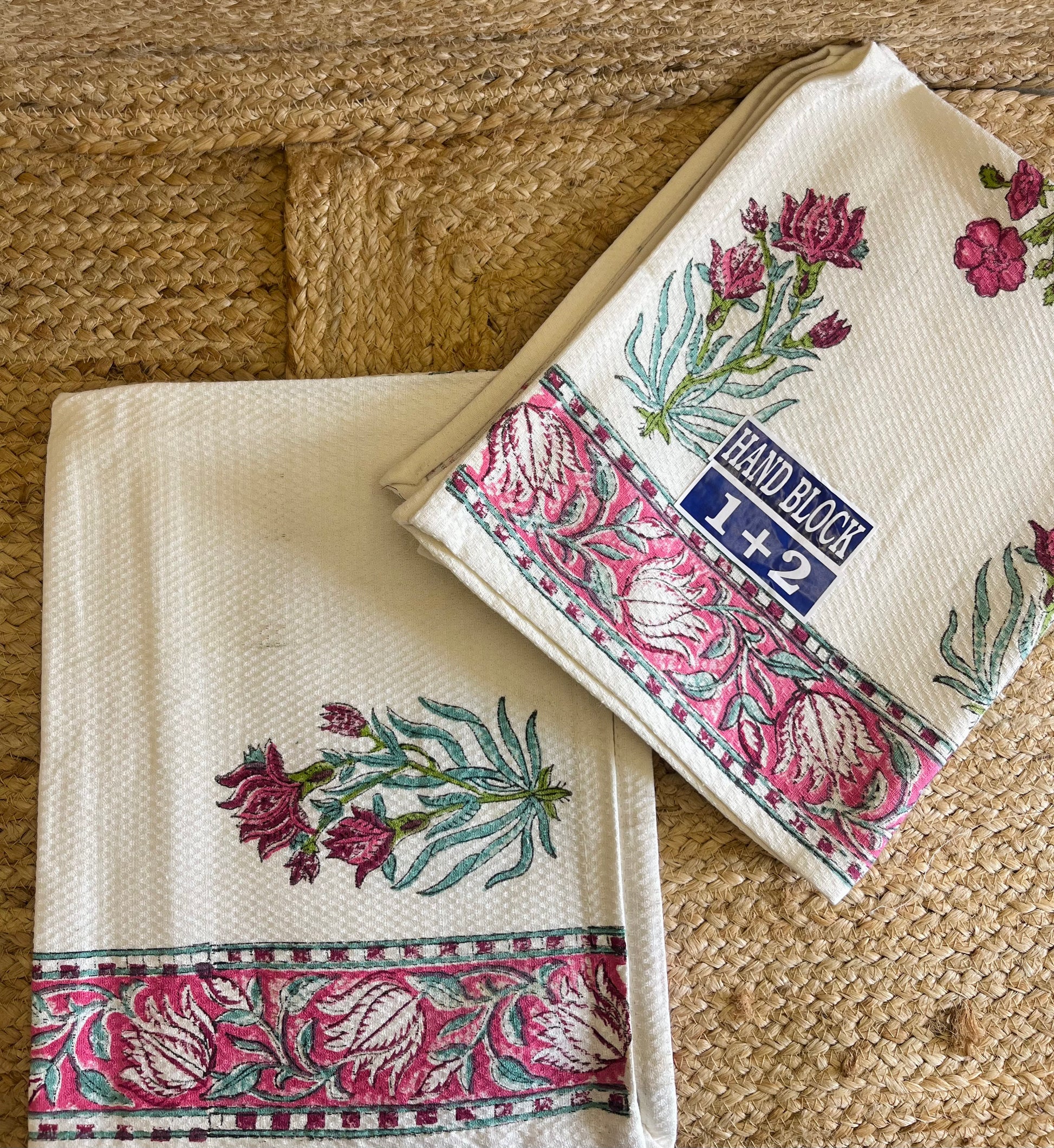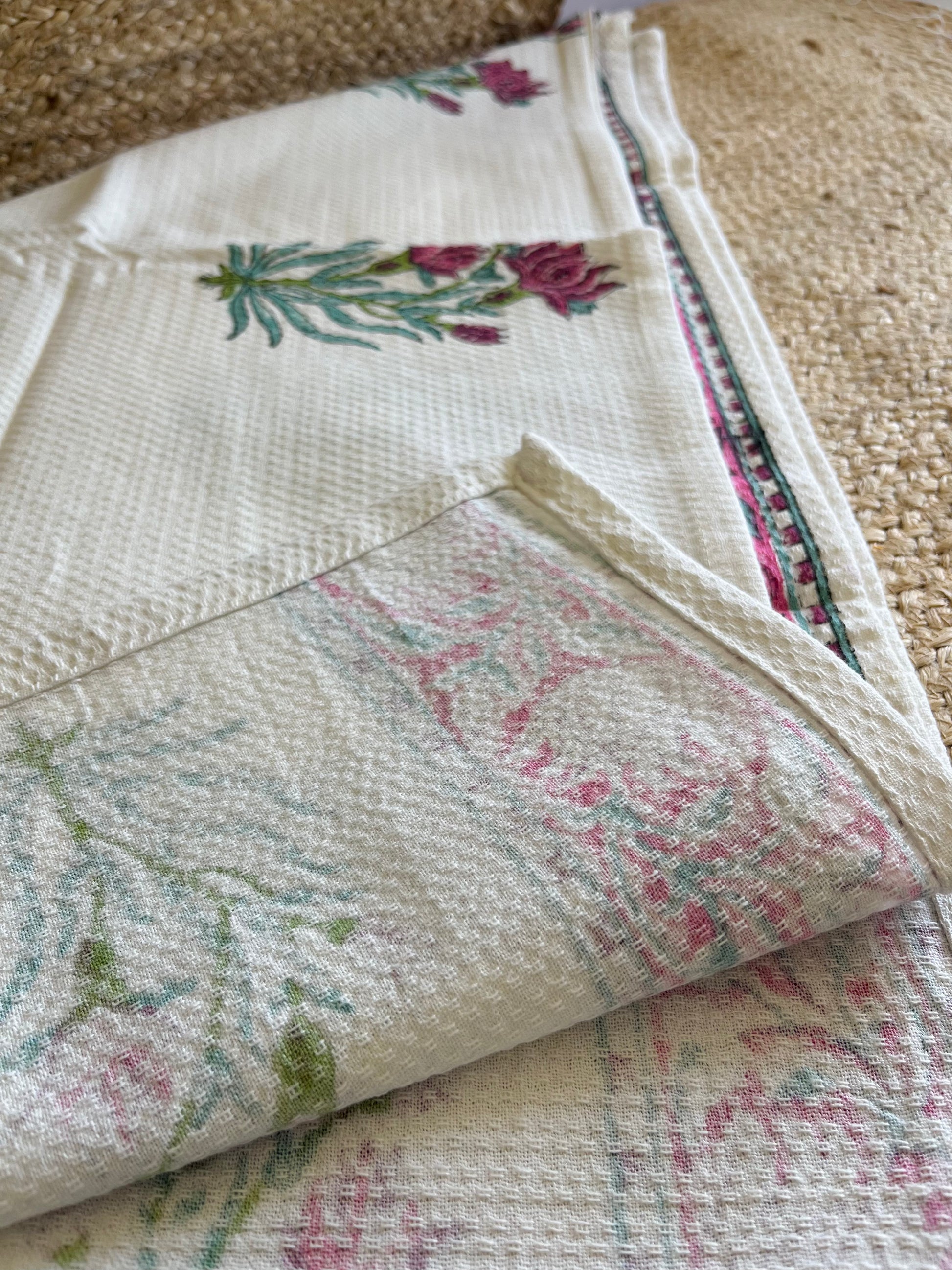 Waffle Cotton Handblock Printed Towel Set – Soft, Absorbent & Artisanal ✨