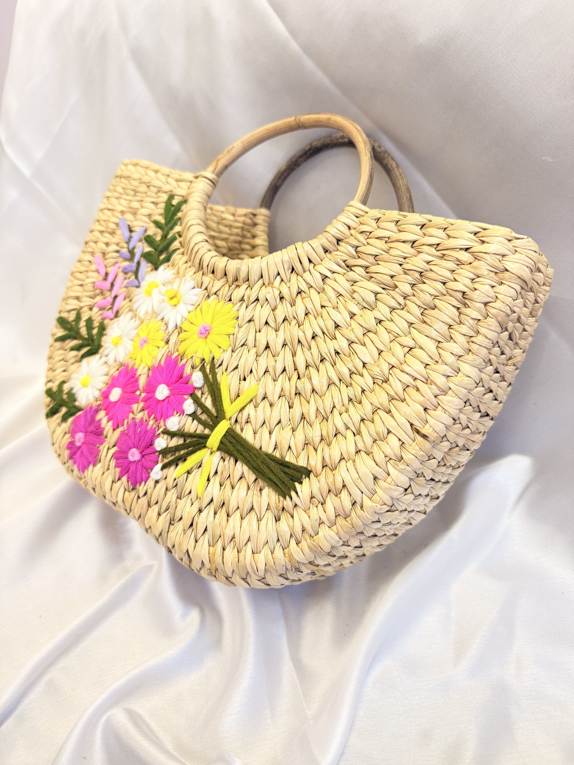 Elevate your style with our exquisite Kauna Grass Handmade U Bags, a perfect blend of sustainability and elegance. Expertly handcrafted by skilled artisans, these eco-friendly bags feature intricate handmade embroidery that adds a touch of uniqueness to each piece. Designed for both functionality and fashion, the bag comes with a sturdy metal chain for easy carrying, making it a versatile accessory for casual outings, brunches, or special occasions.