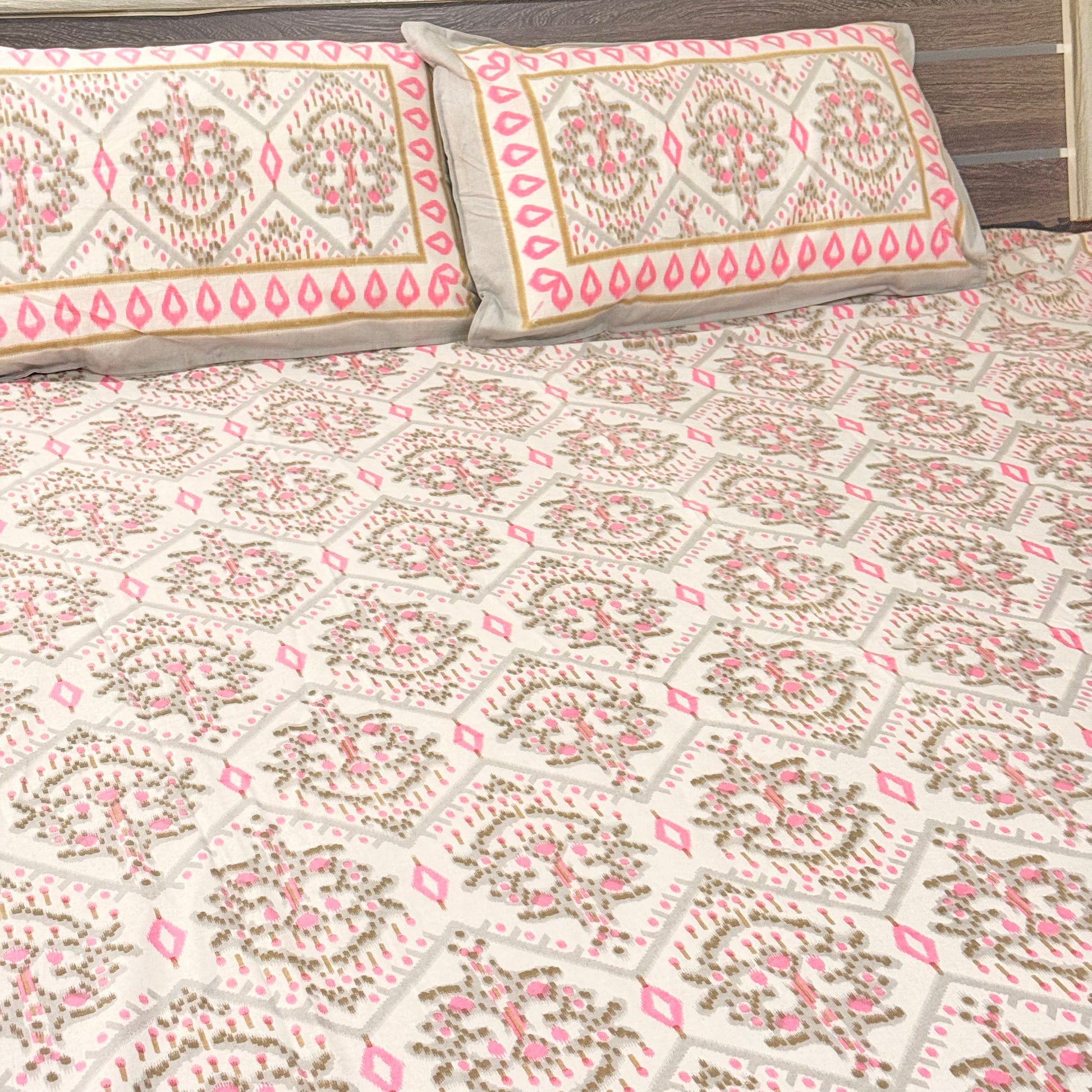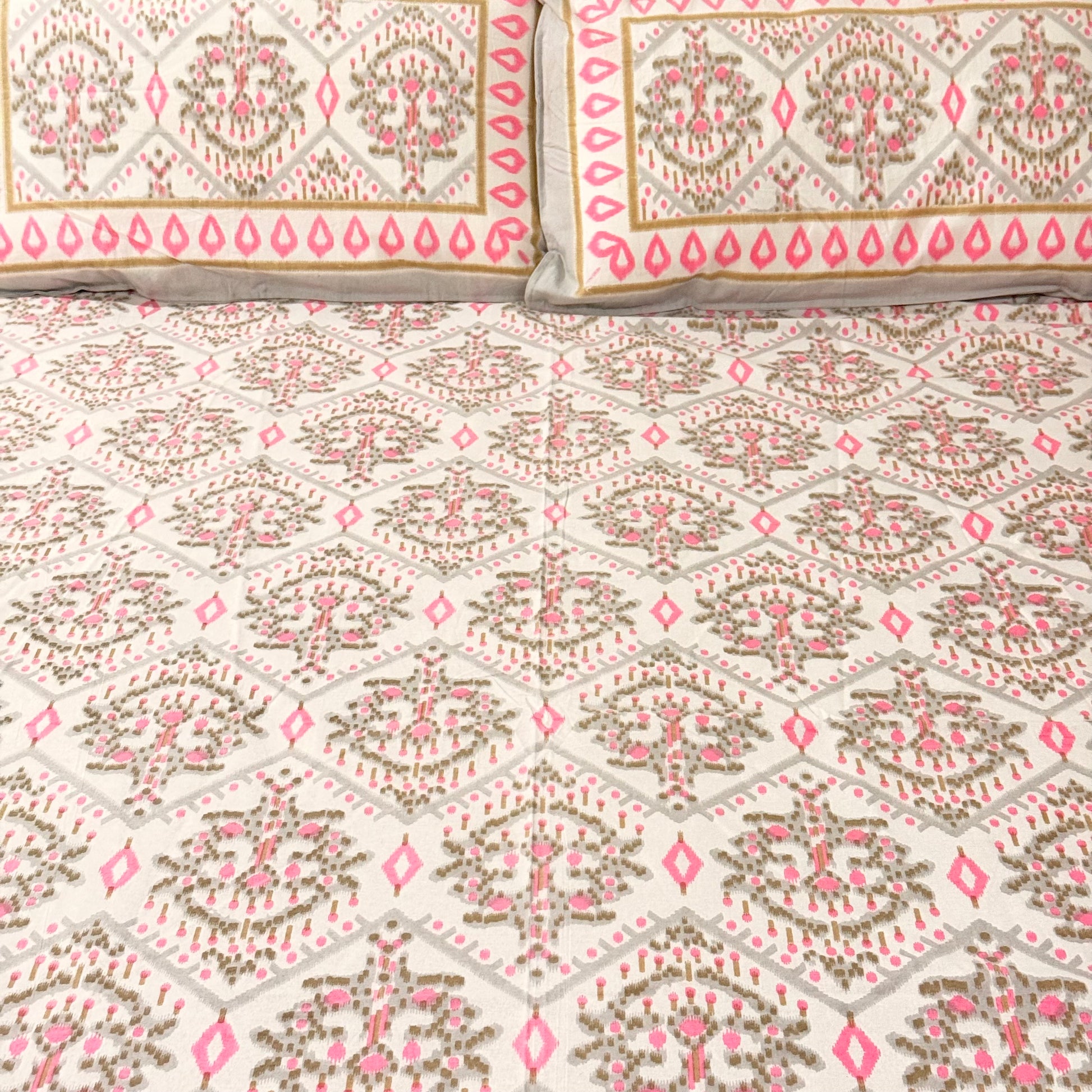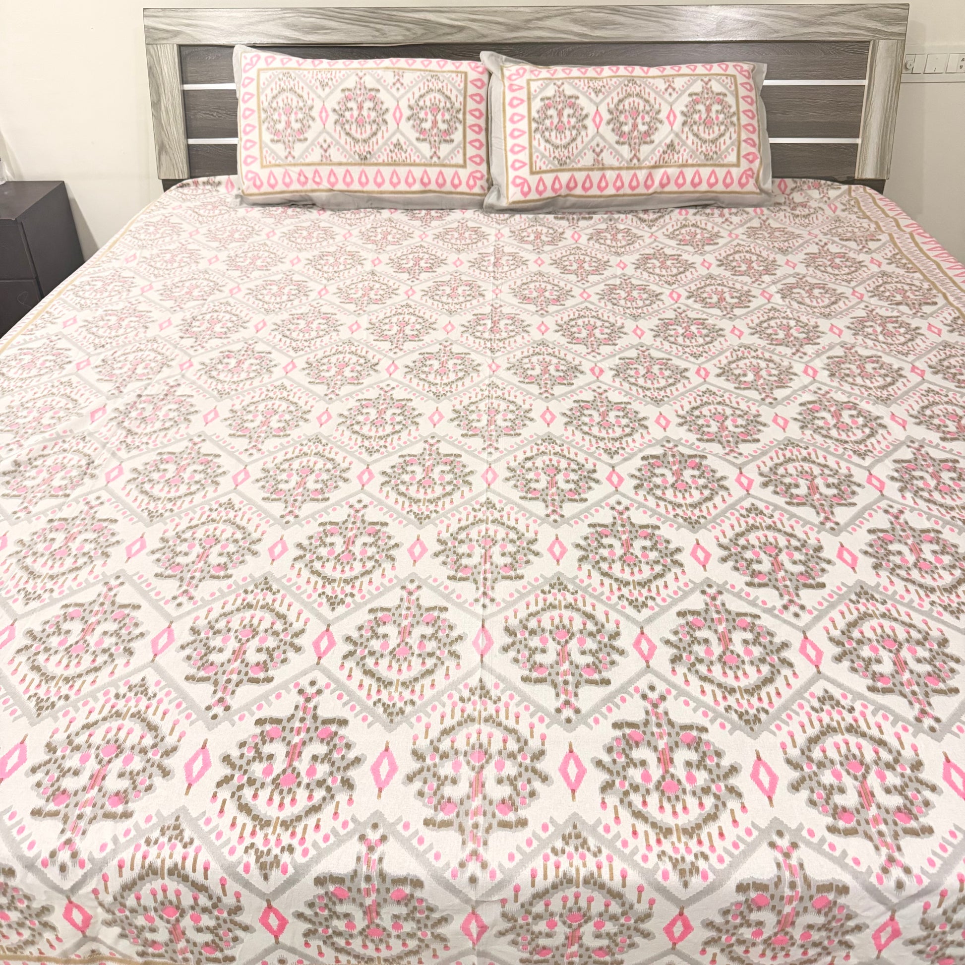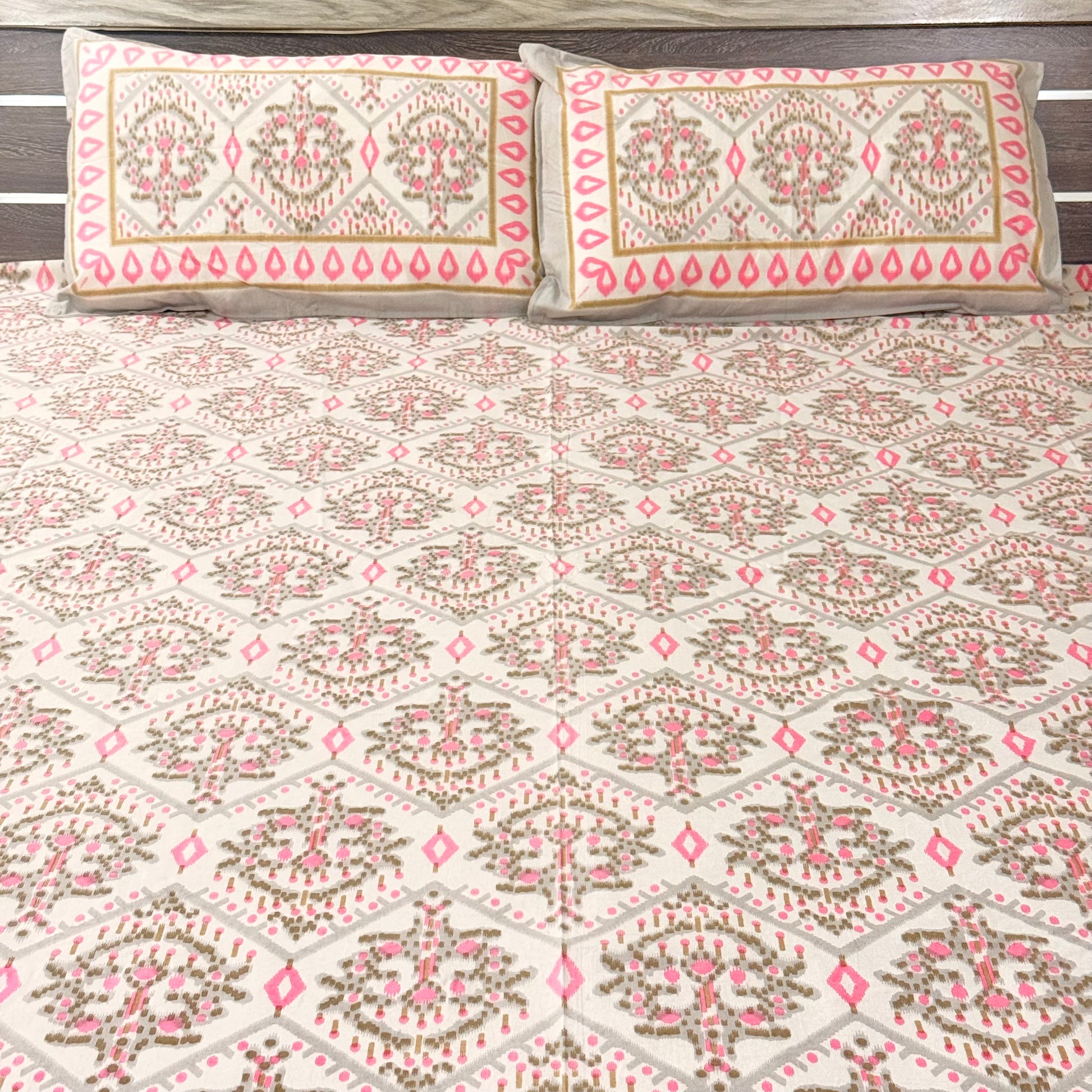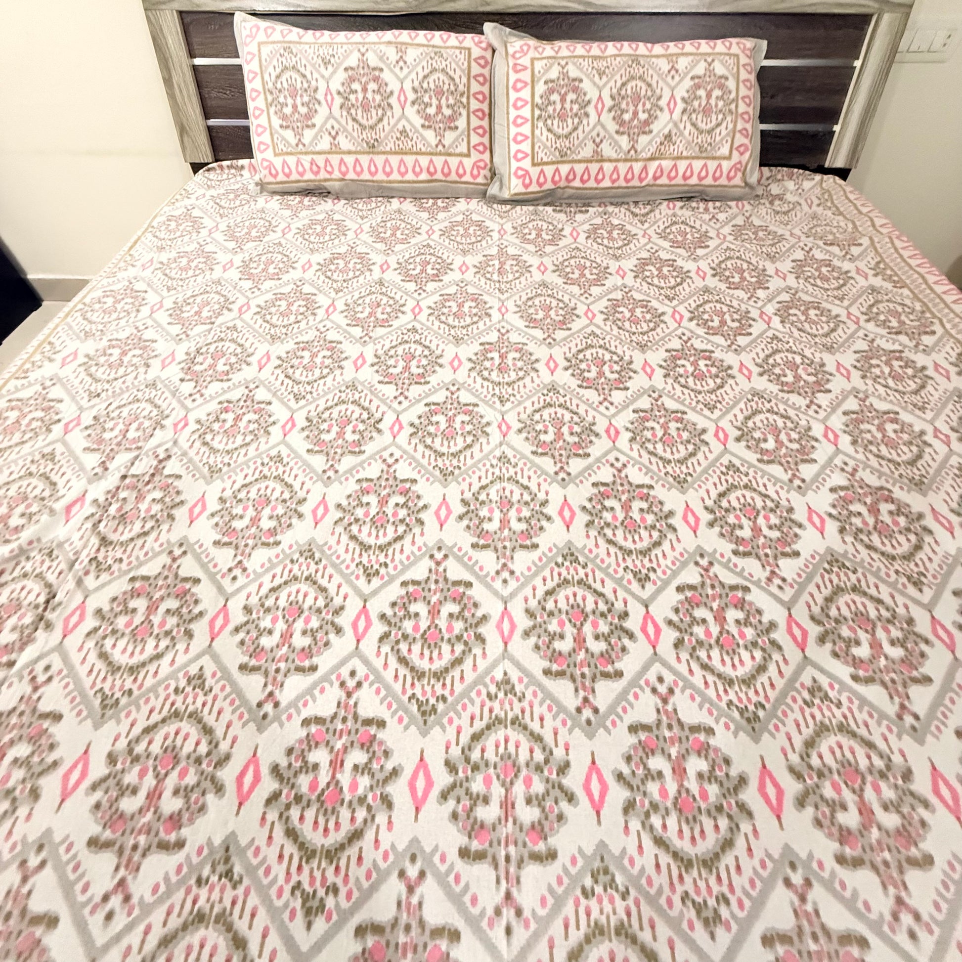 Pink Geometric cotton Double Bedsheet