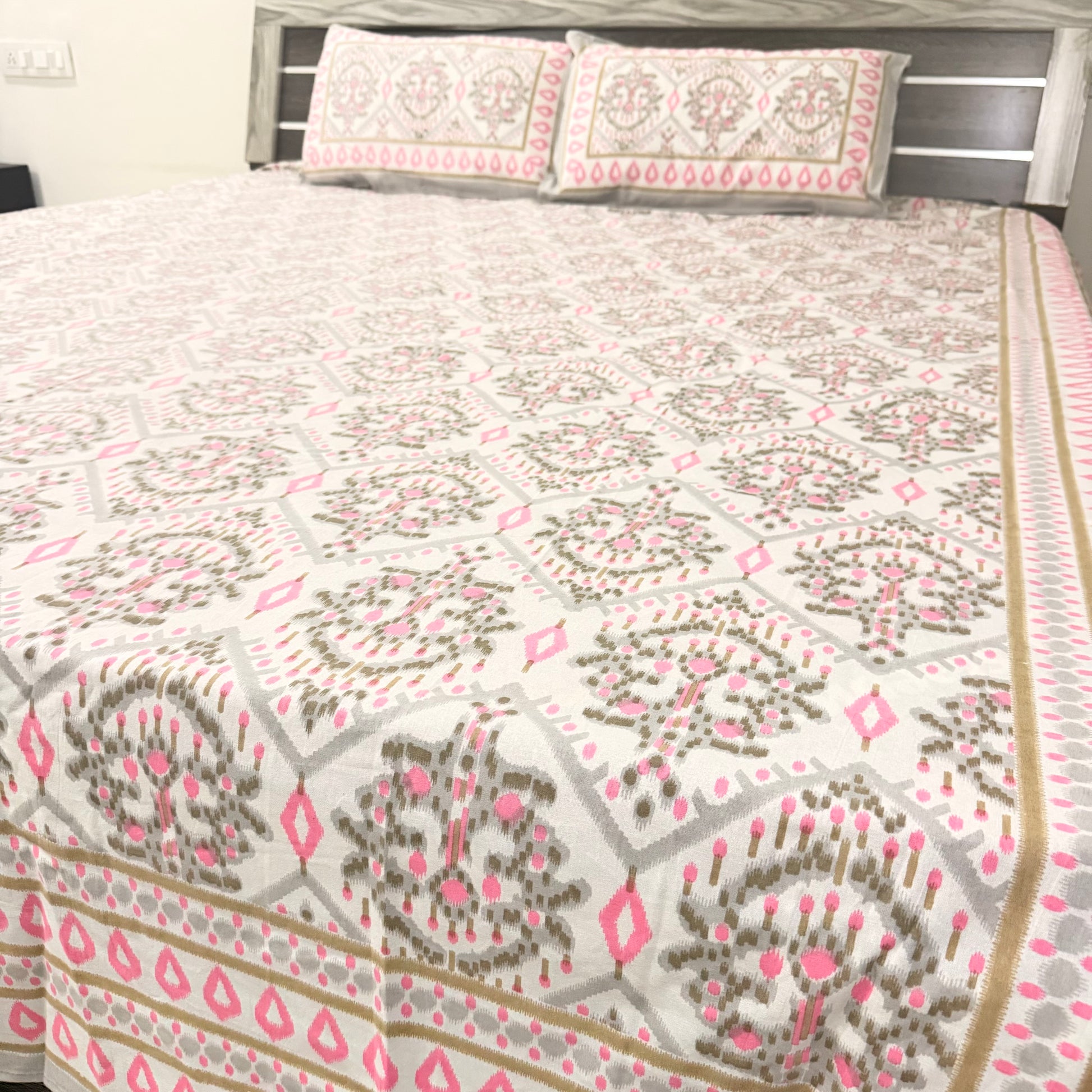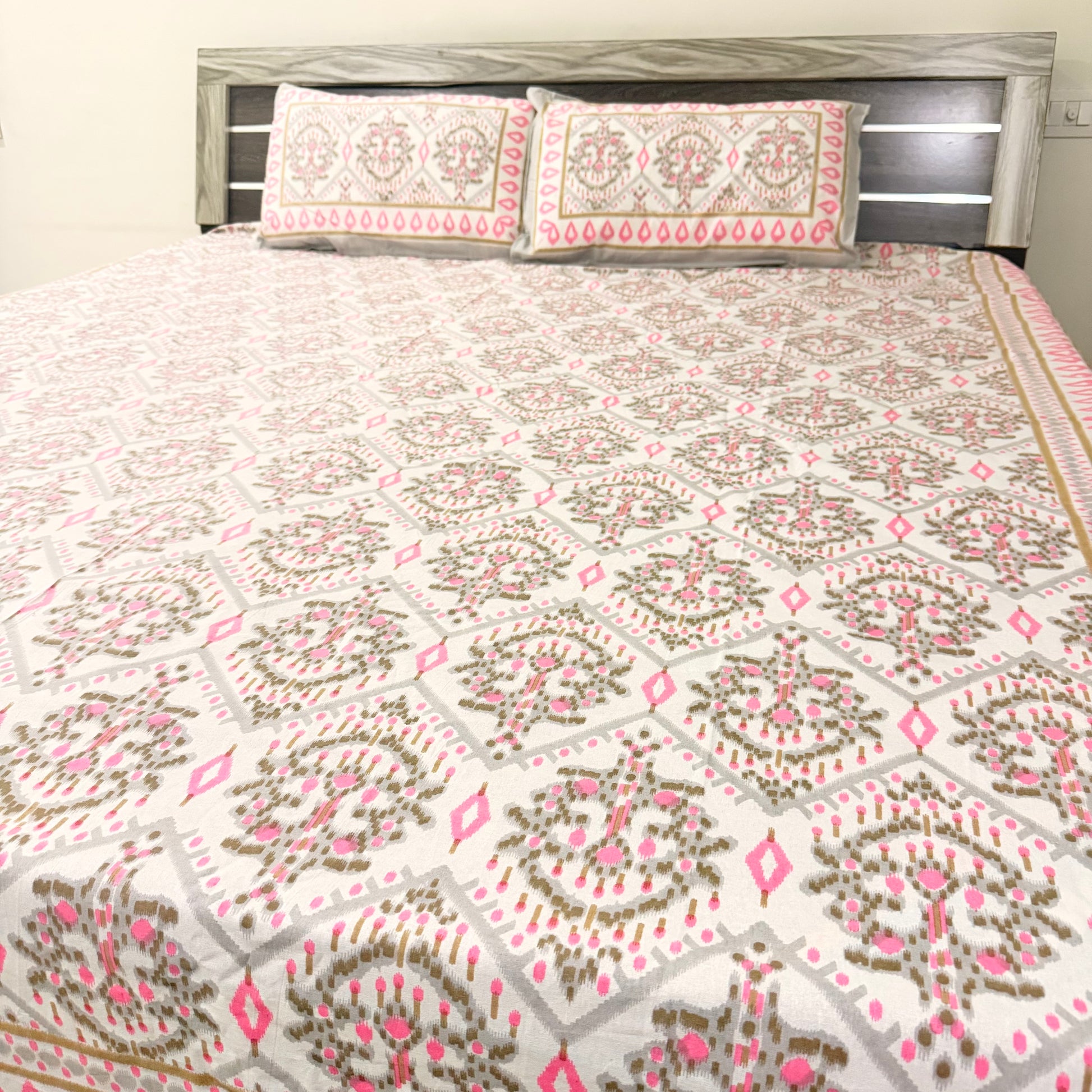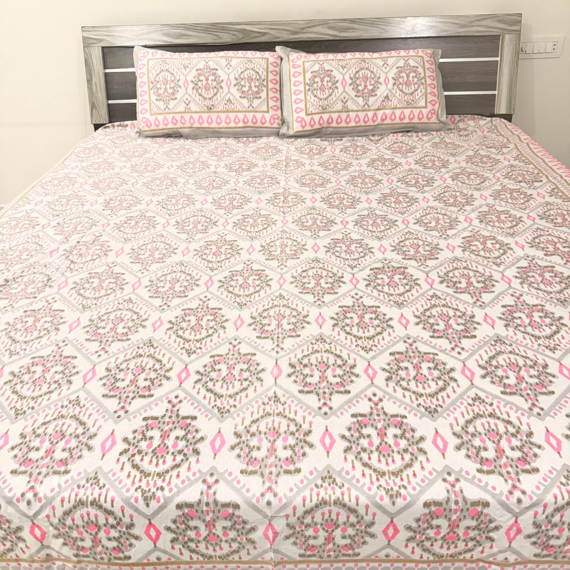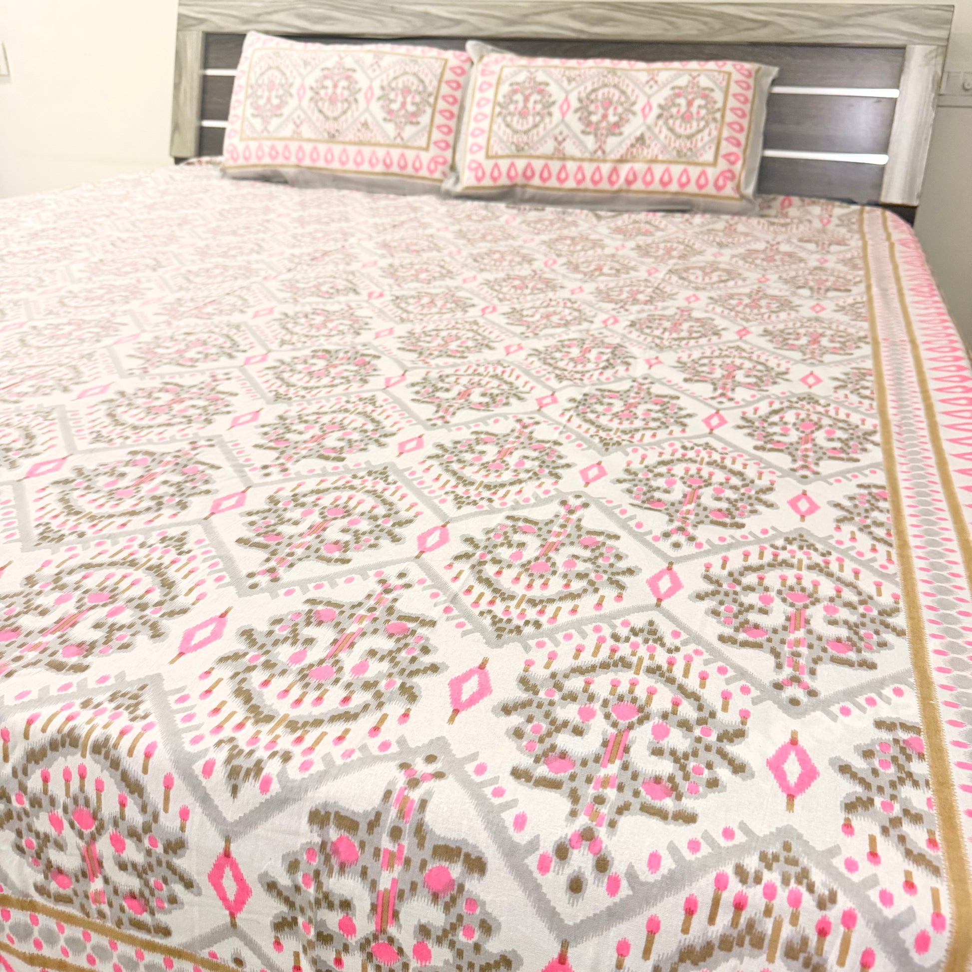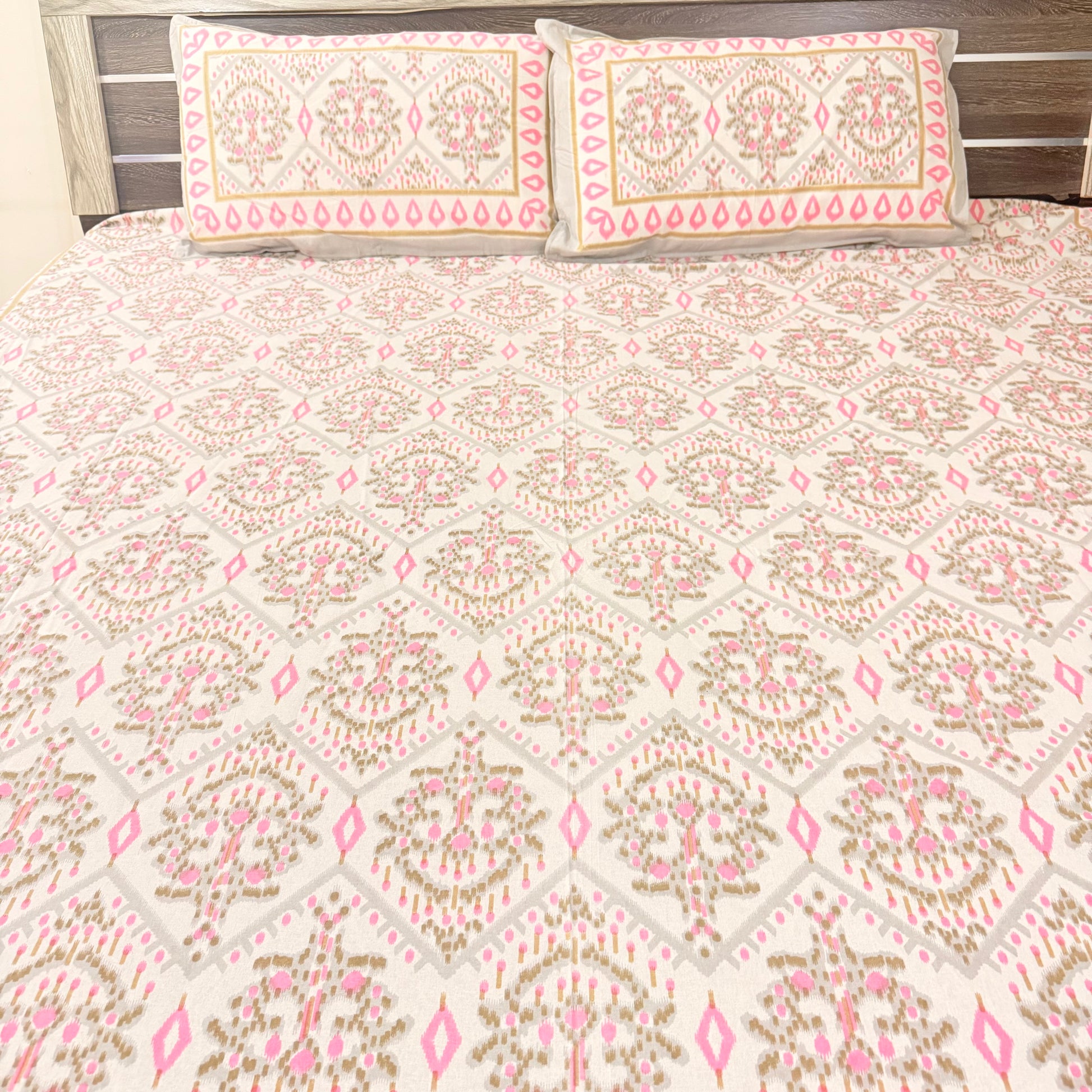 Pink Geometric cotton Double Bedsheet