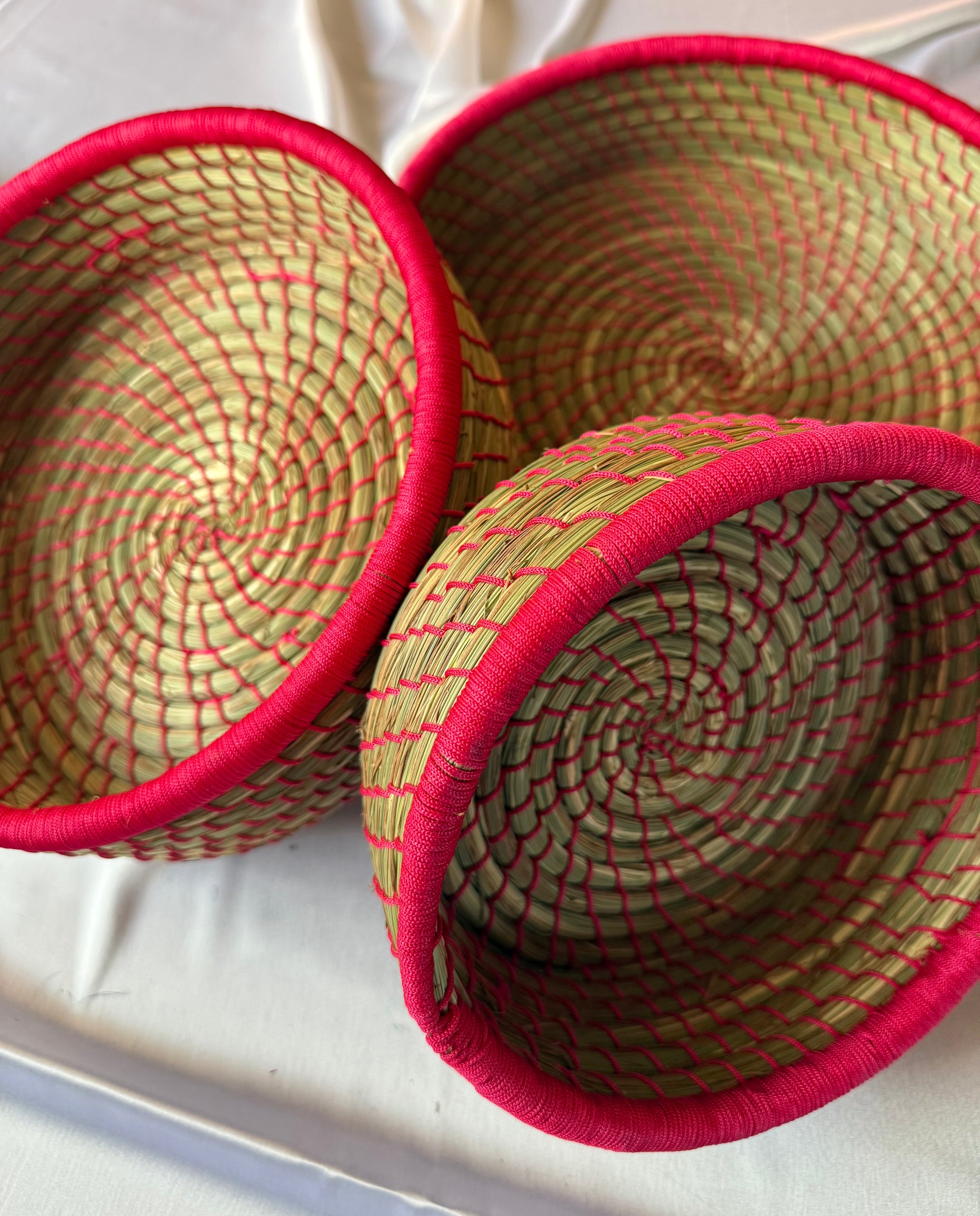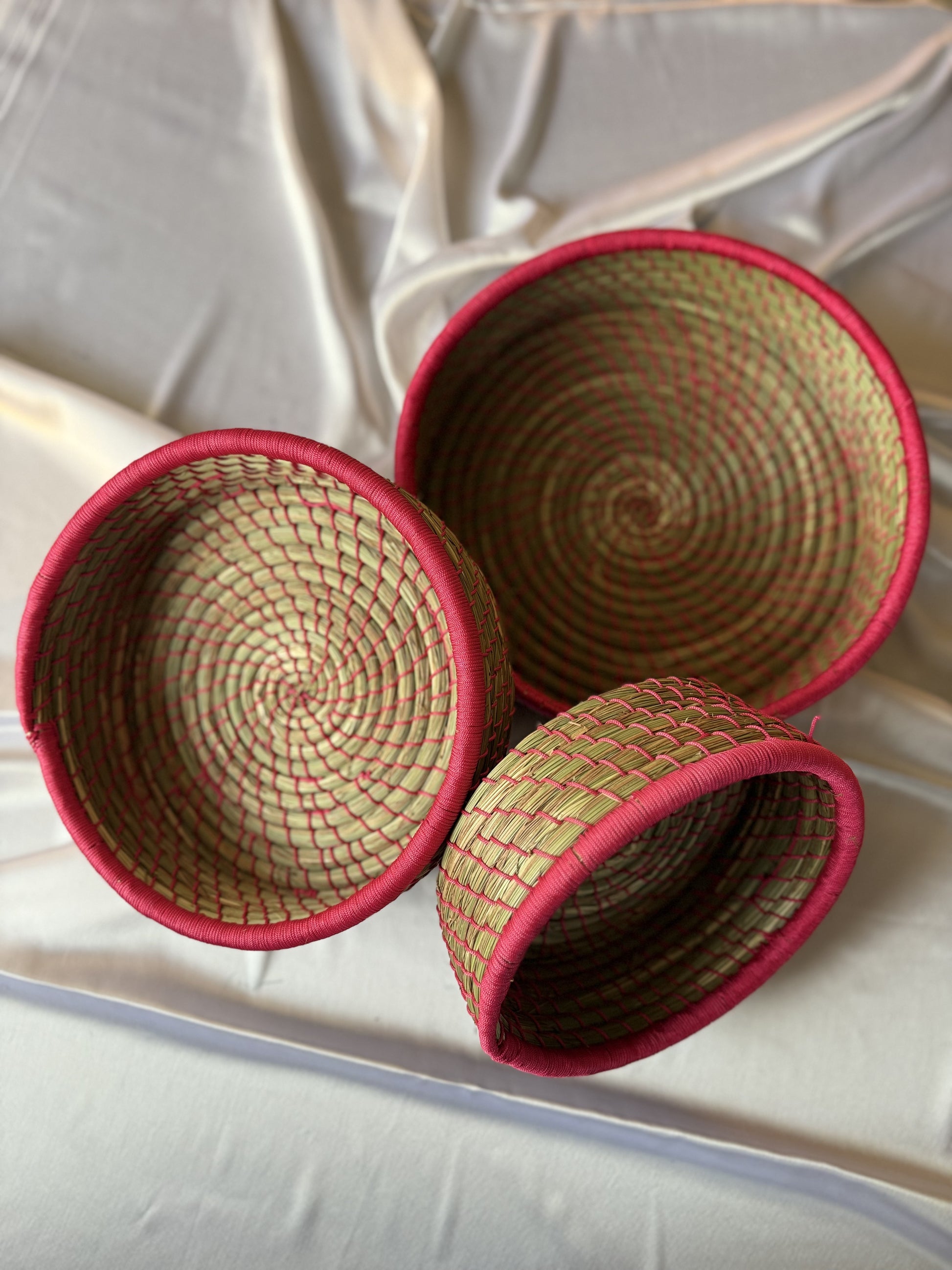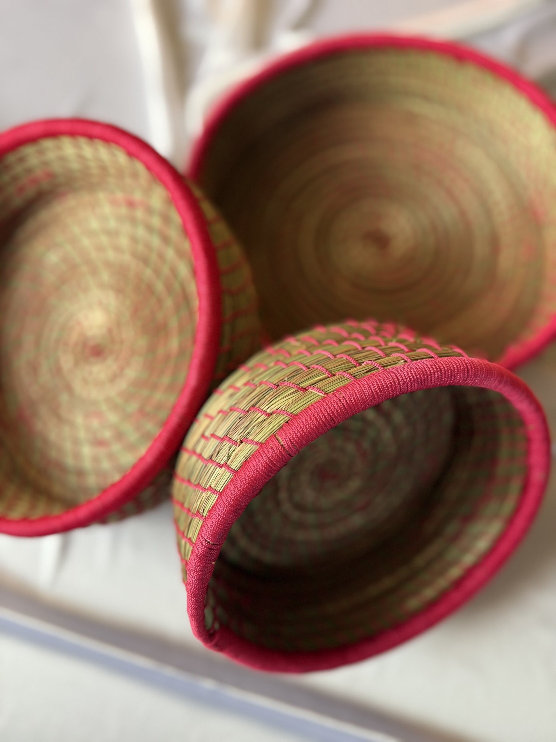 Pink Hand-Crafted Sabai Grass Jute Organiser (Set of 3)