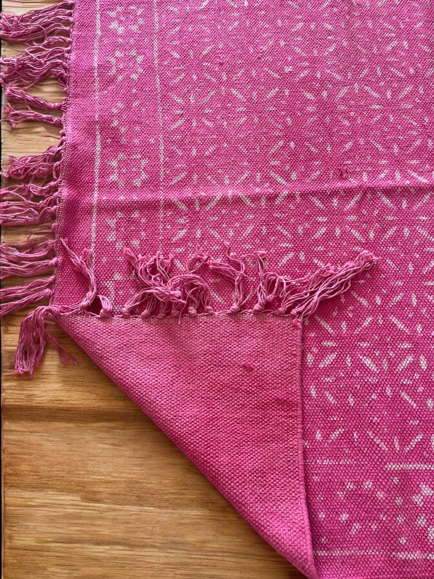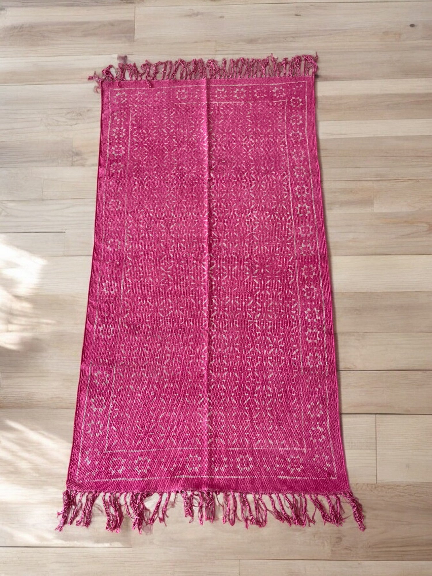Pink Handblock Print Cotton Rug