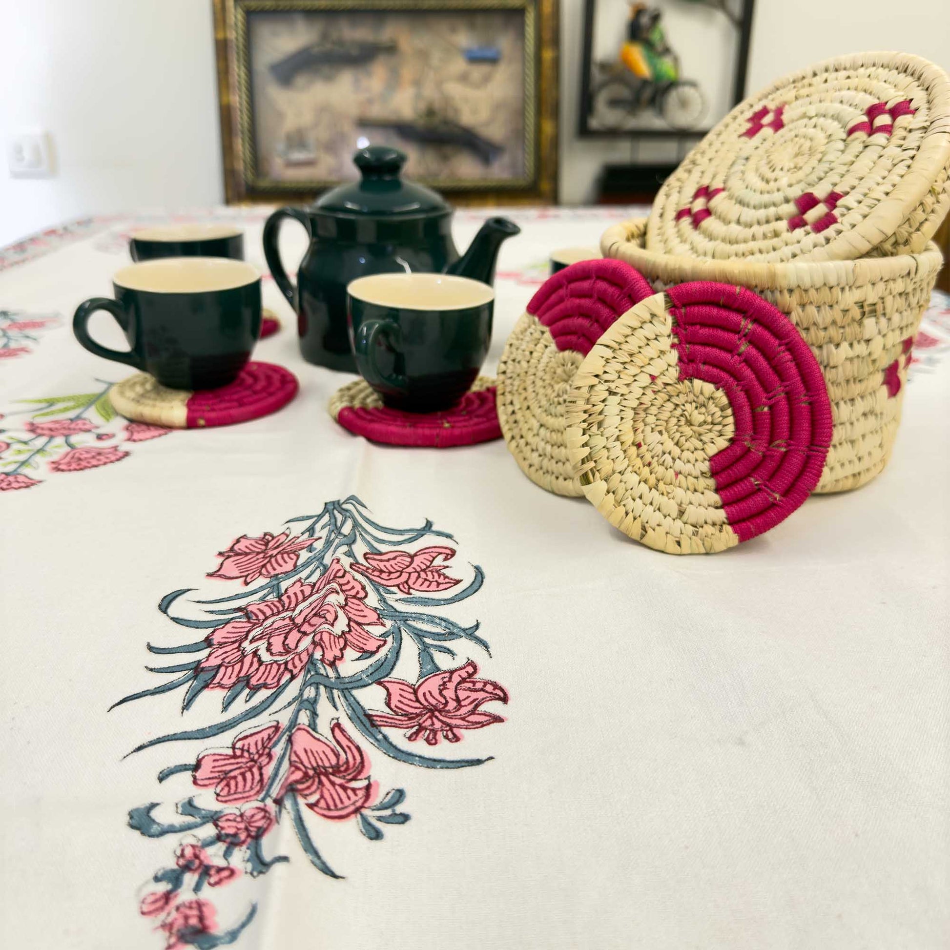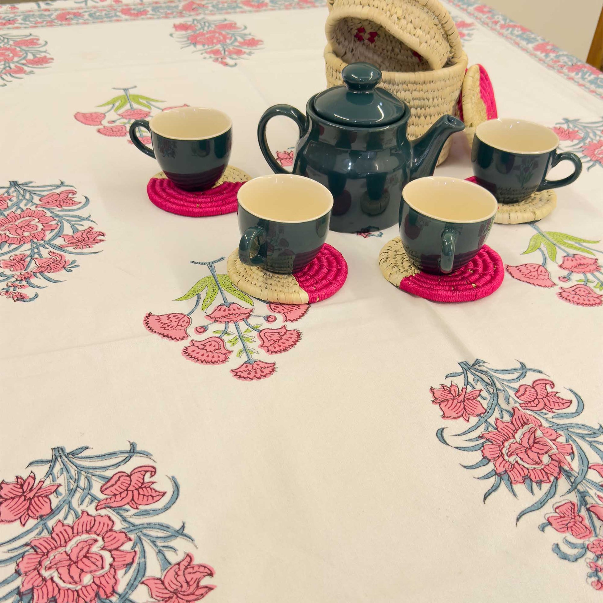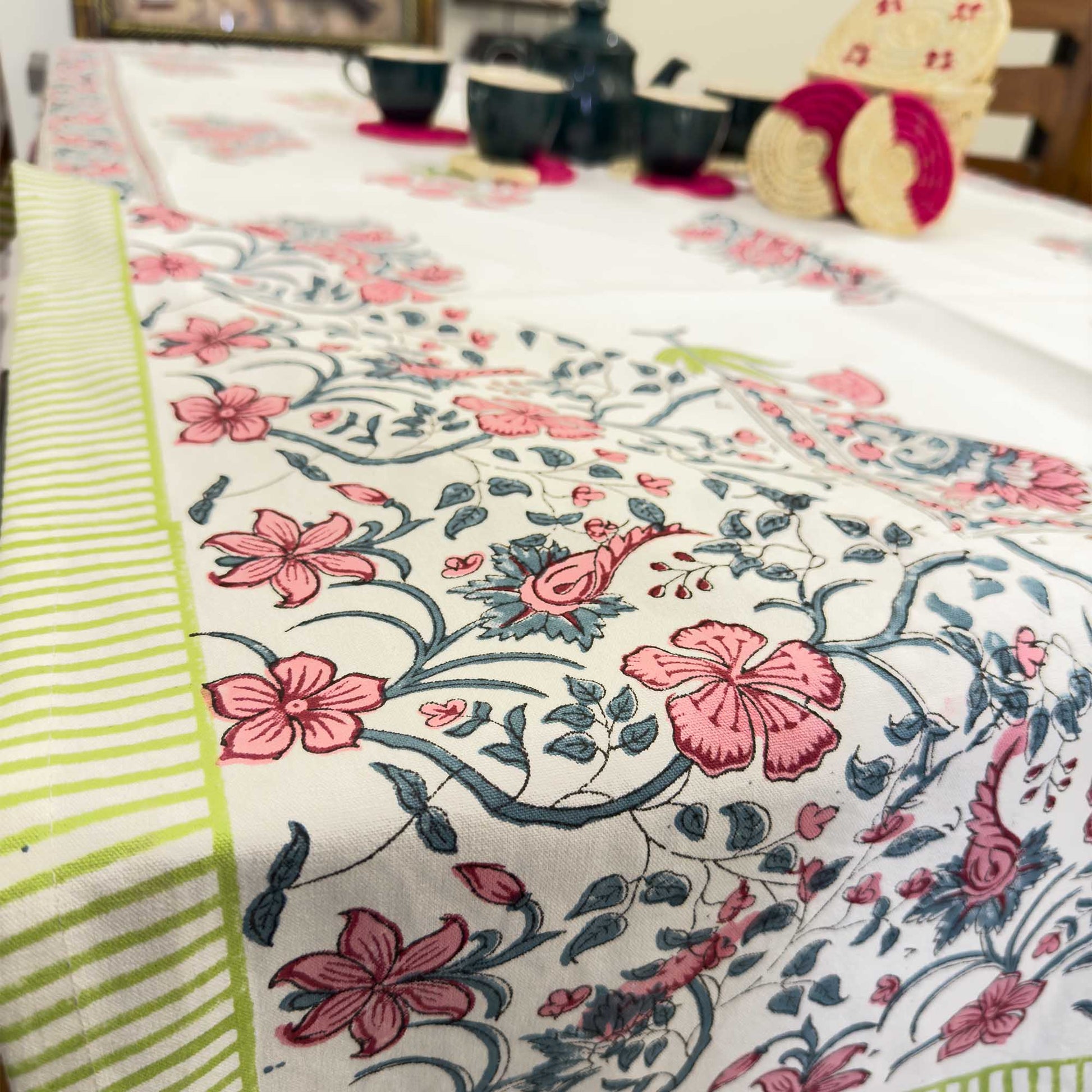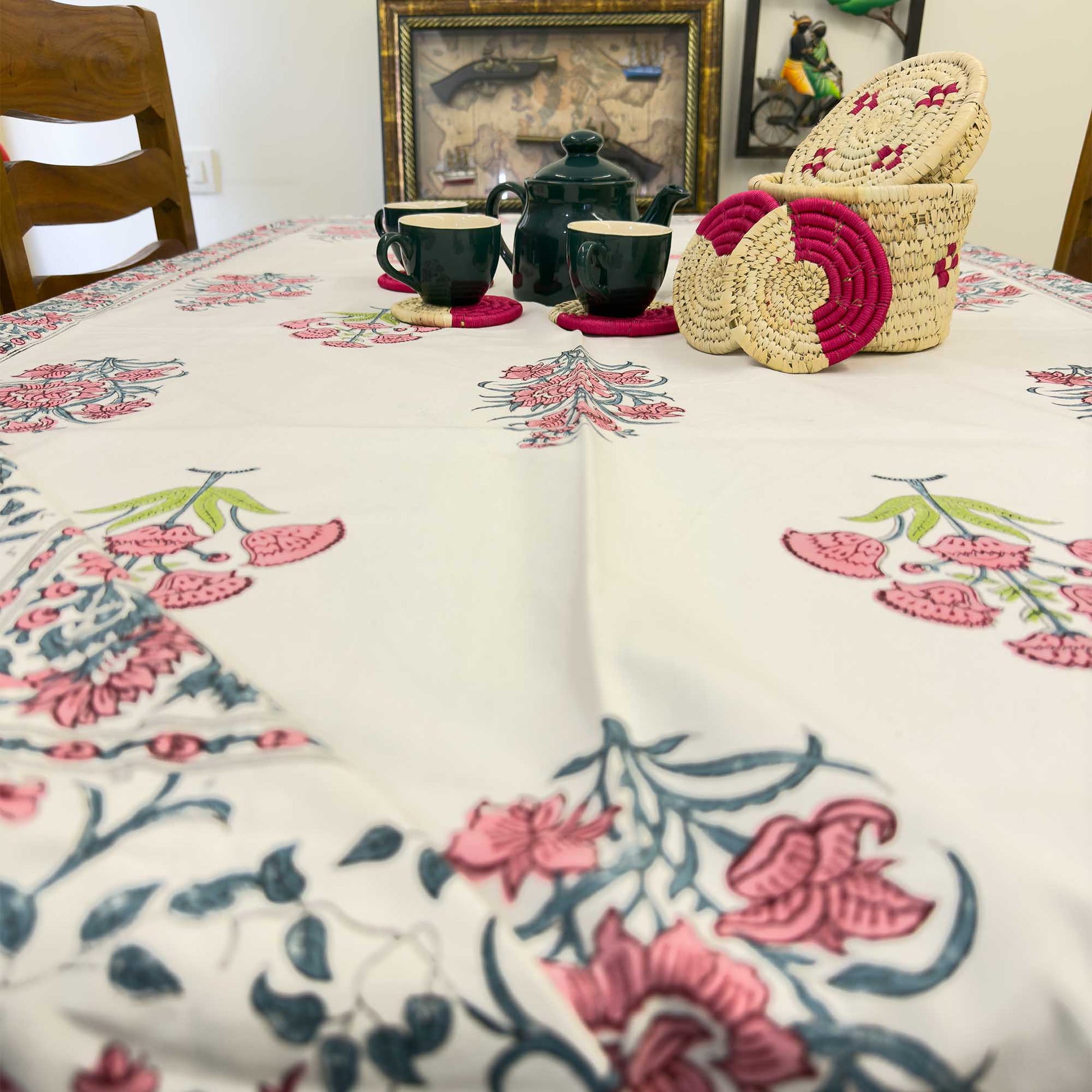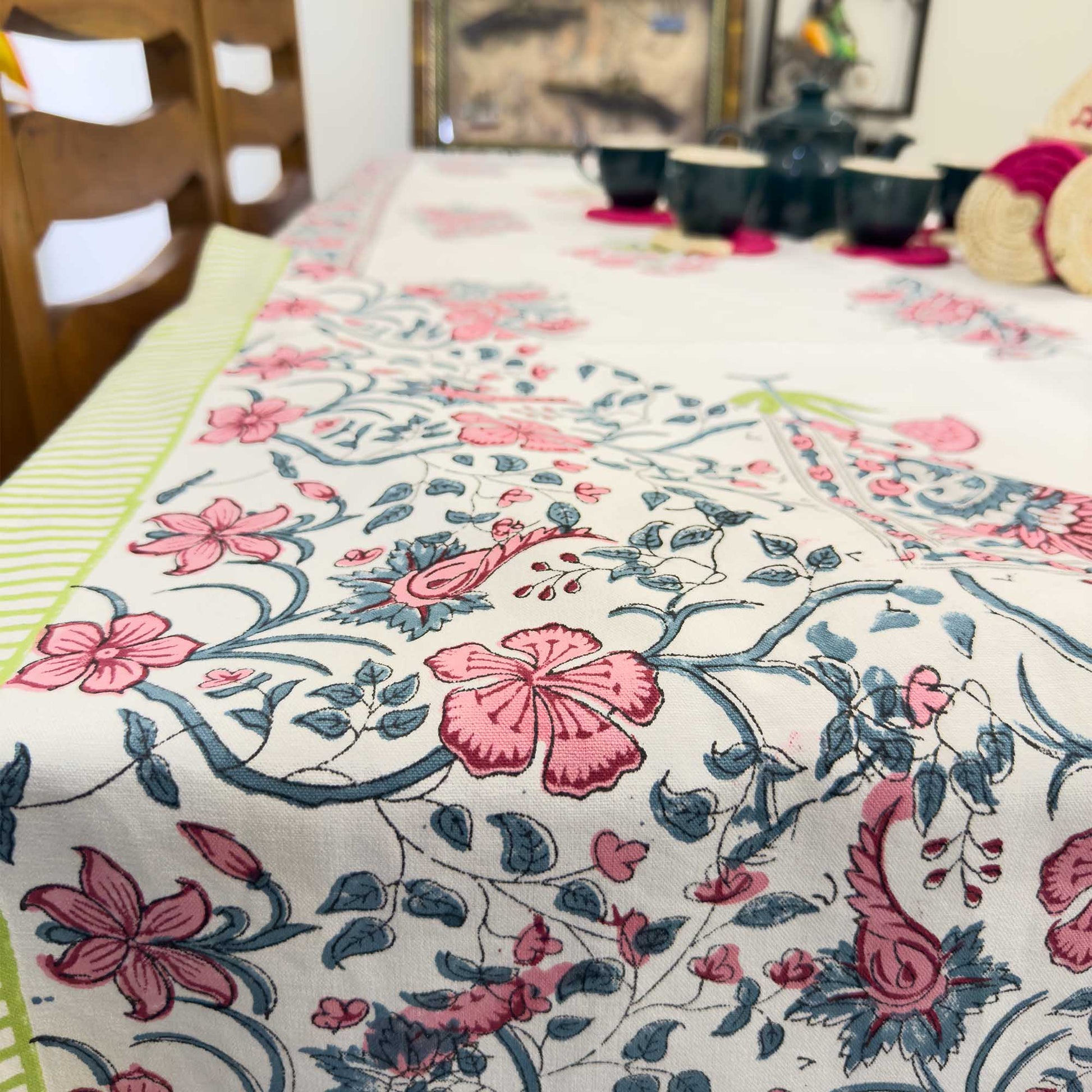 Floral Handblock Table Cover – 60x90 Inches for 6-Seater Dining Tables