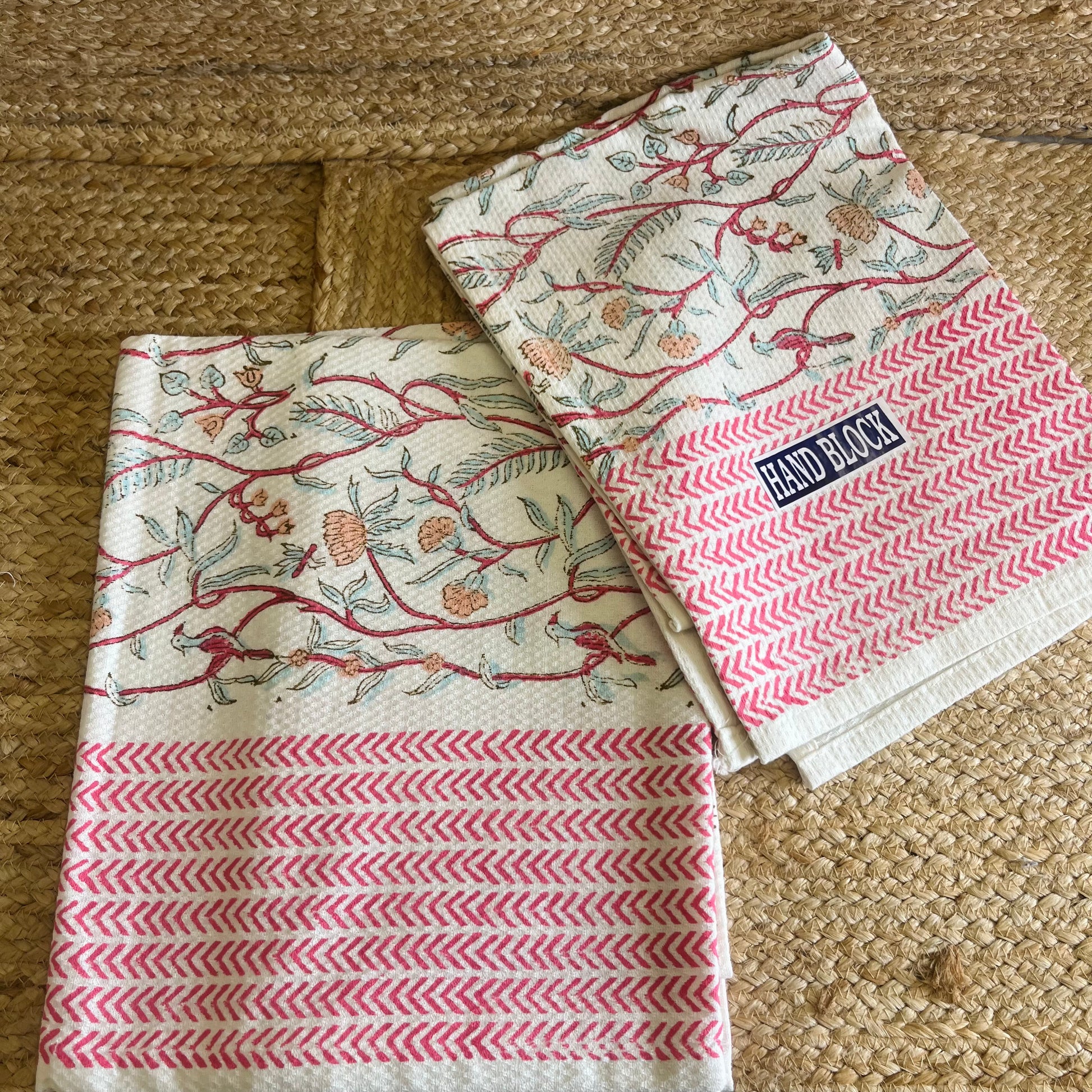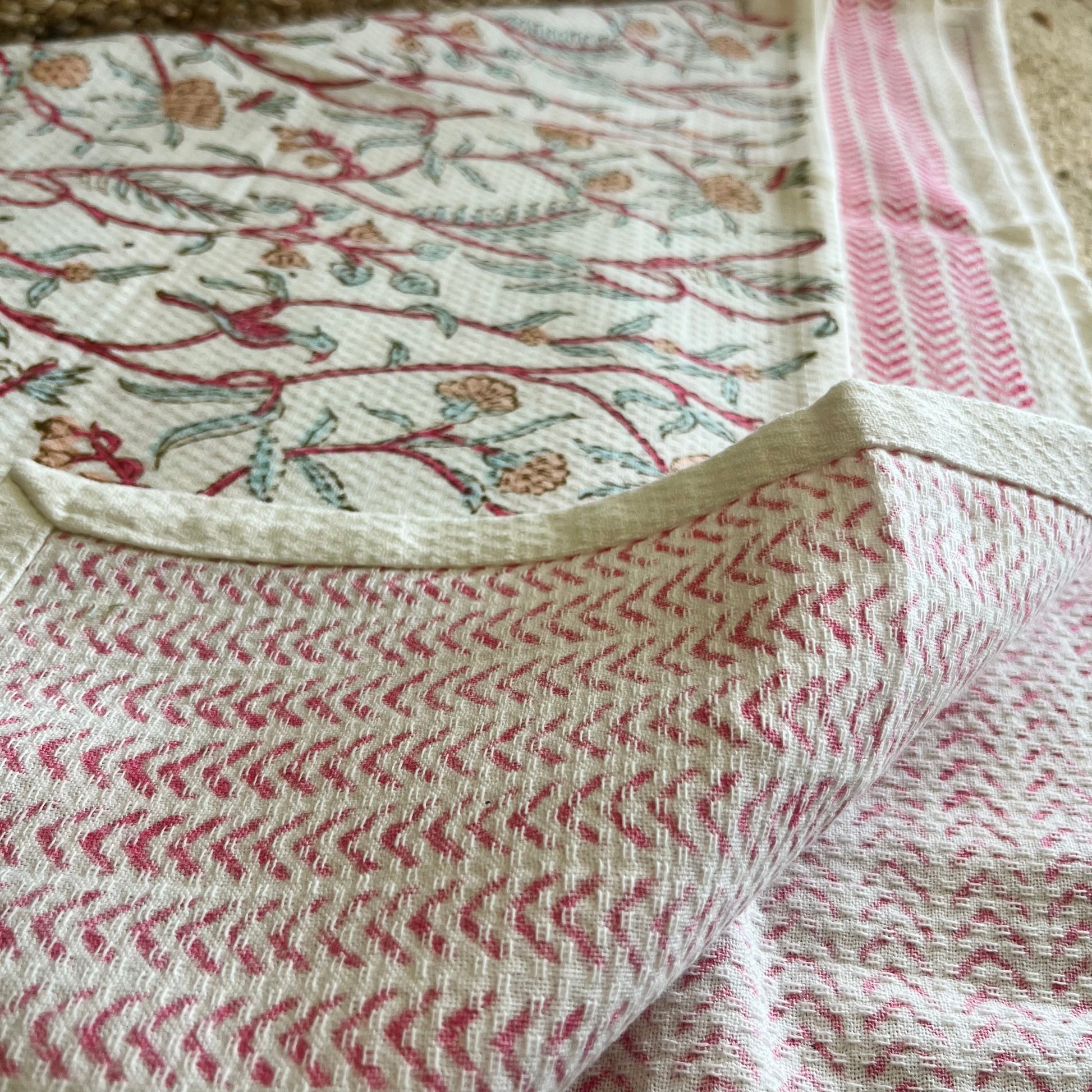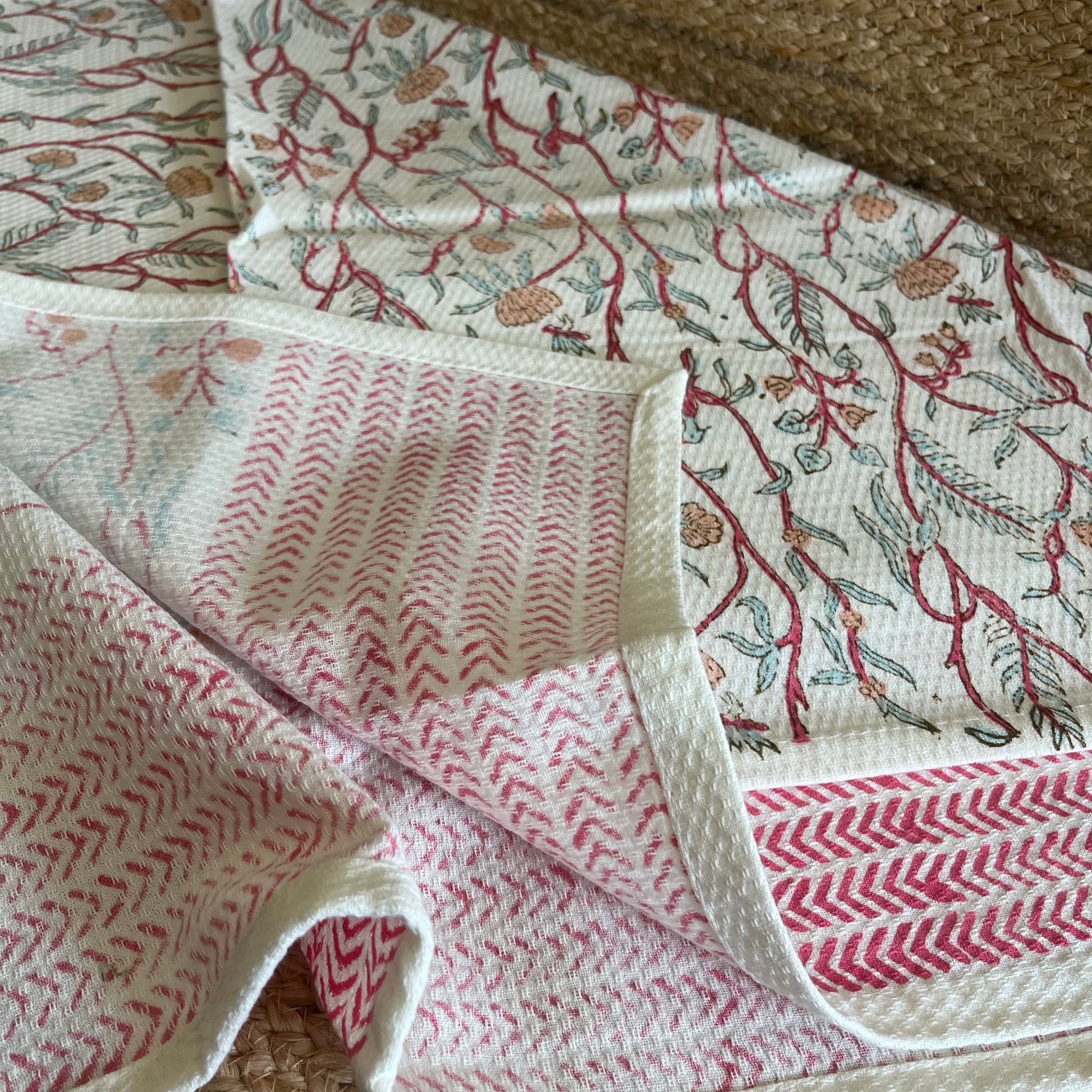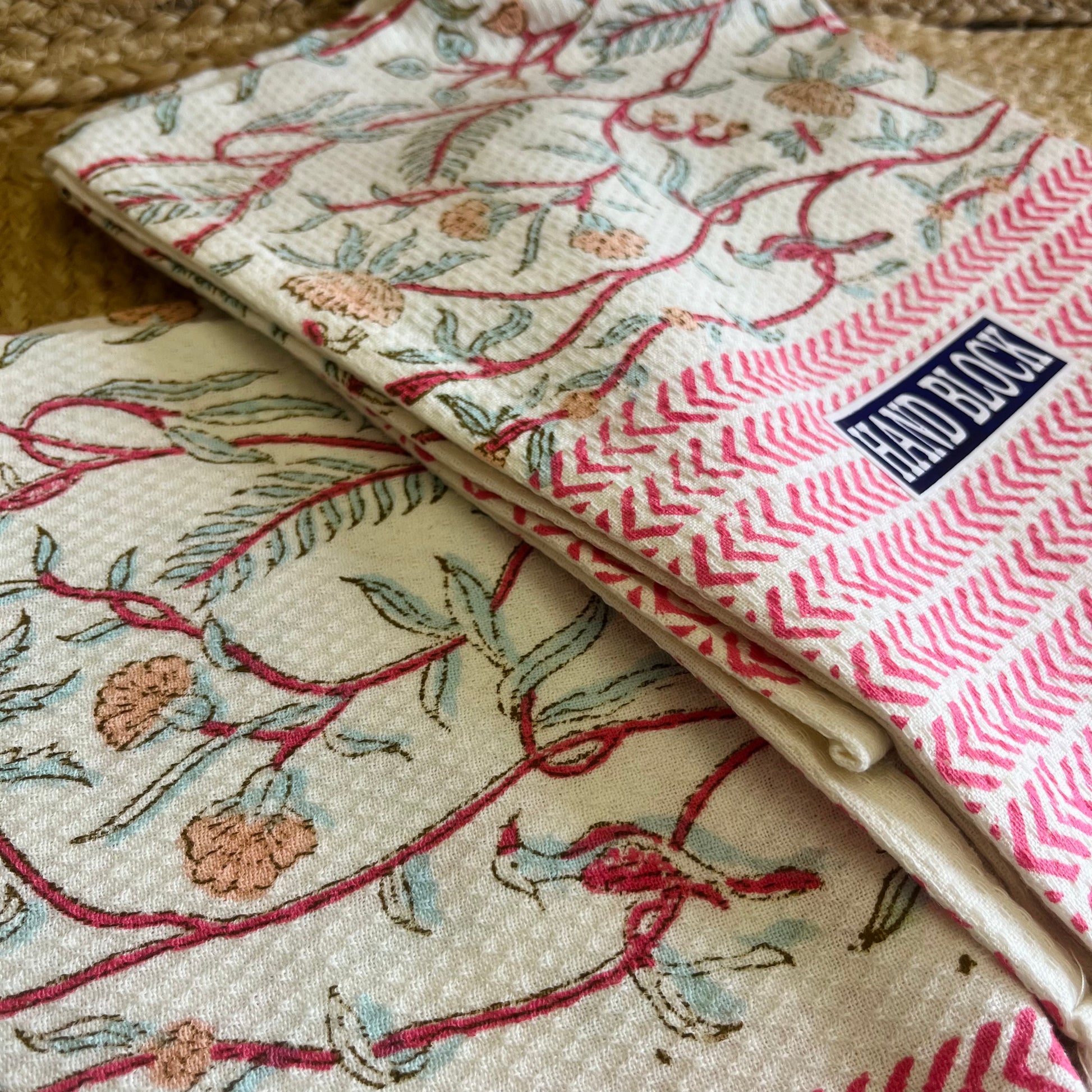 Pink Paradise Handblock Waffle Cotton Towel Set