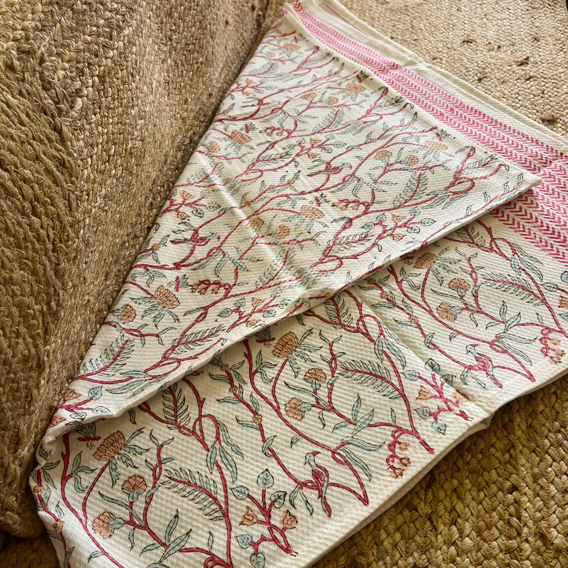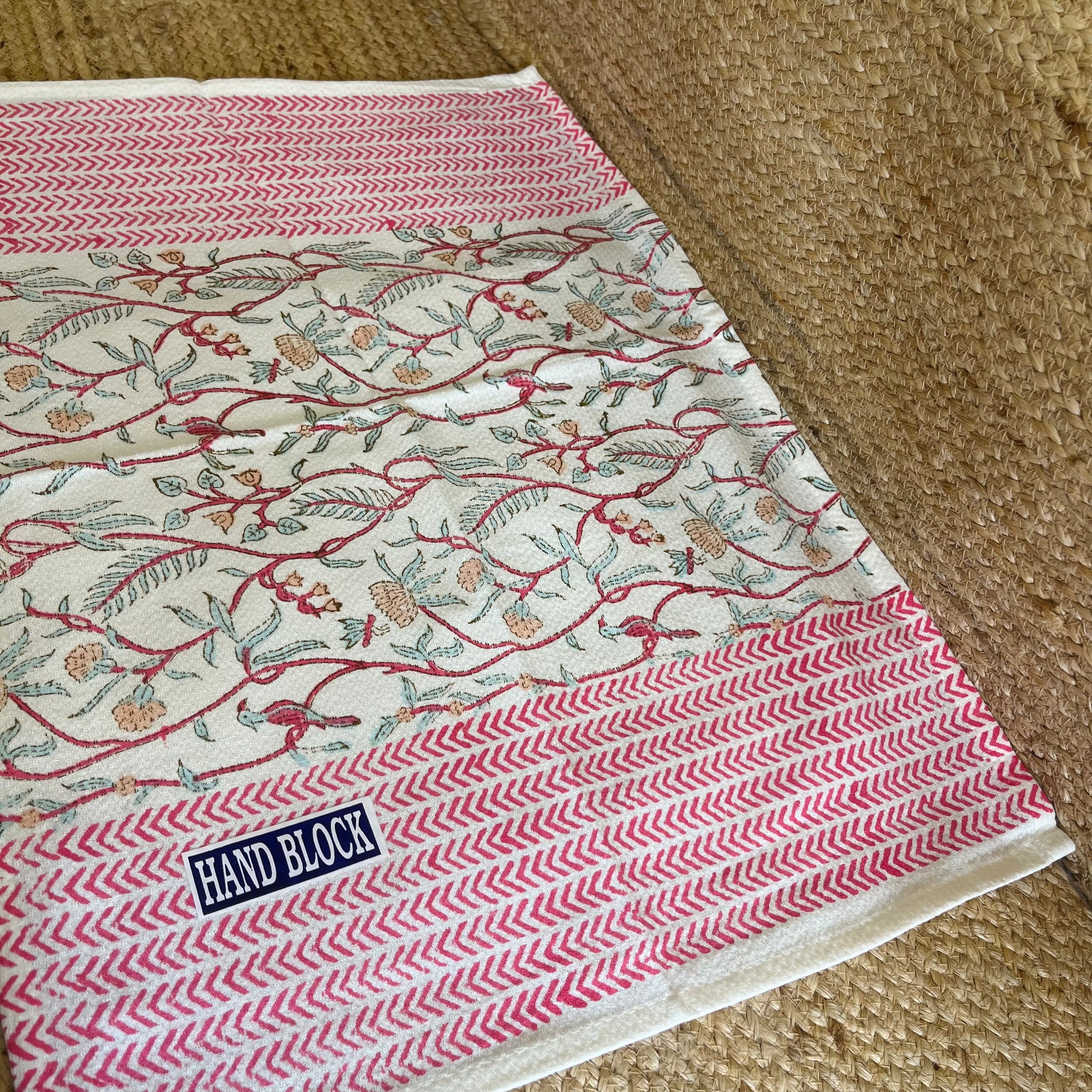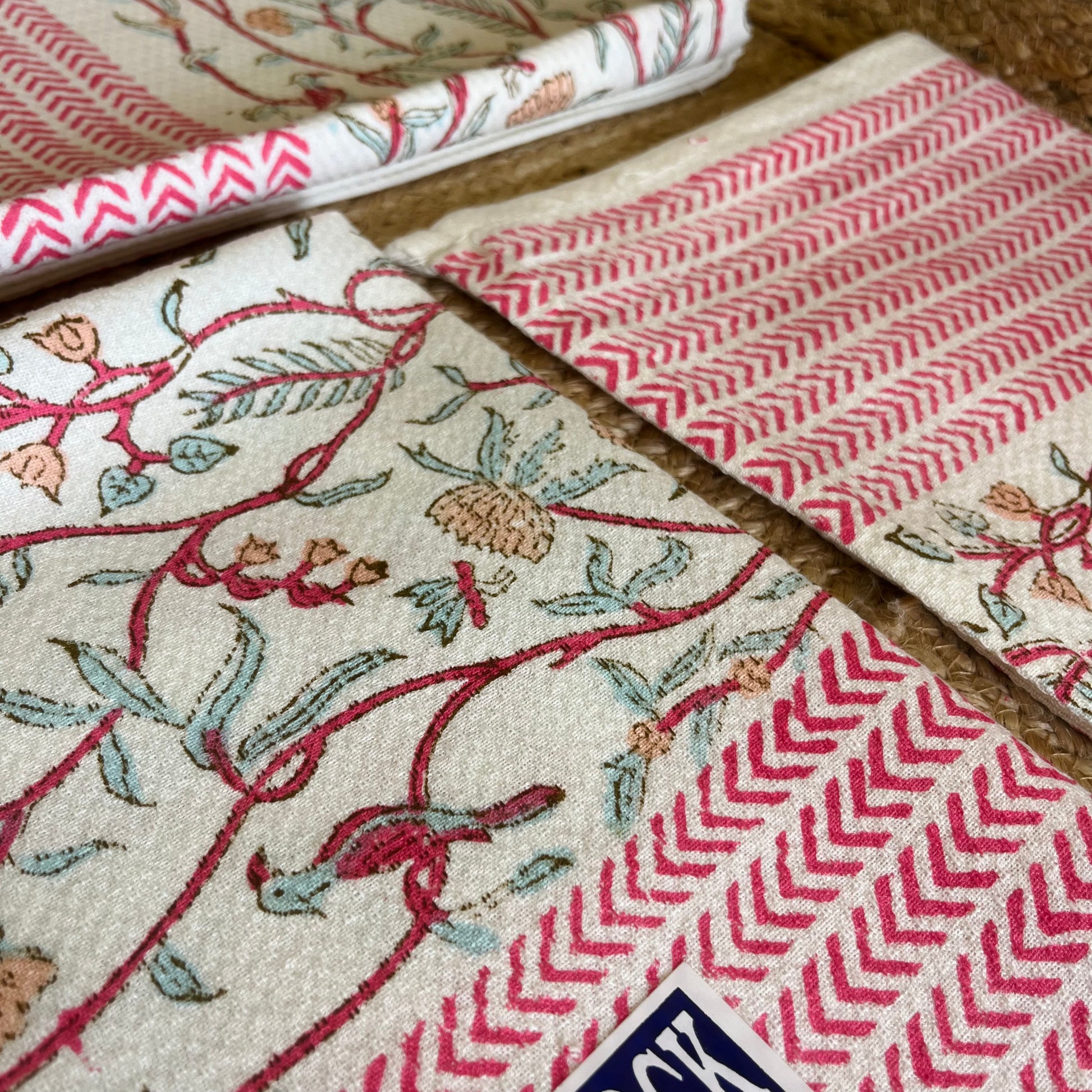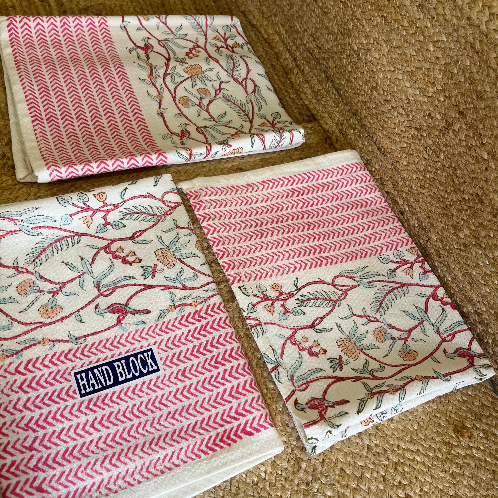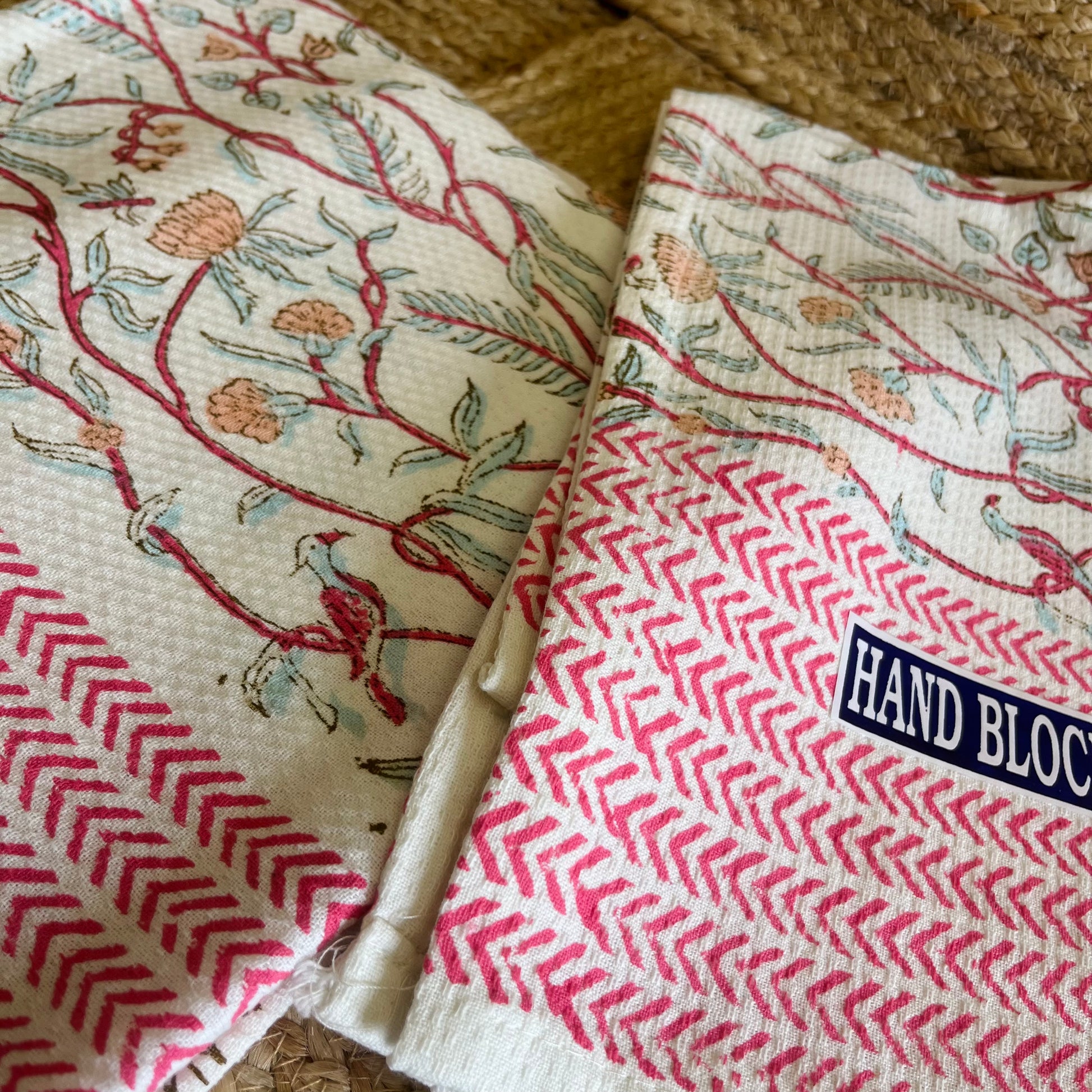 Pink Paradise Handblock Waffle Cotton Towel Set