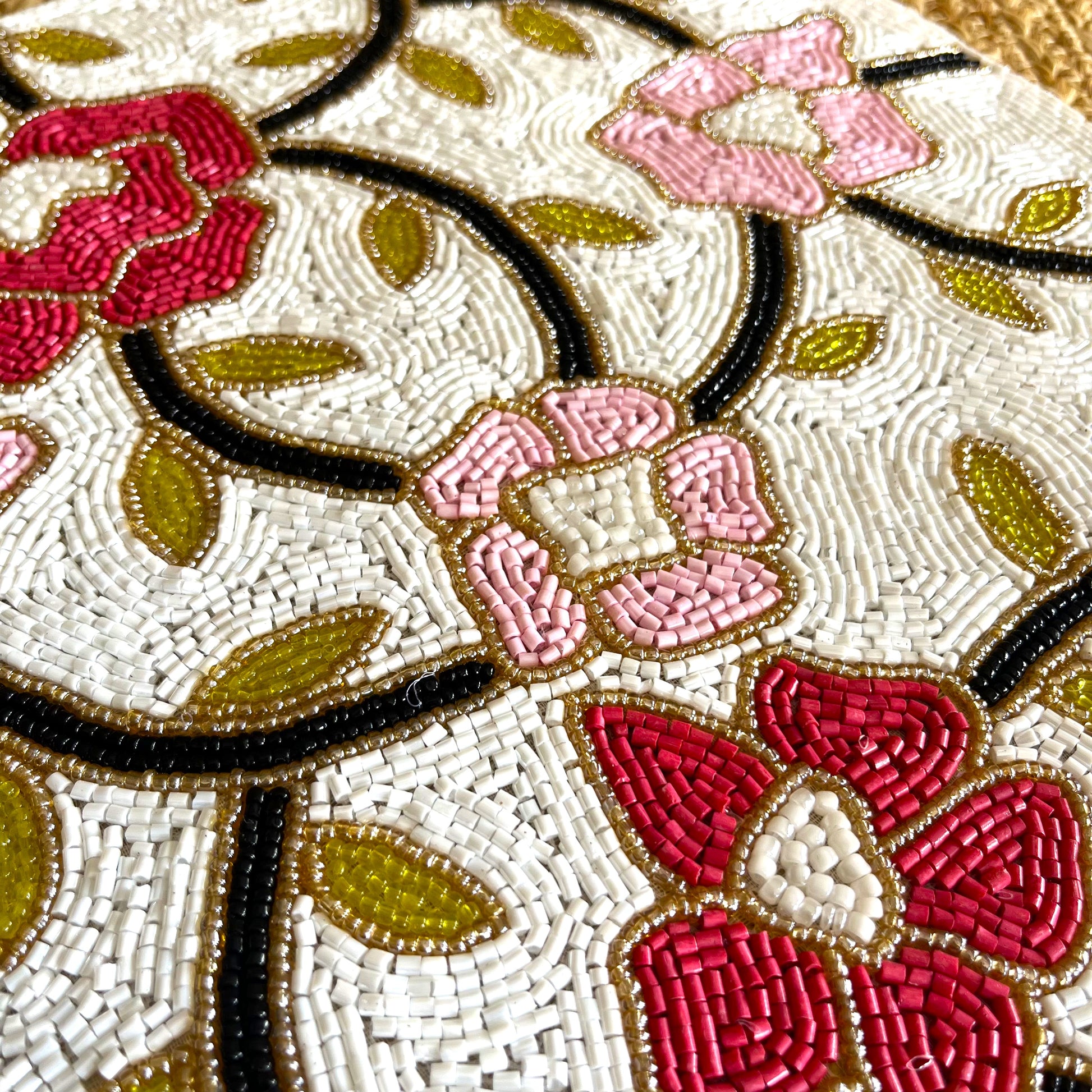 Add elegance and charm to your table with the Pink Red Floral Round Hand Beaded Placemat (14x14 inches). This handcrafted placemat features intricate glass beadwork in a beautiful pink and red floral design, making it a perfect accent for dining tables, side tables, or decorative setups. Its round shape and 14-inch diameter provide ample space for dishes while enhancing your décor with a sophisticated touch. Ideal for special occasions or everyday luxury, this placemat is easy to maintain—simply spot clean with a damp cloth. Elevate your dining experience with this stunning, artisan-crafted piece!