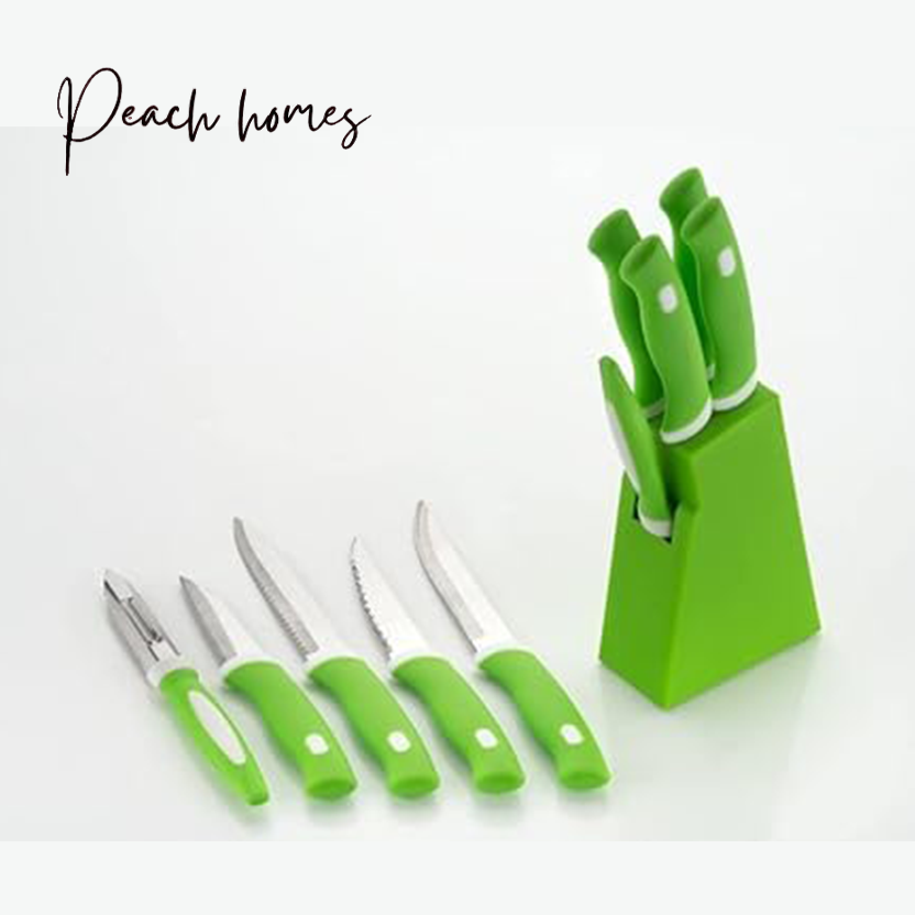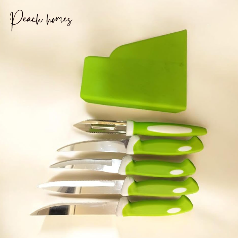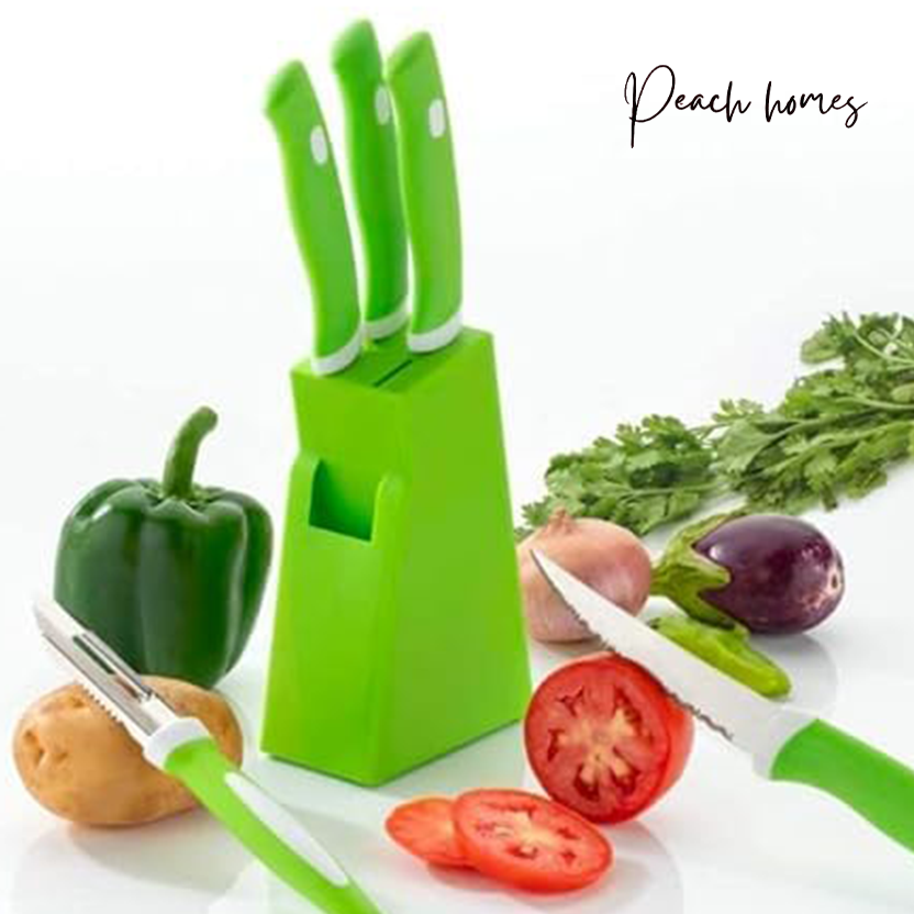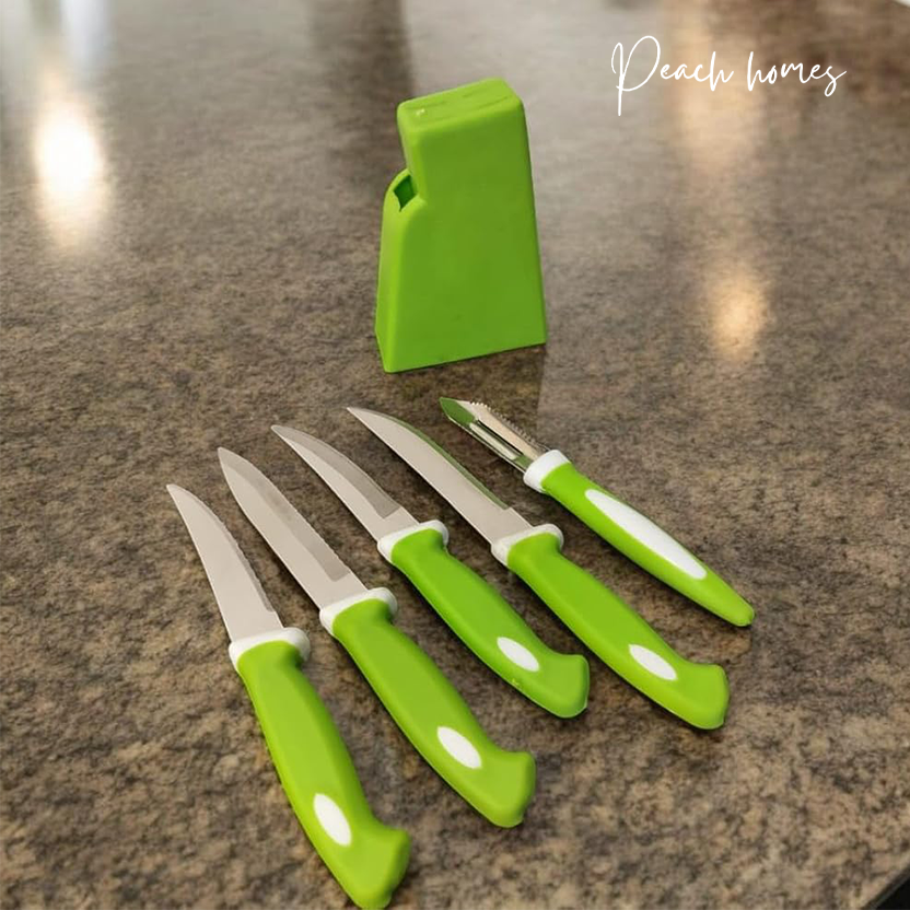Plastic Kitchen Knife Set with Holder (5-Pieces)