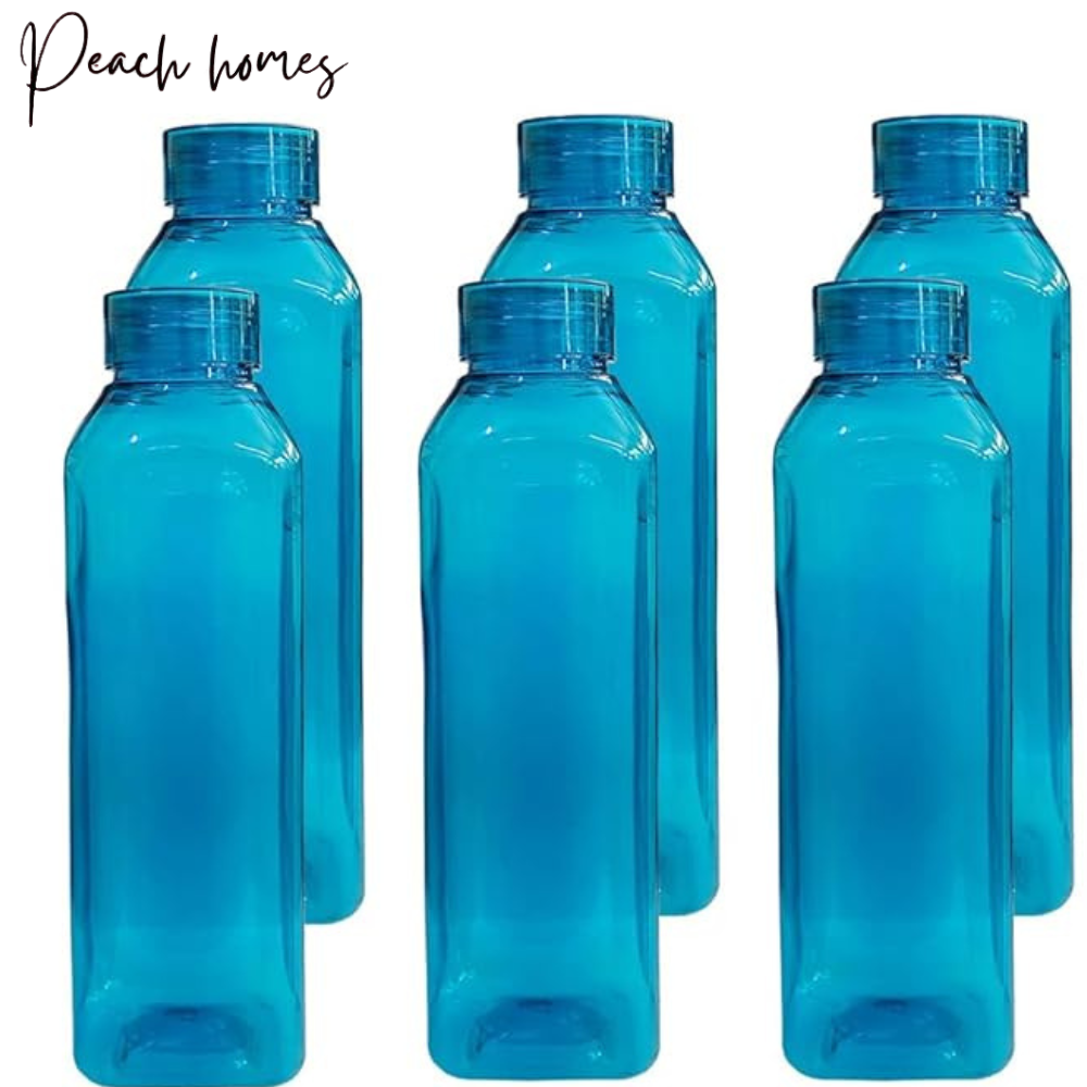 Plastic Transparent Blue Water Bottle (Set of 6) – Reusable, Durable, Eco-Friendly Water Storage