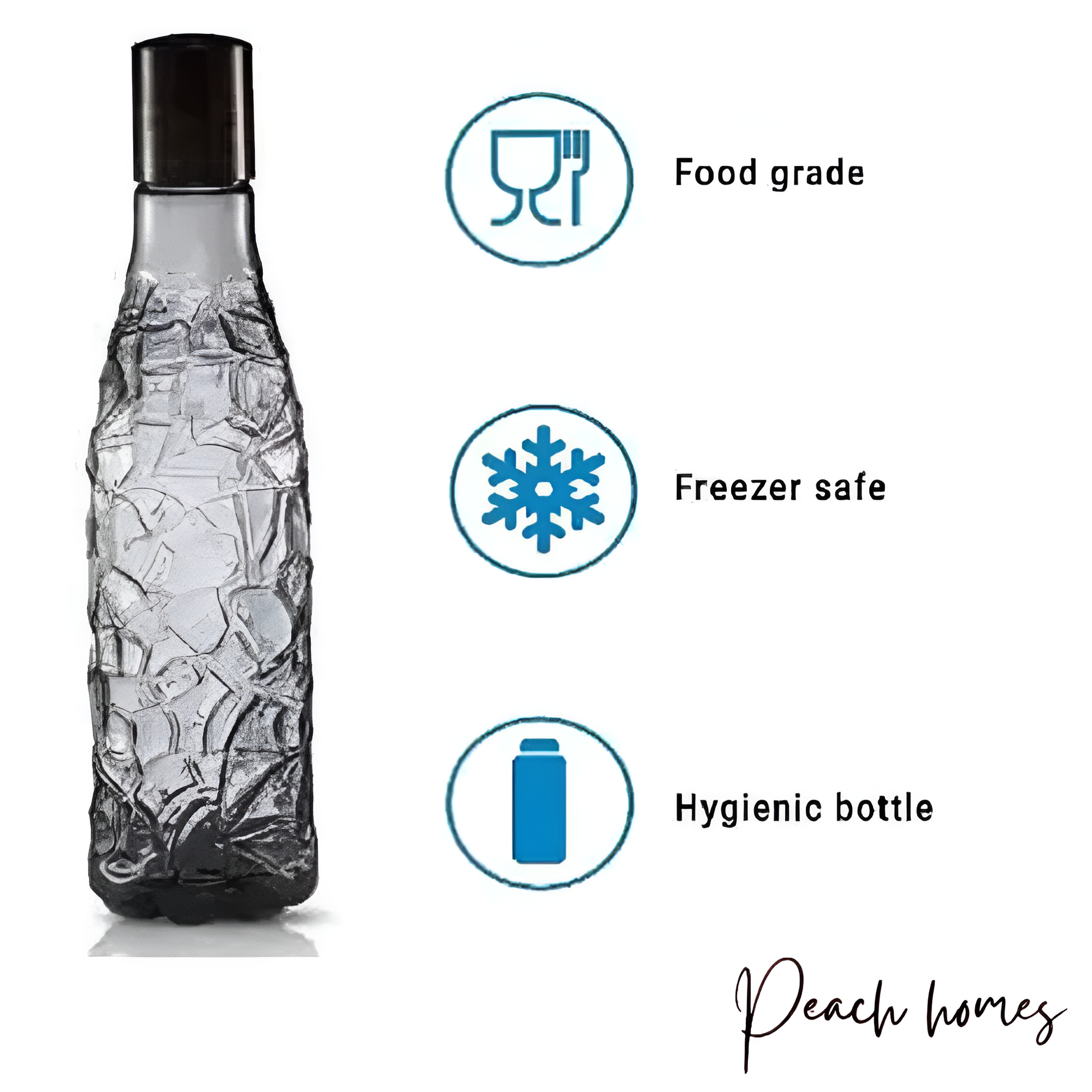 Stay hydrated in style with our Plastic Transparent Mosaic Black Water Bottles. This set of 6 is designed for everyday use and on-the-go convenience. The mosaic black design offers a unique, modern look, while the airtight seal keeps your drinks fresh for longer. Perfect for water, juices, or milk, these bottles are reusable, easy to clean, and fit perfectly in your fridge, bedside table, or cup holder. Choose a sustainable and durable solution to quench your thirst.