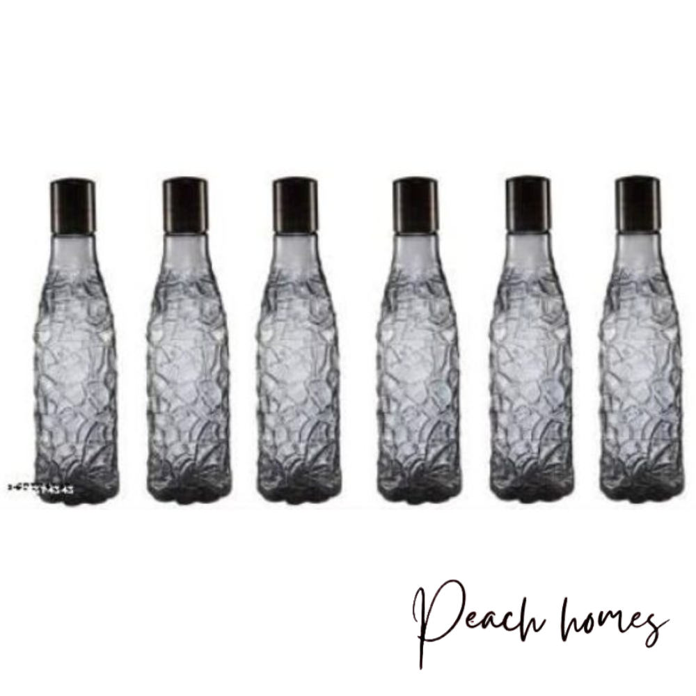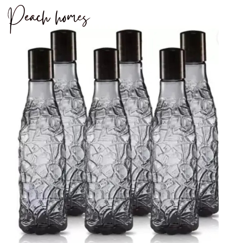 Plastic Transparent Mosaic Black Water Bottle (Set of 6) – Reusable, Airtight, Eco-Friendly Water Storage