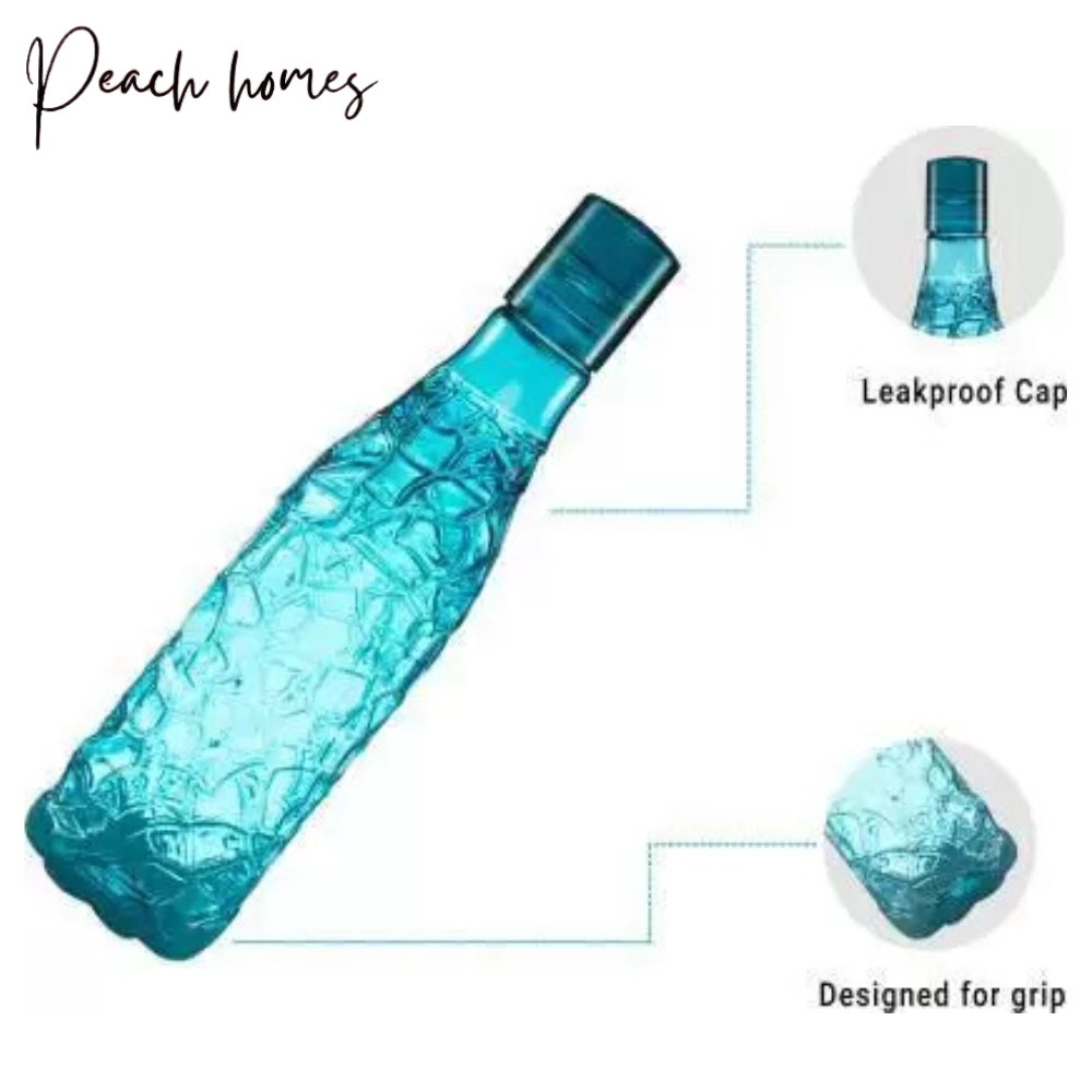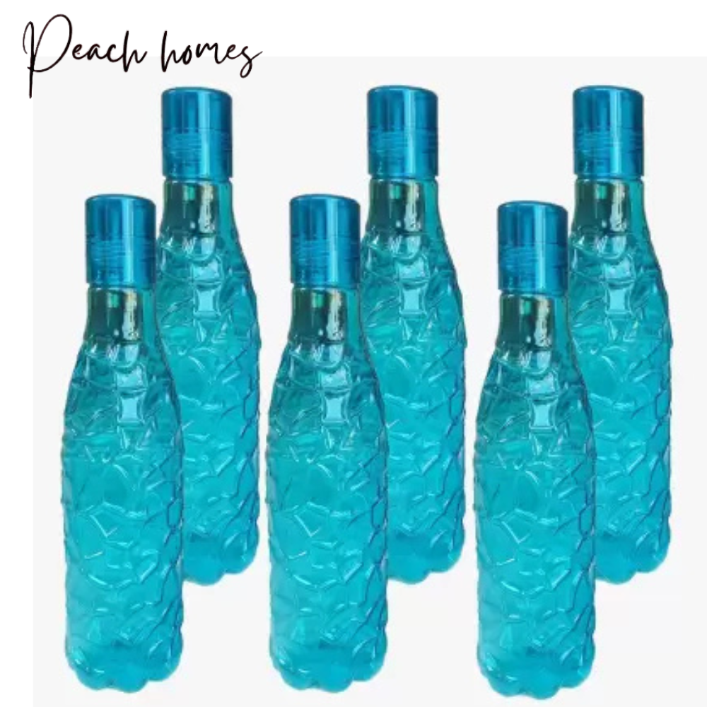 Plastic Transparent Mosaic Blue Water Bottle (Set of 6) – Reusable, Airtight, Eco-Friendly Water Storage