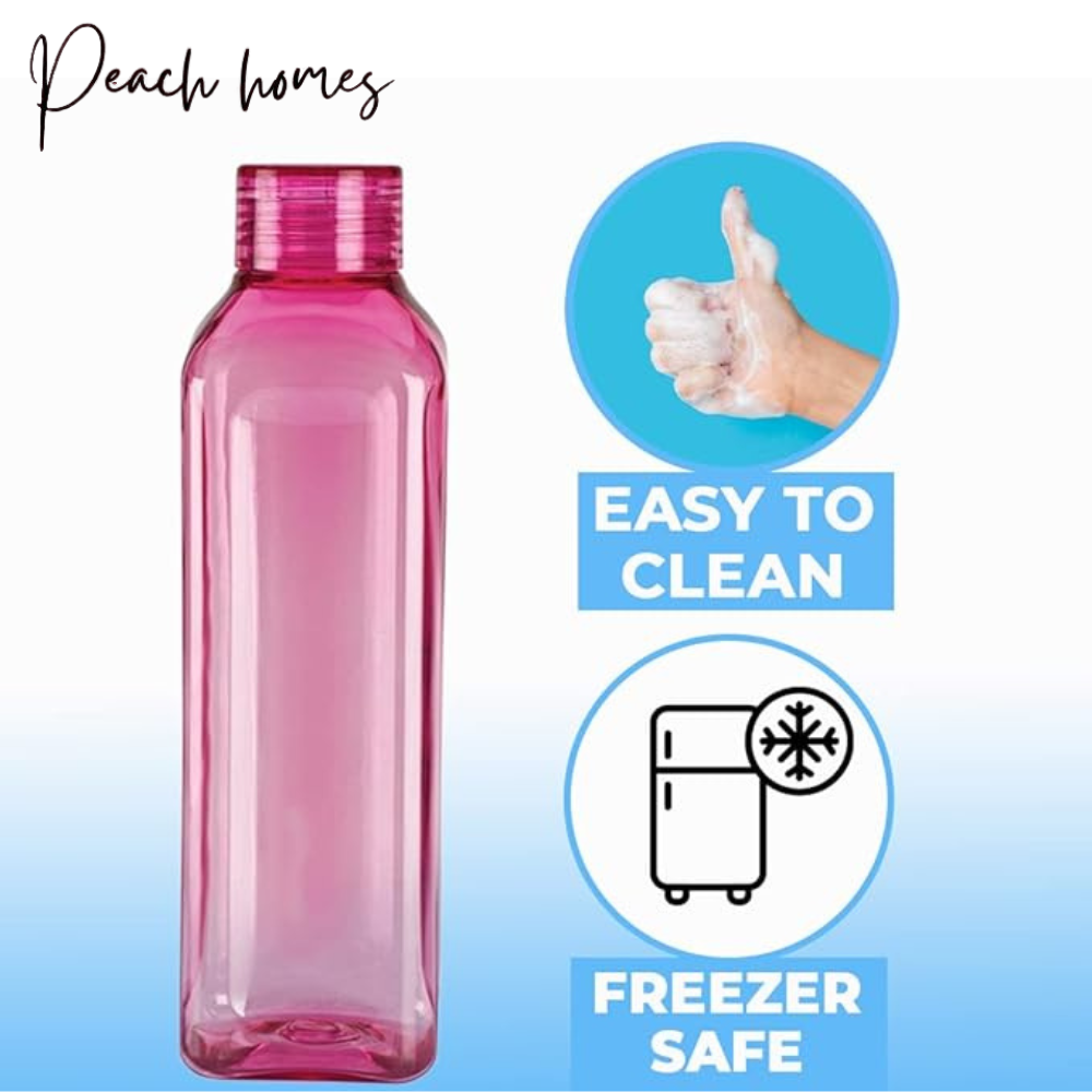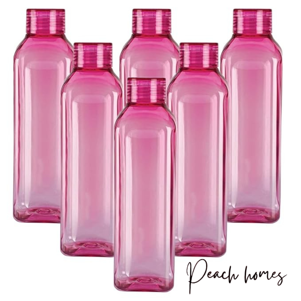 Plastic Transparent Pink Water Bottle (Set of 6) – Reusable, Leak-Proof, Eco-Friendly Hydration Bottles