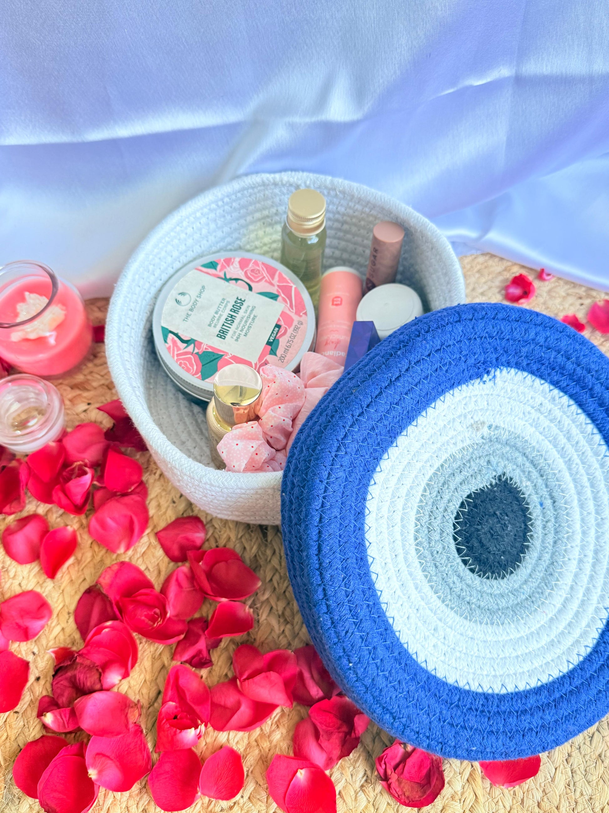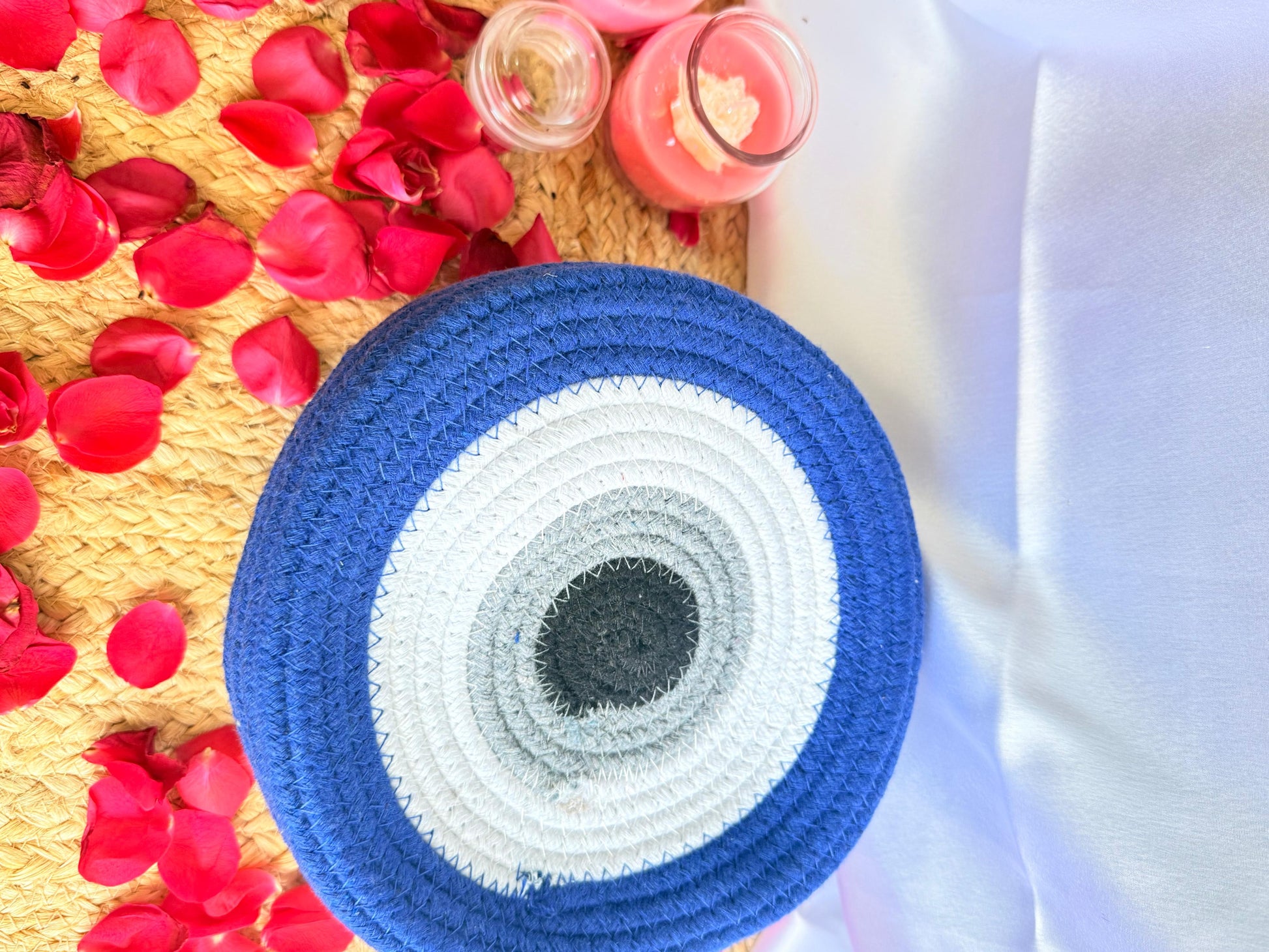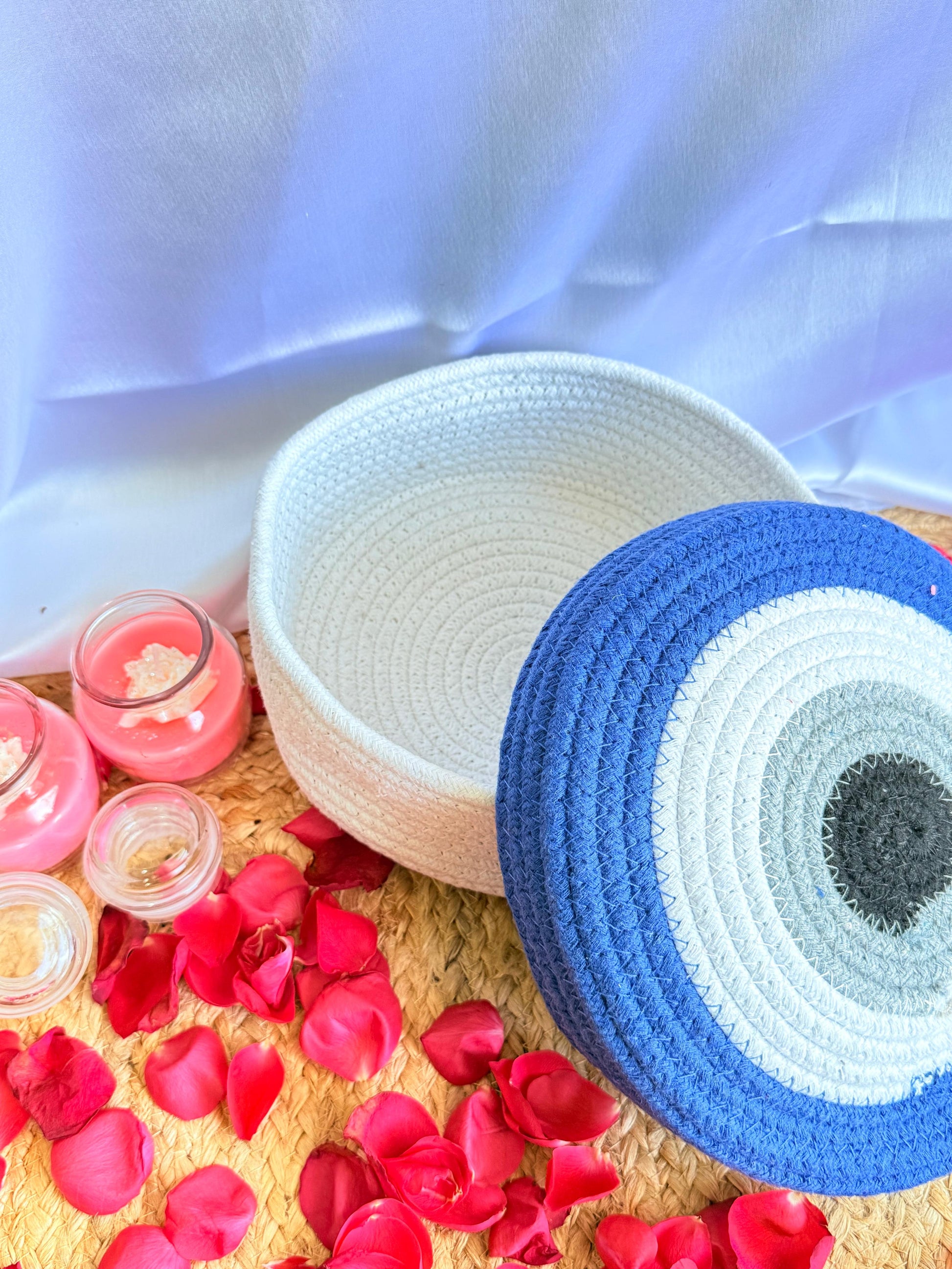 Evil Eye White and Blue Table Organizer – Stylish Desk Organizer for Home & Dressing Table