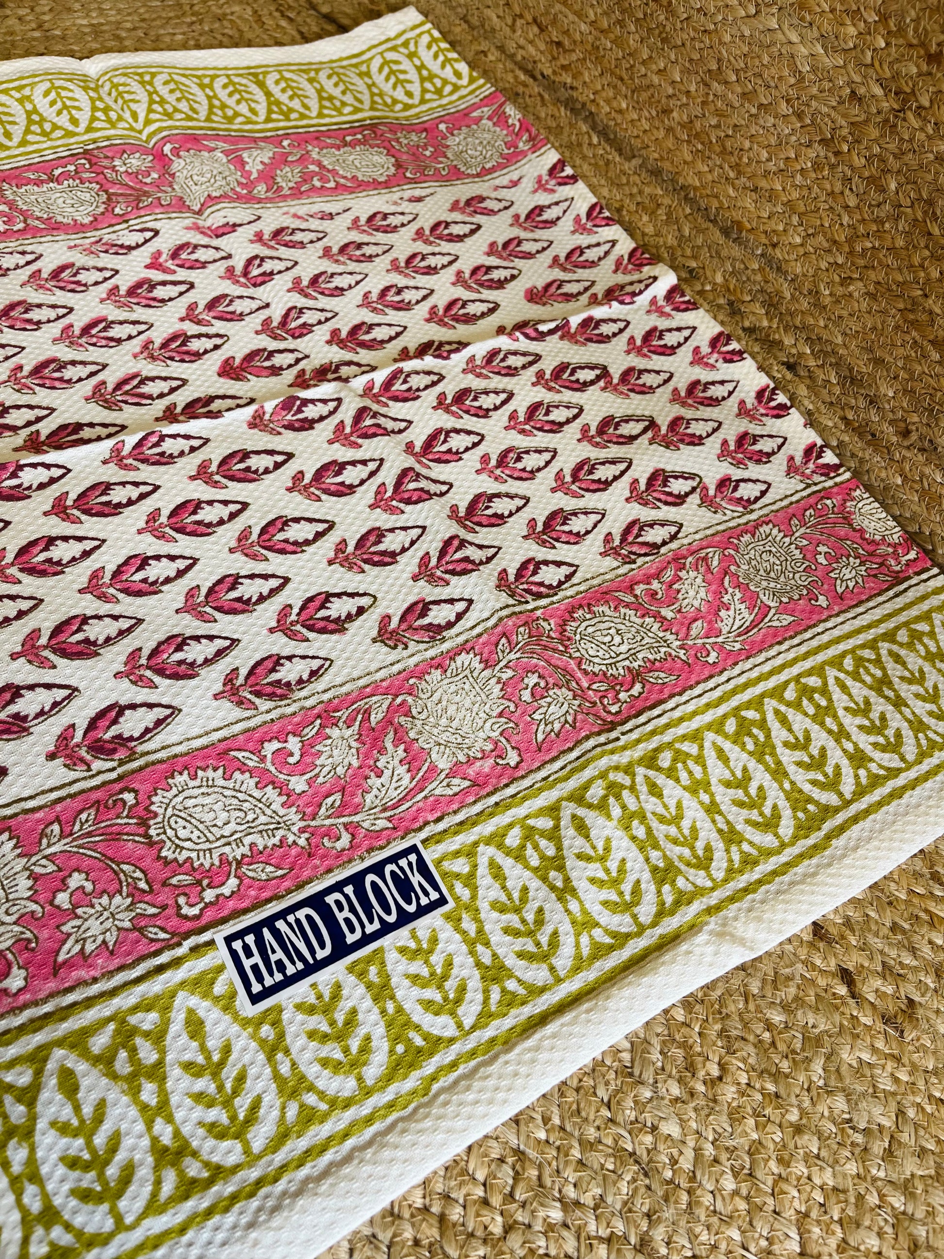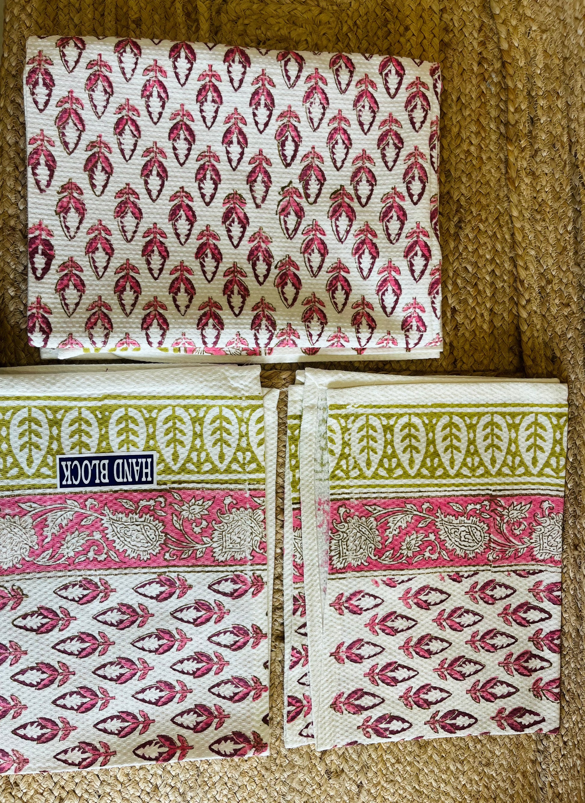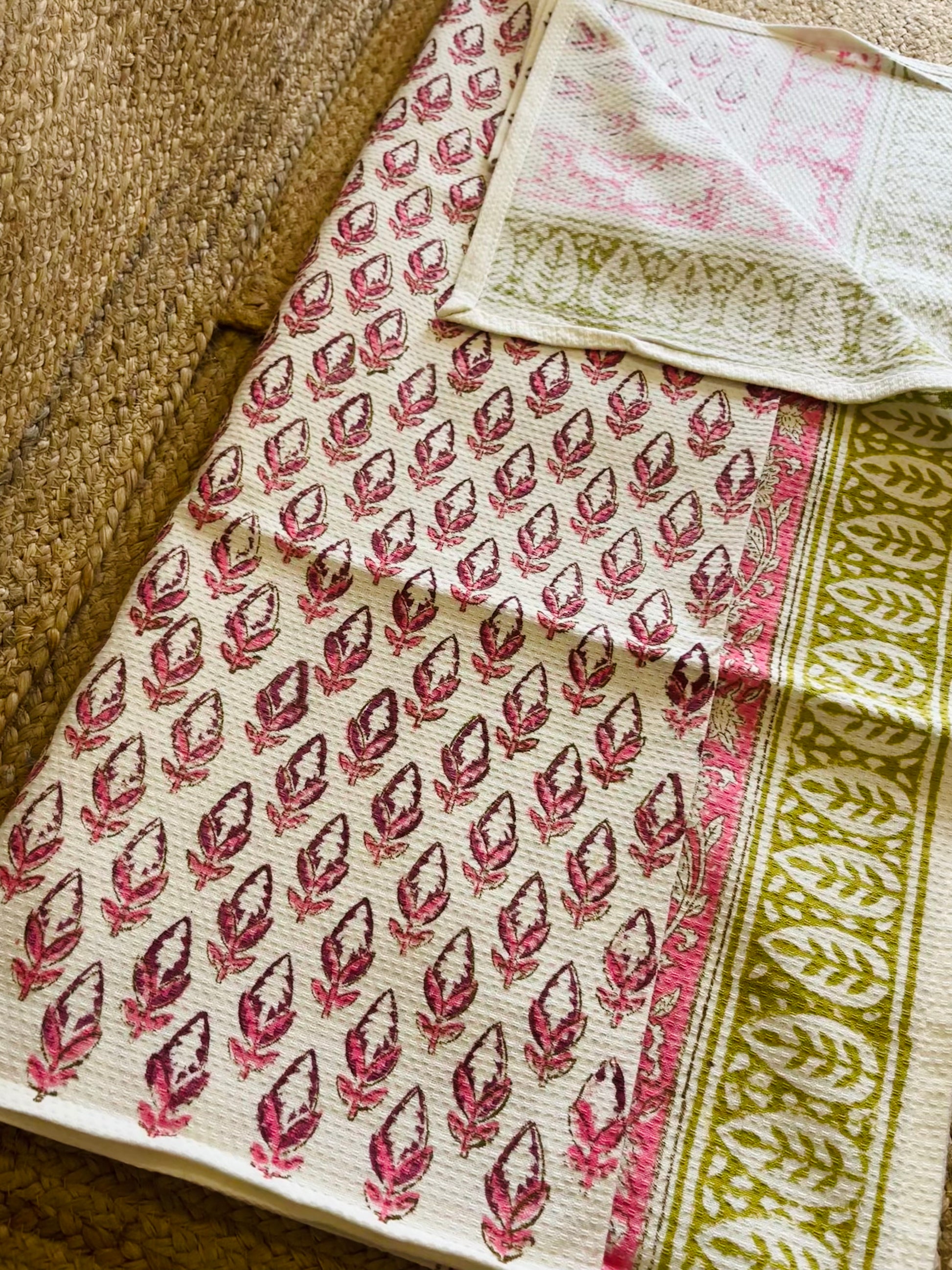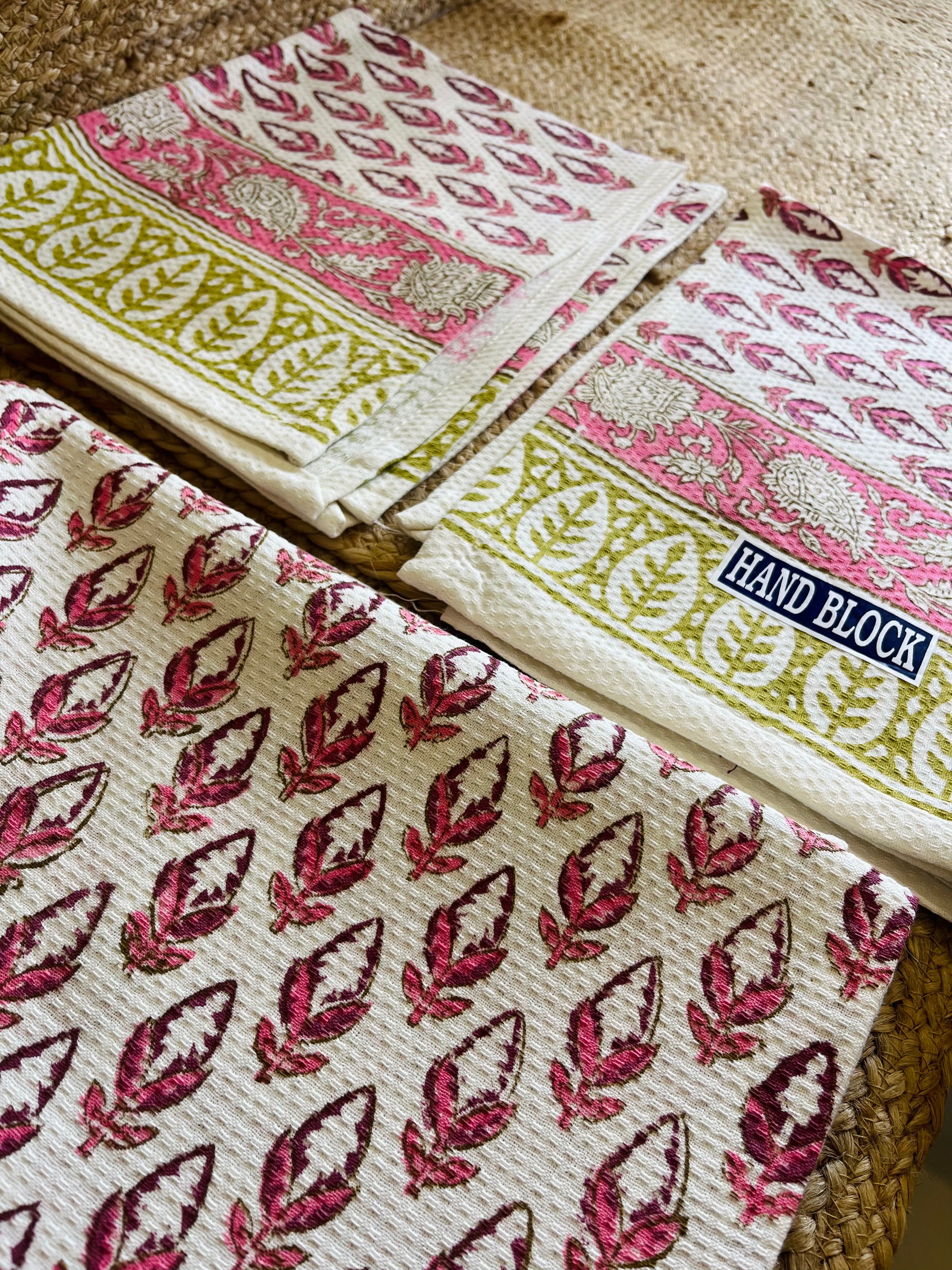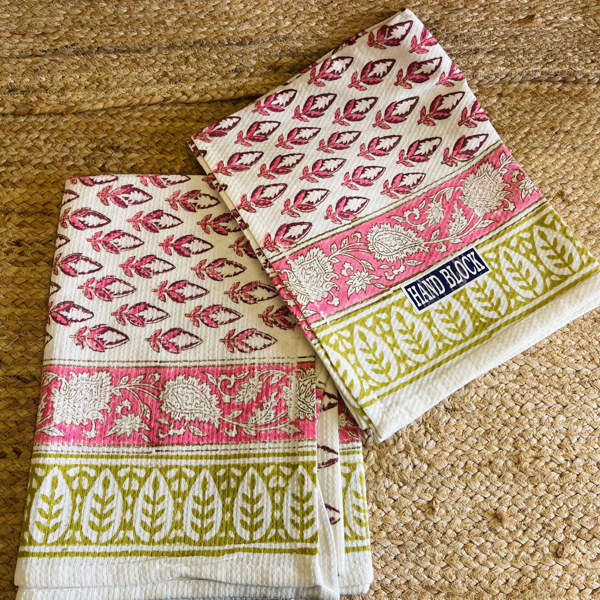Pretty Pink Handblock Waffle Cotton Towel Set