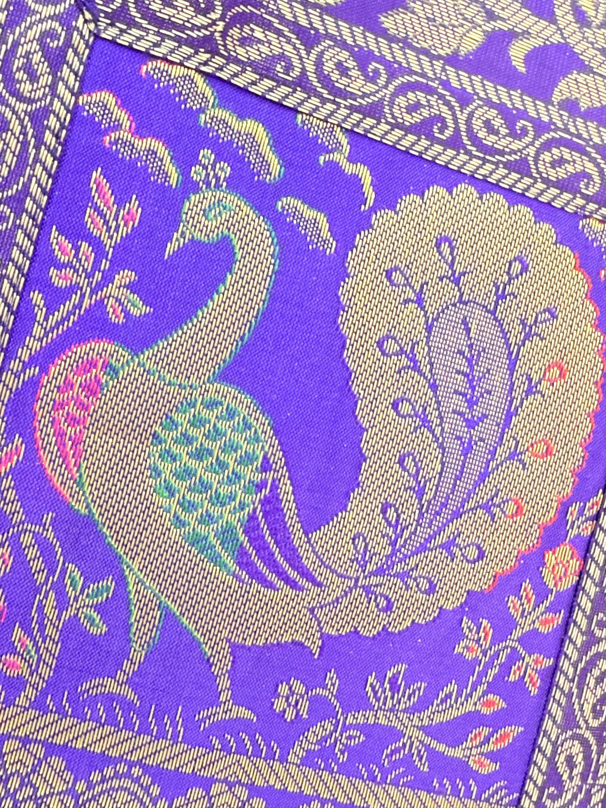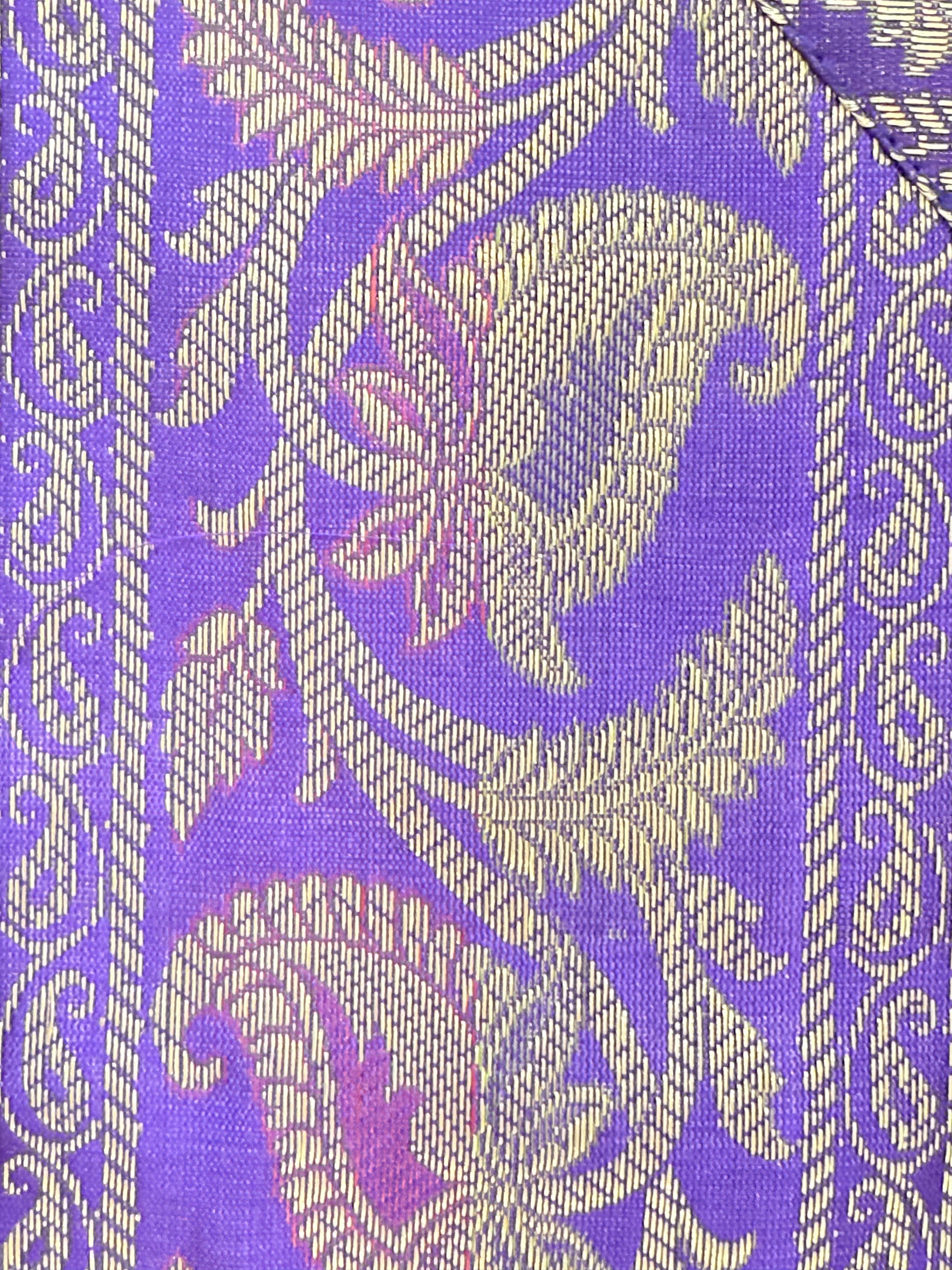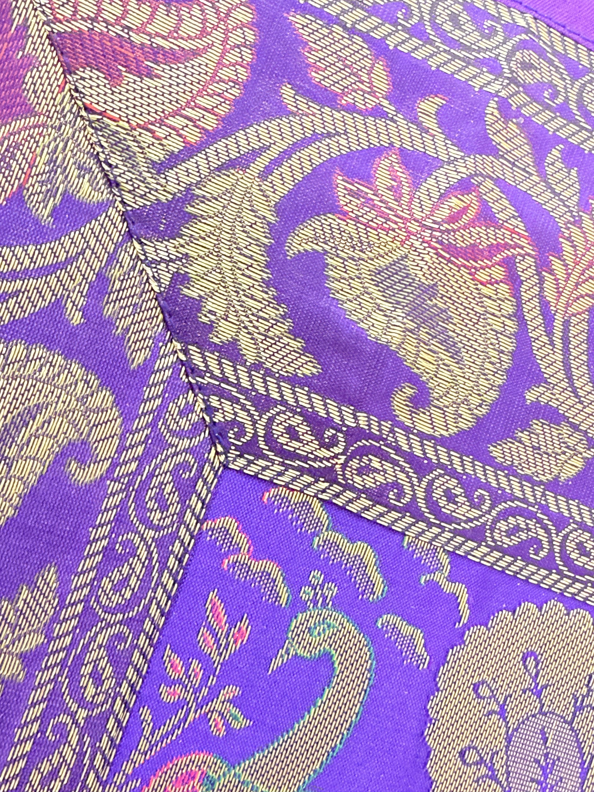 - Color: Elegant Purple Peacock Banarasi silk with golden accents