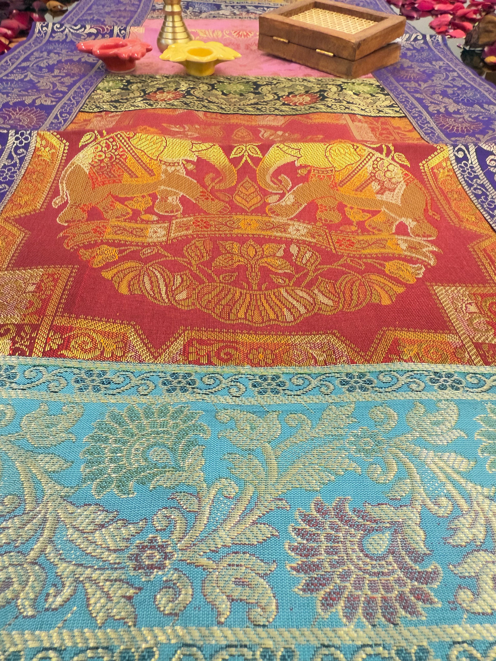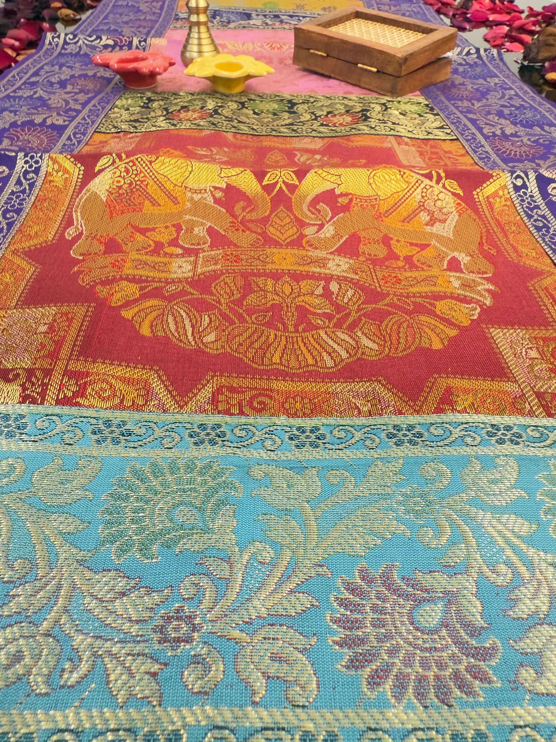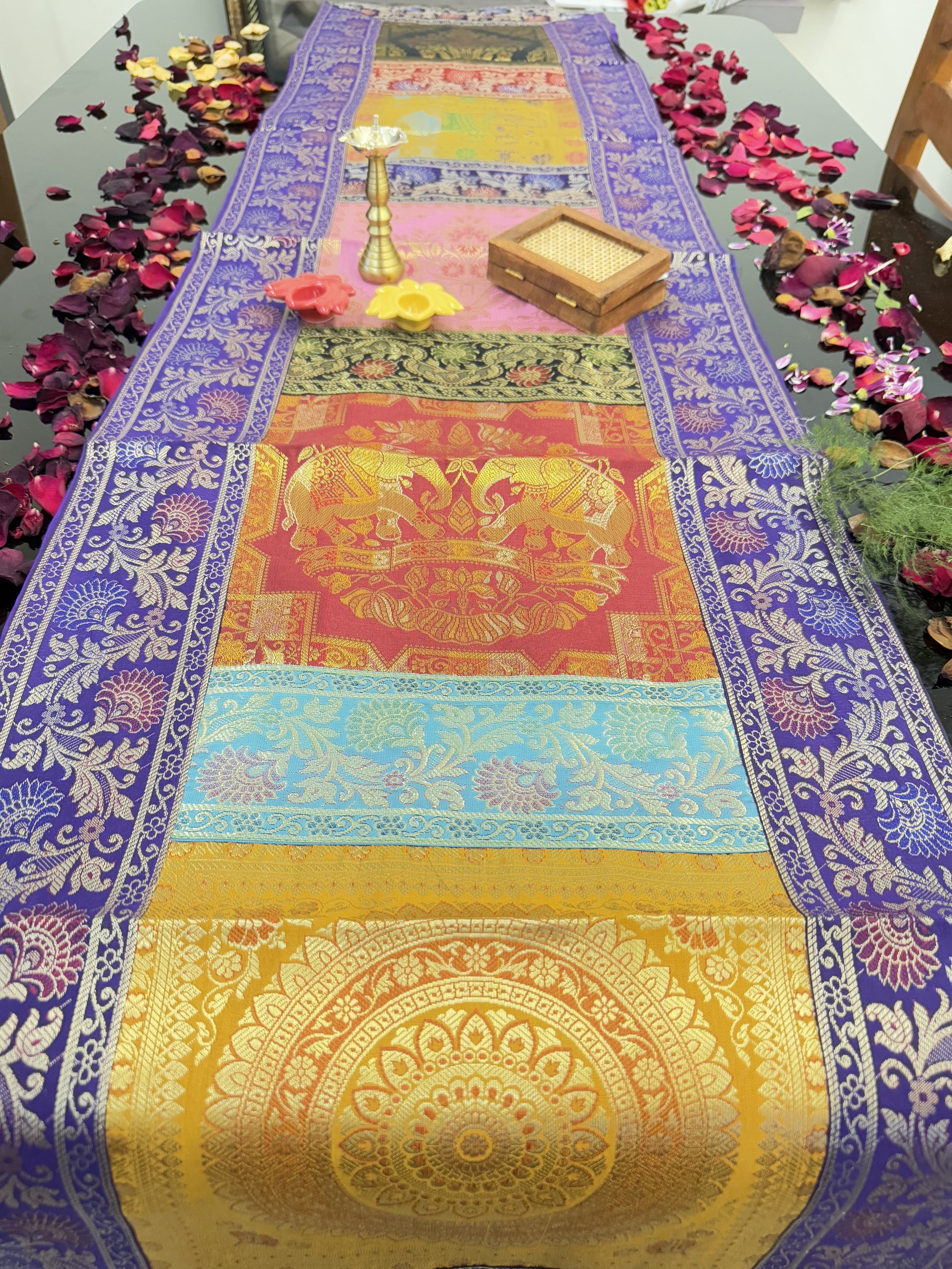 Purple Banarasi Silk Patchwork Table Runner – Luxurious Brocade & Art Silk Décor for Elegant Spaces