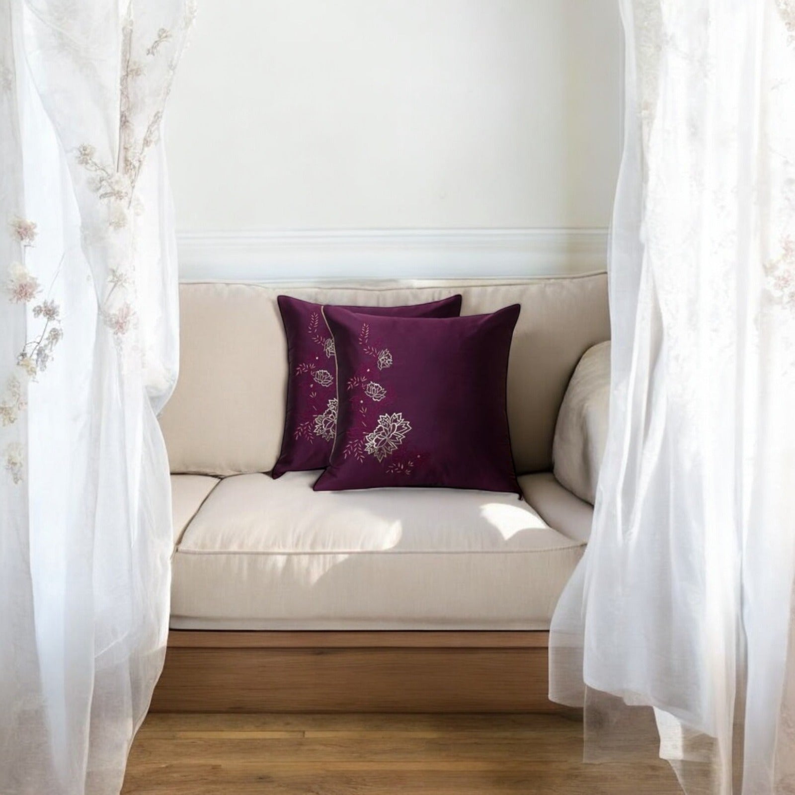 Bring elegance and comfort to your home with this luxurious purple silk cushion cover!