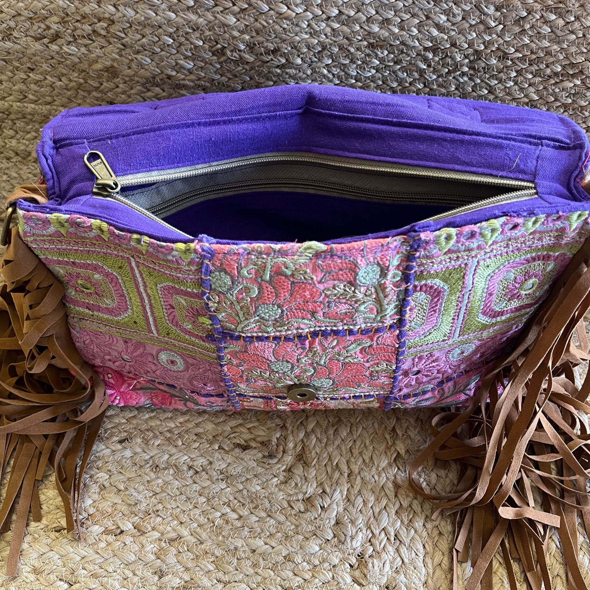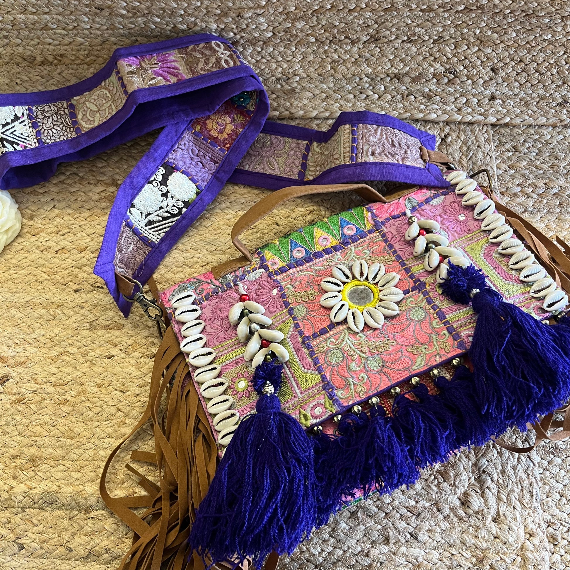 Purple Tasseled Boho Sling with Detachable Sling