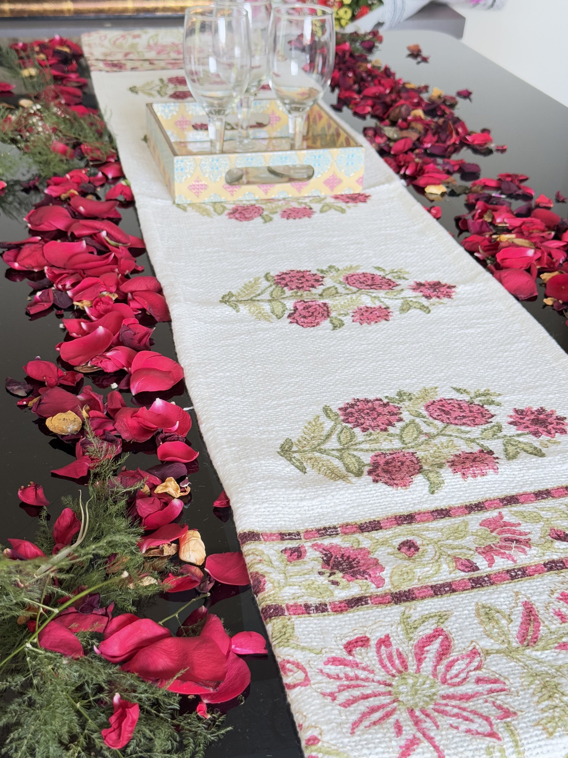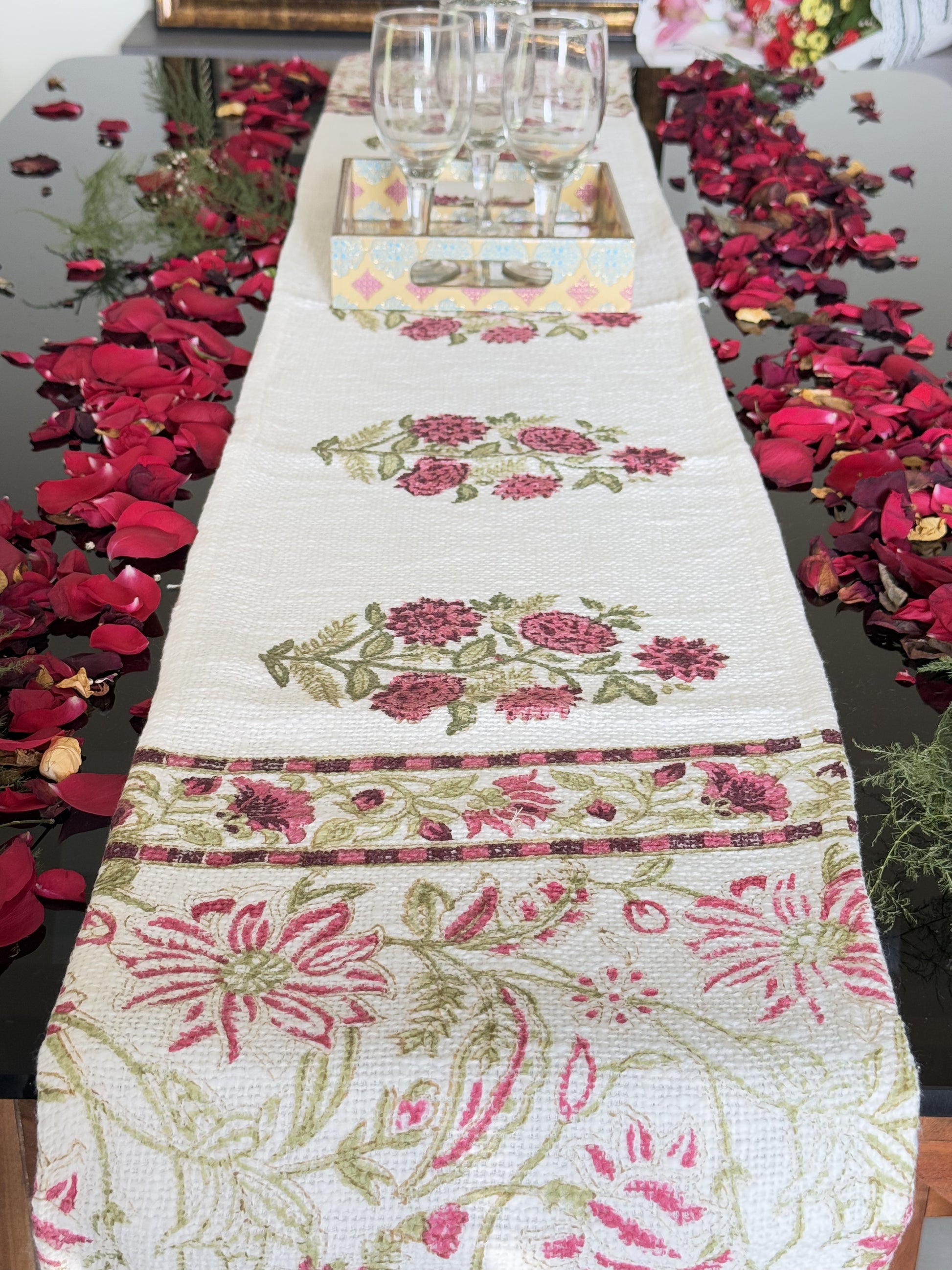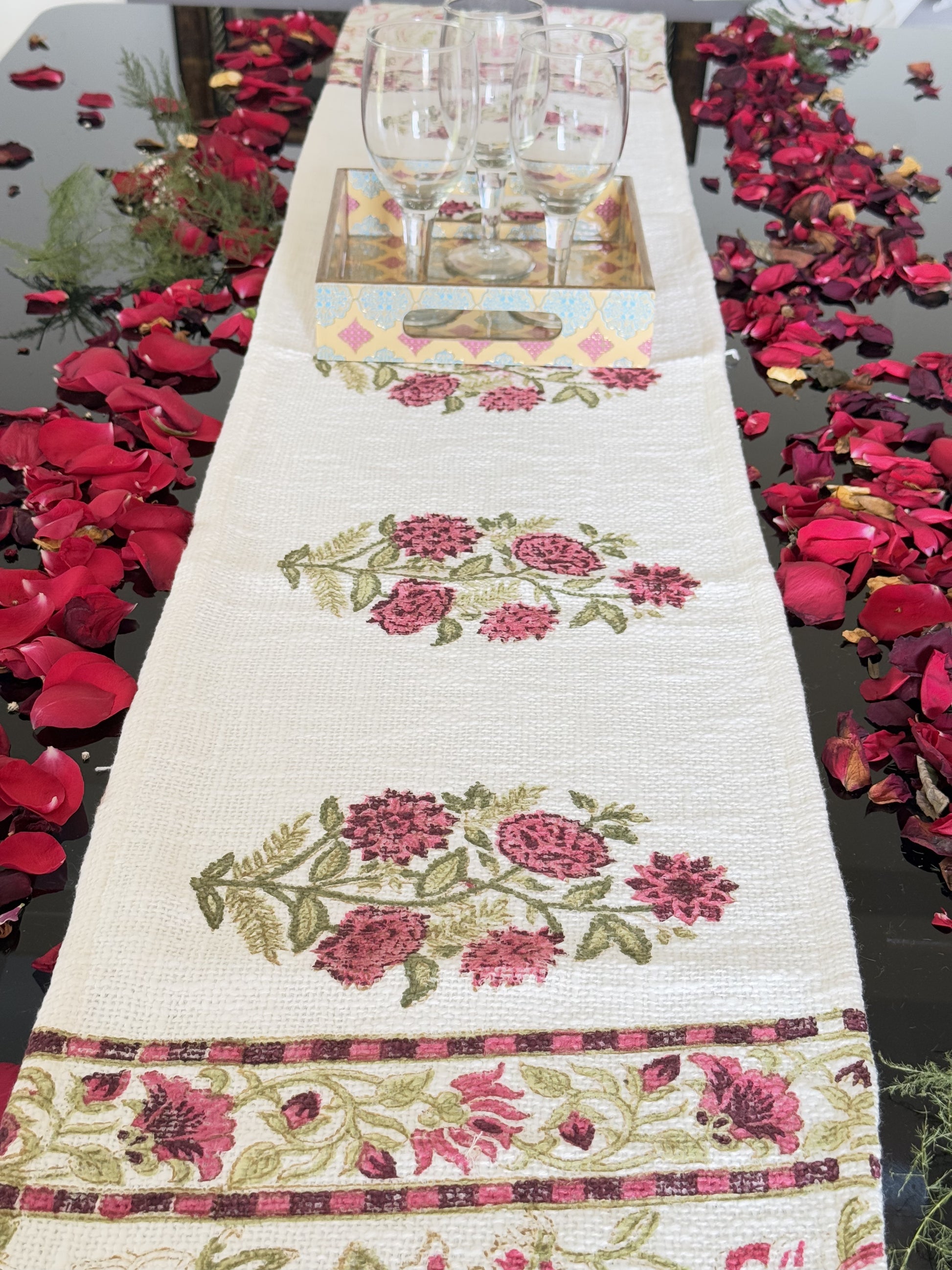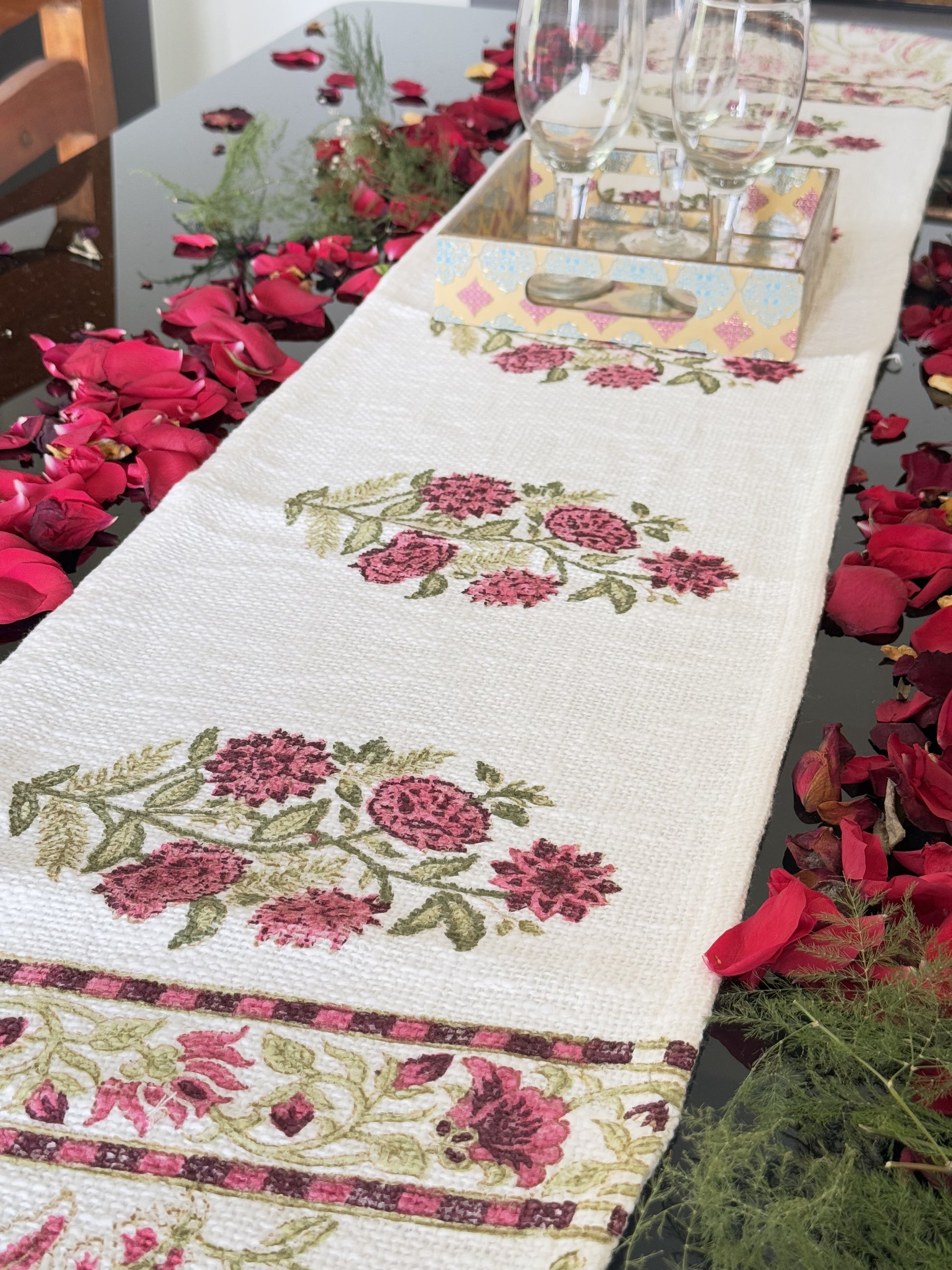 Red Floral Handblock Jute Runner – Artisan Craftsmanship from Rajasthan