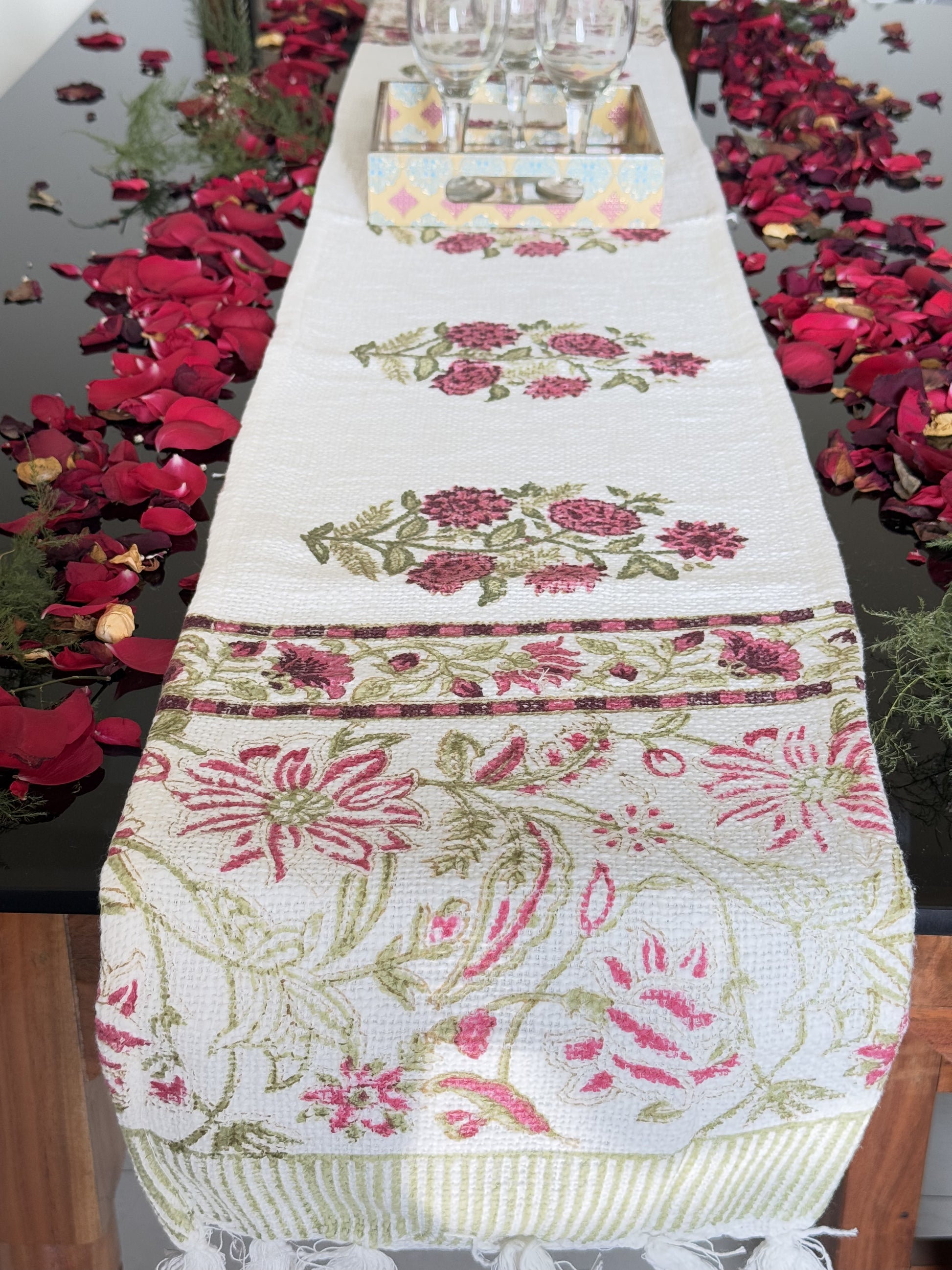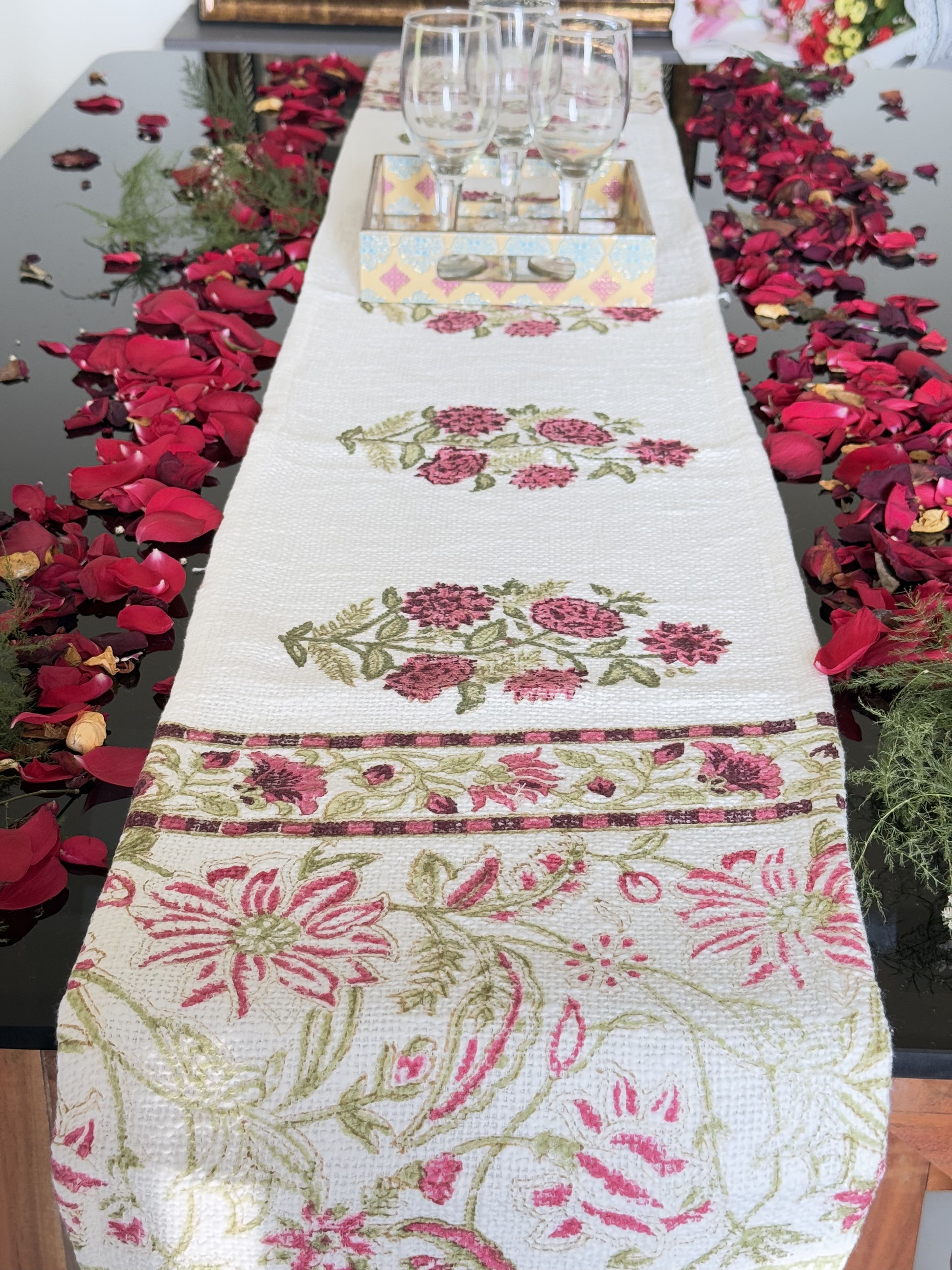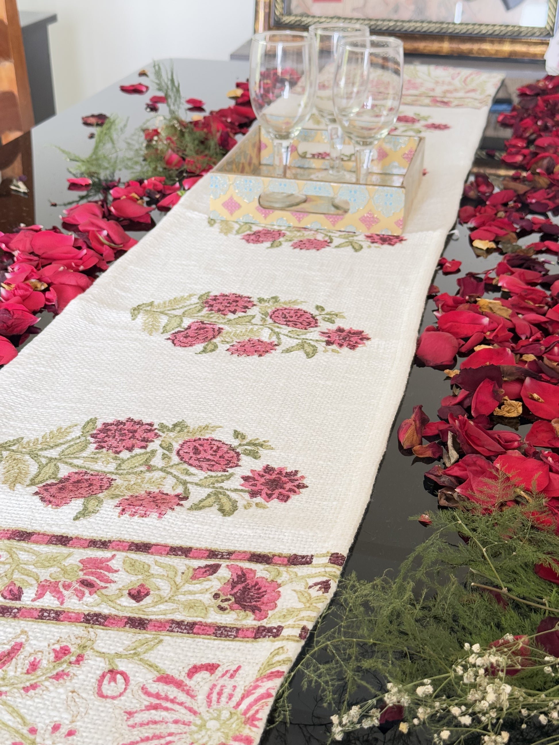 Red Floral Handblock Jute Runner – Artisan Craftsmanship from Rajasthan