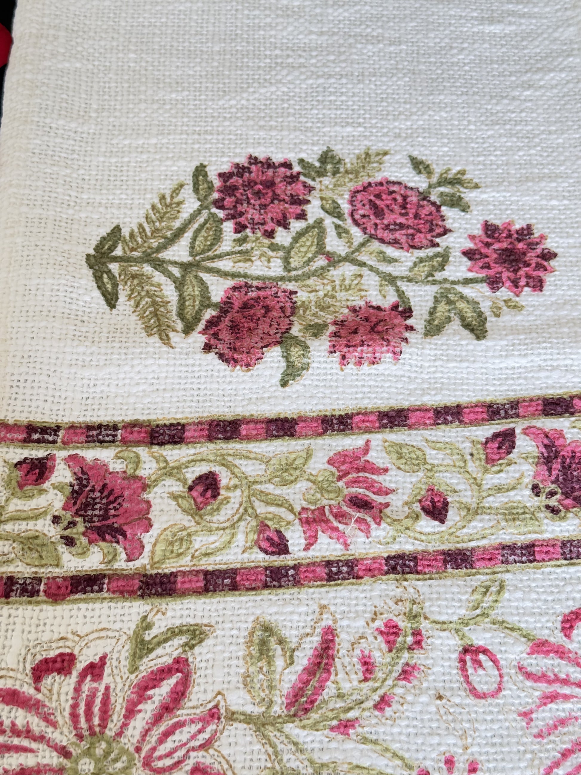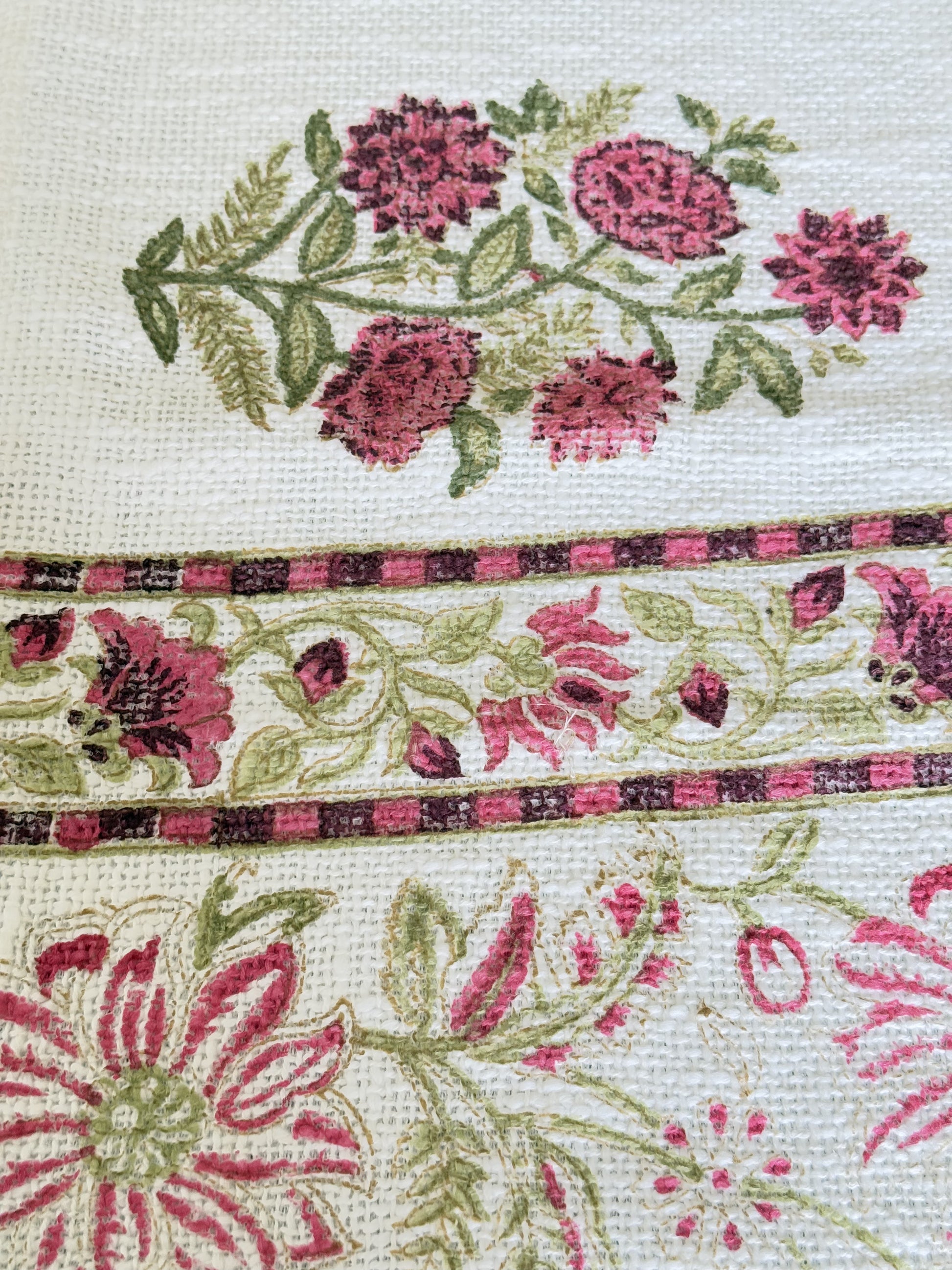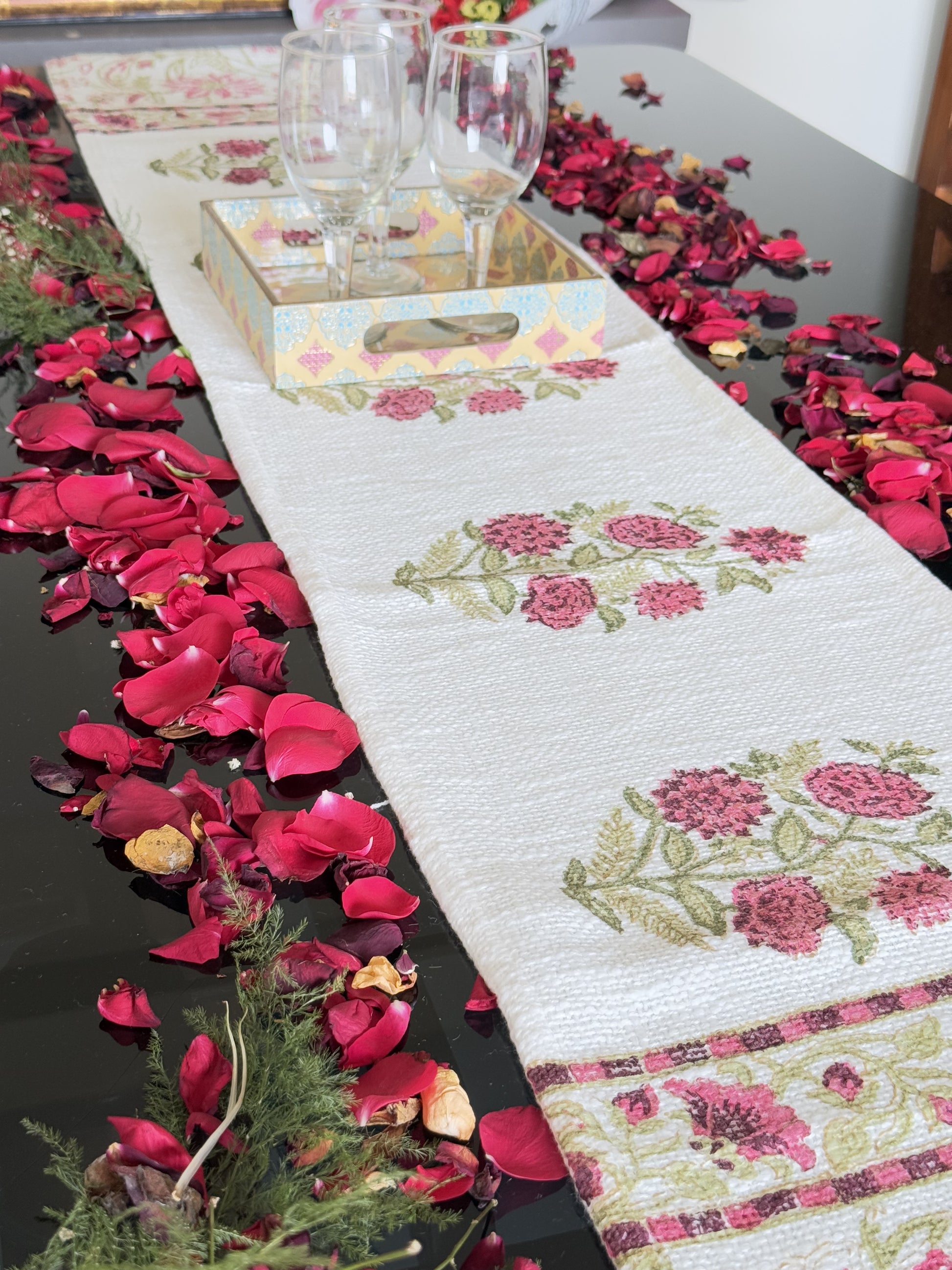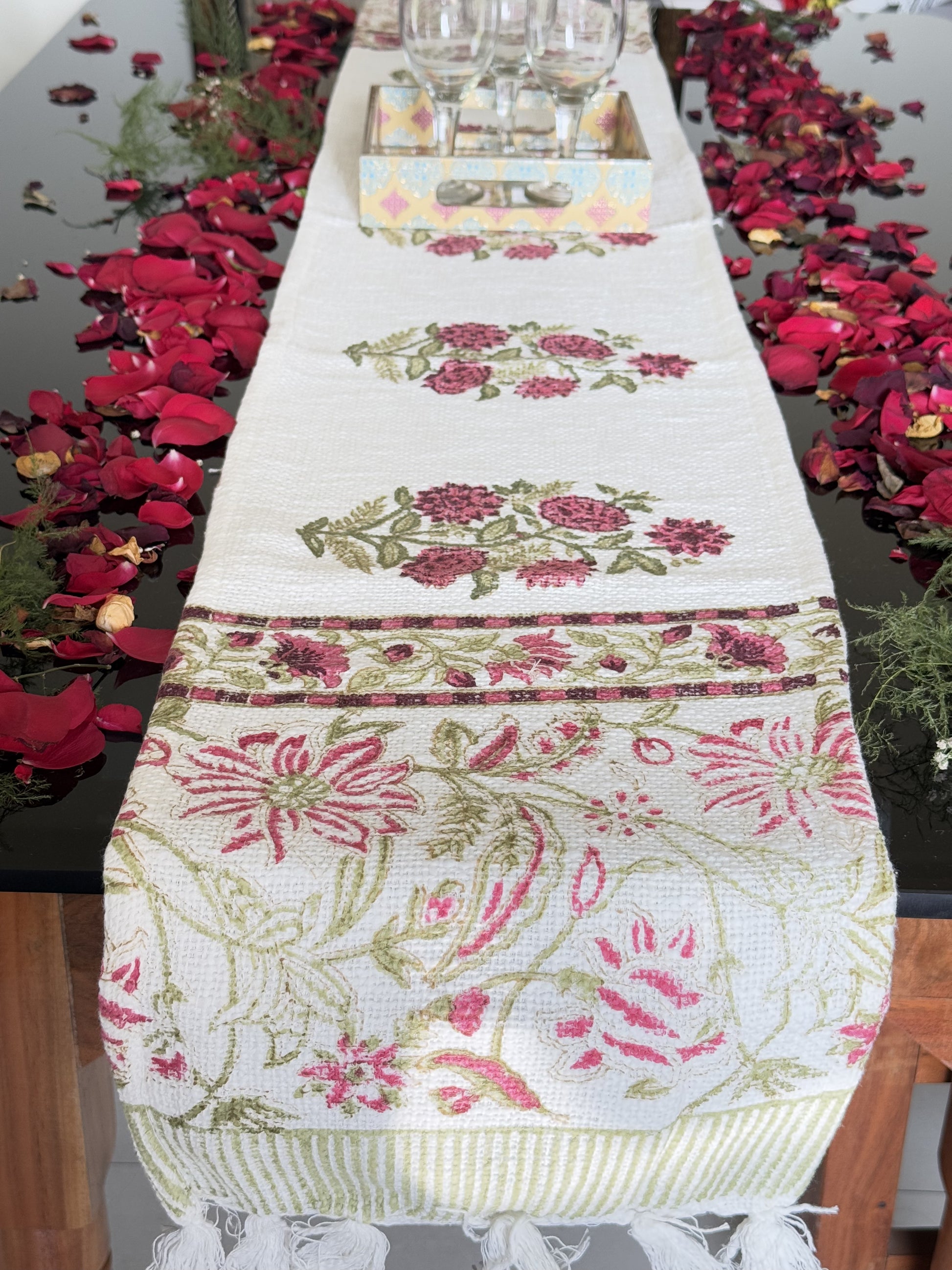 Red Floral Handblock Jute Runner – Artisan Craftsmanship from Rajasthan
