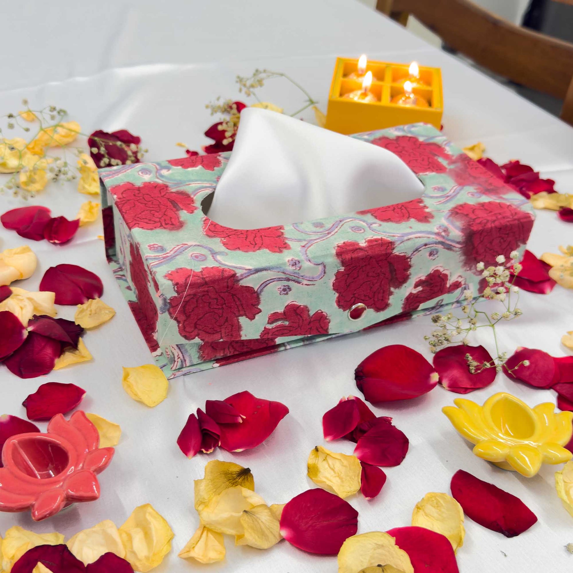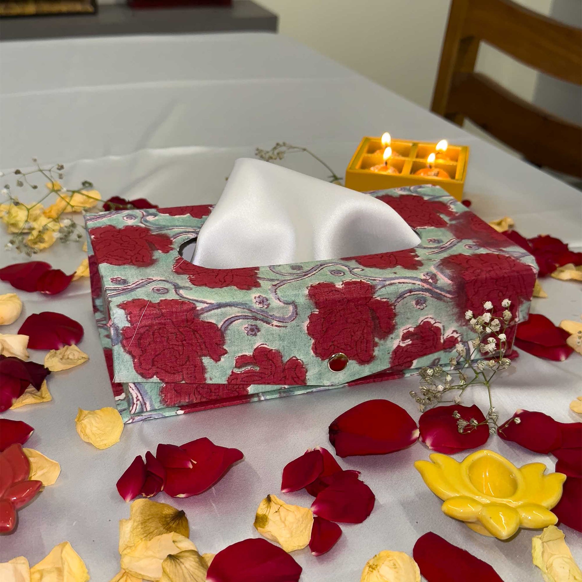 Red Floral Handblock Tissue Box