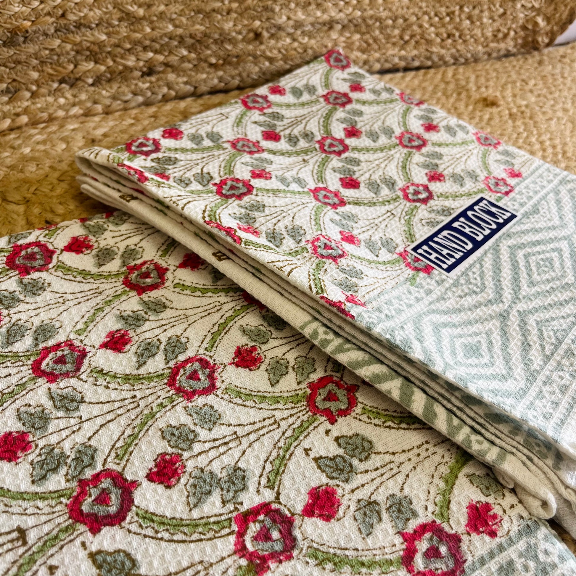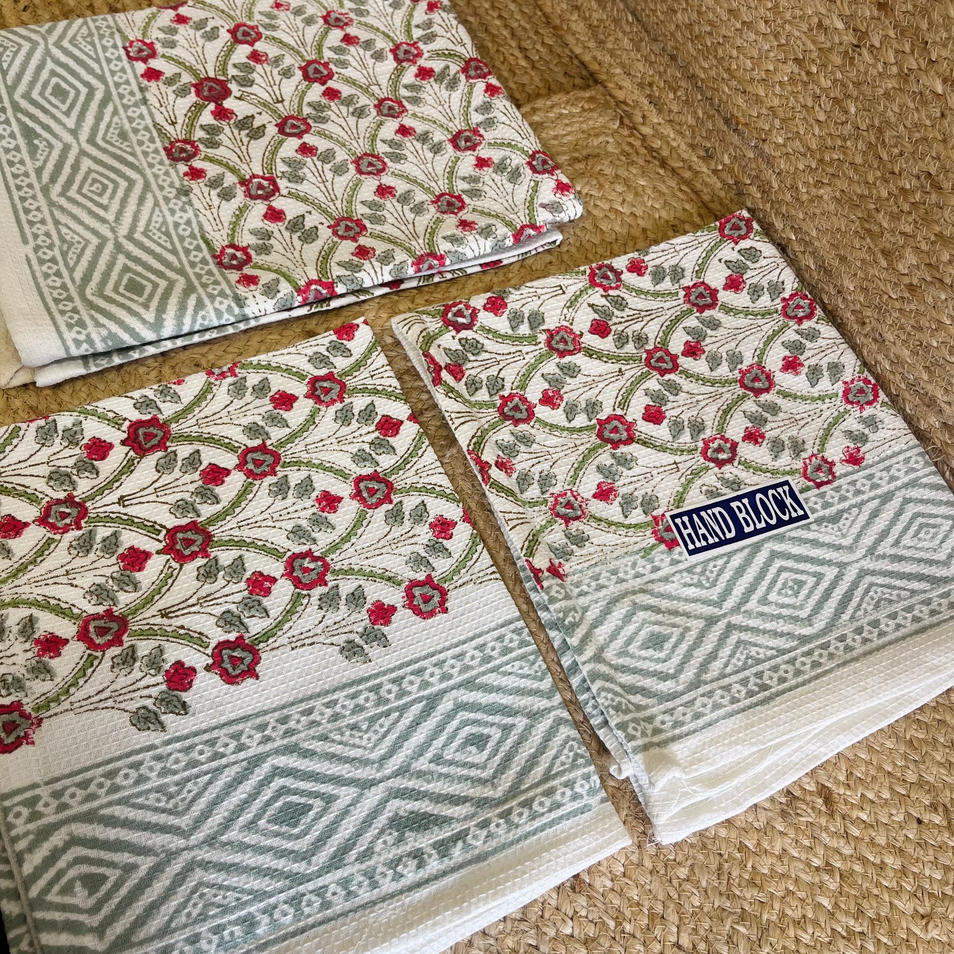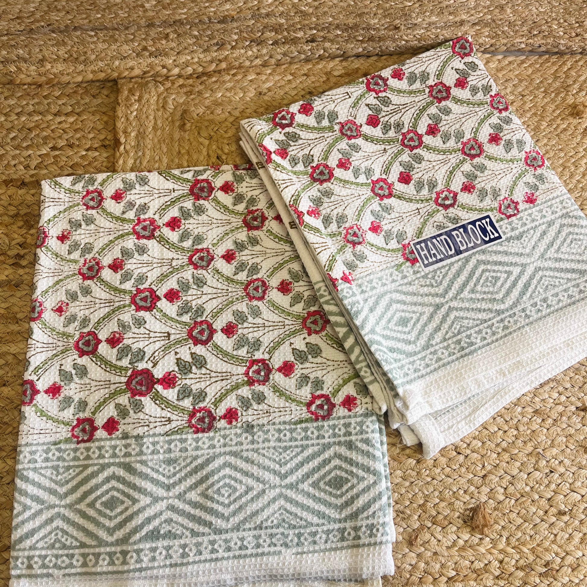 Waffle Cotton Handblock Printed Towel Set – Soft, Absorbent & Artisanal ✨