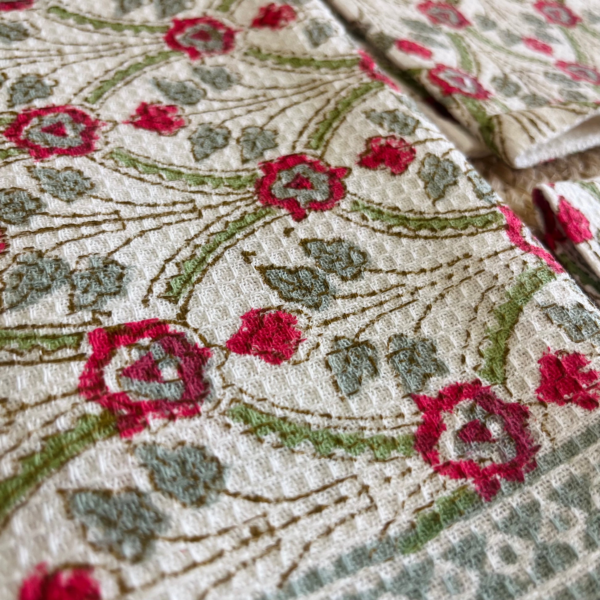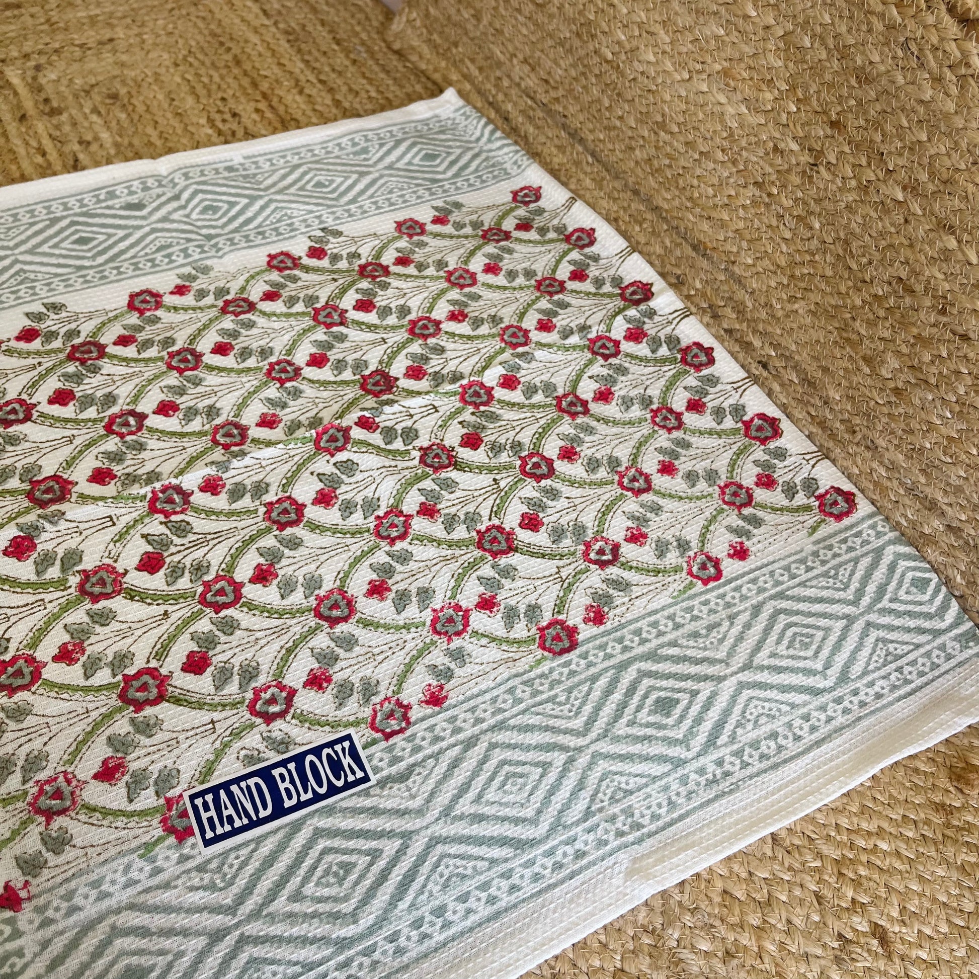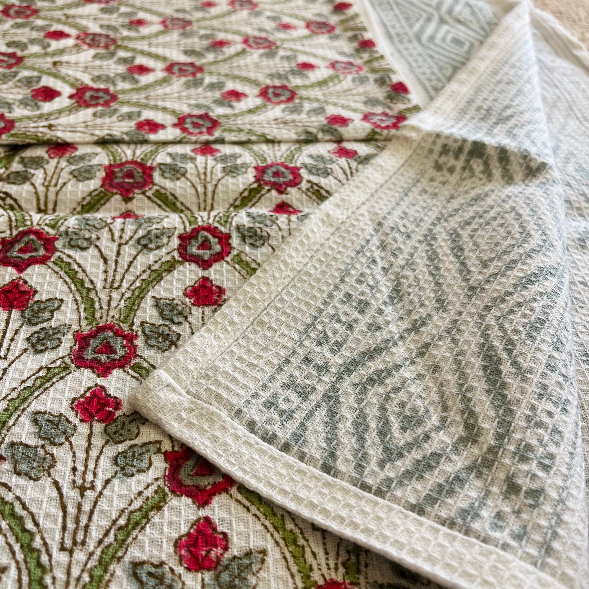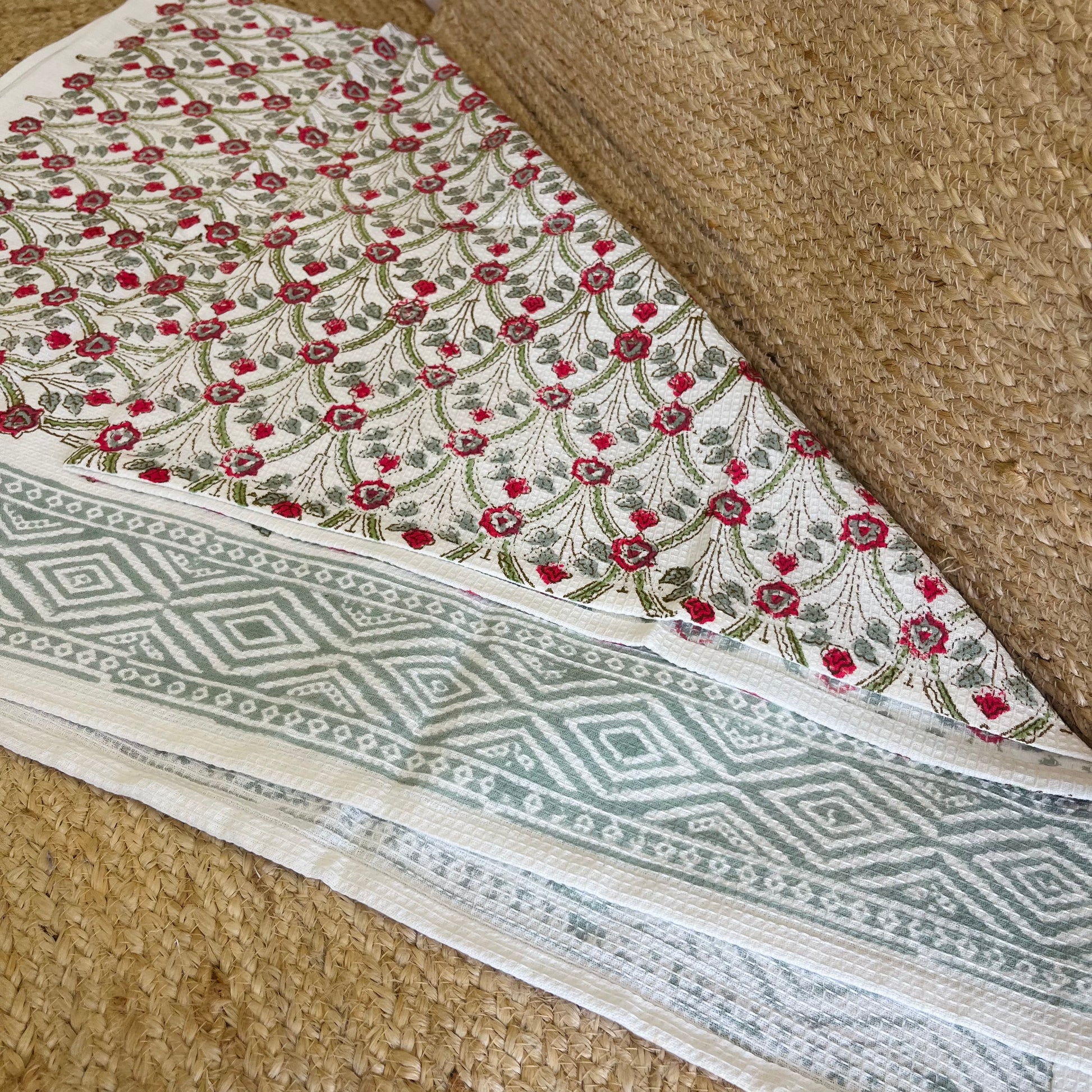 Waffle Cotton Handblock Printed Towel Set – Soft, Absorbent & Artisanal ✨