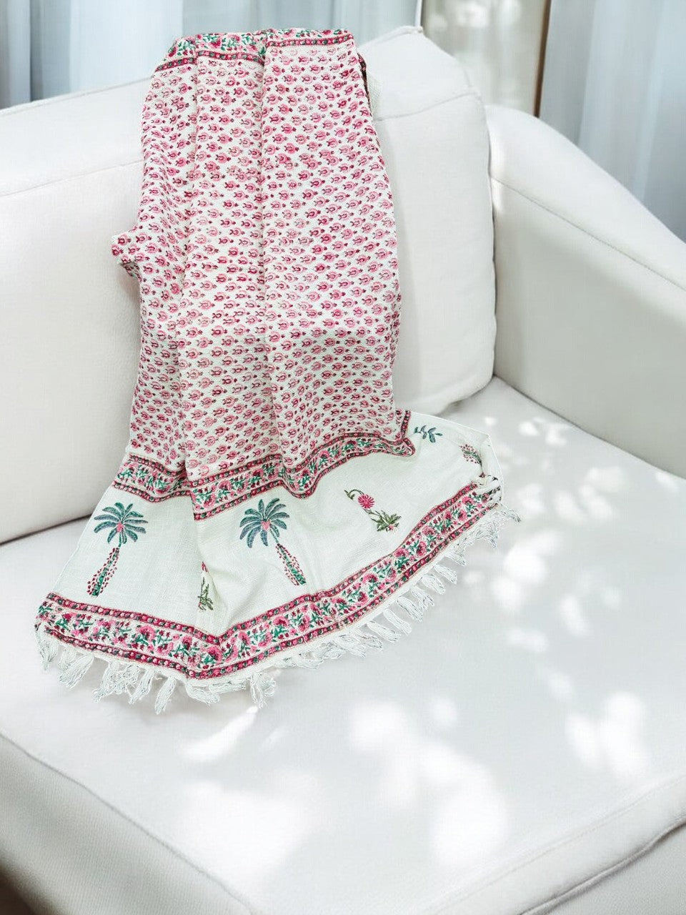 Wrap yourself in luxury and beauty with our Red Floral Premium Handblock TNT Throws! Each throw is handcrafted with intricate floral designs, making it a unique and exquisite addition to your home decor. Experience the soft and comfortable feel, while adding a touch of elegance to any room. Perfect for chilly nights or for adding a pop of color to your living space. Elevate your lifestyle with our premium throws.