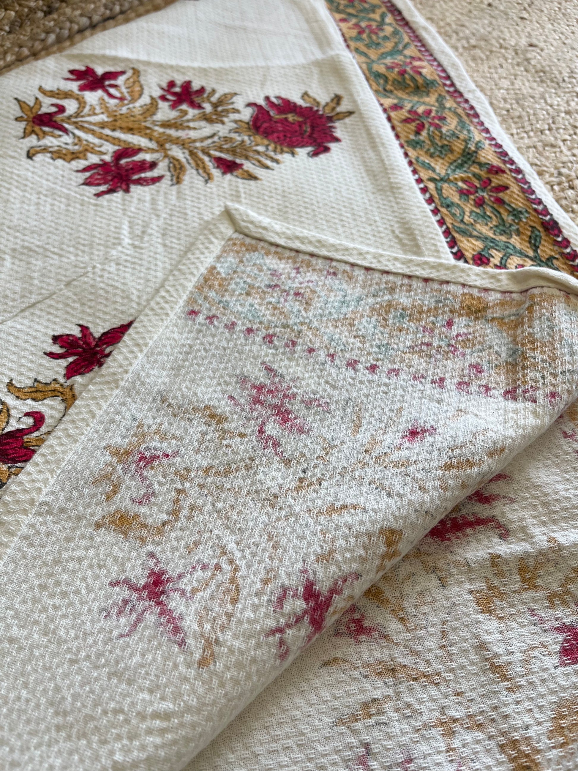Waffle Cotton Handblock Printed Towel Set – Soft, Absorbent & Artisanal ✨