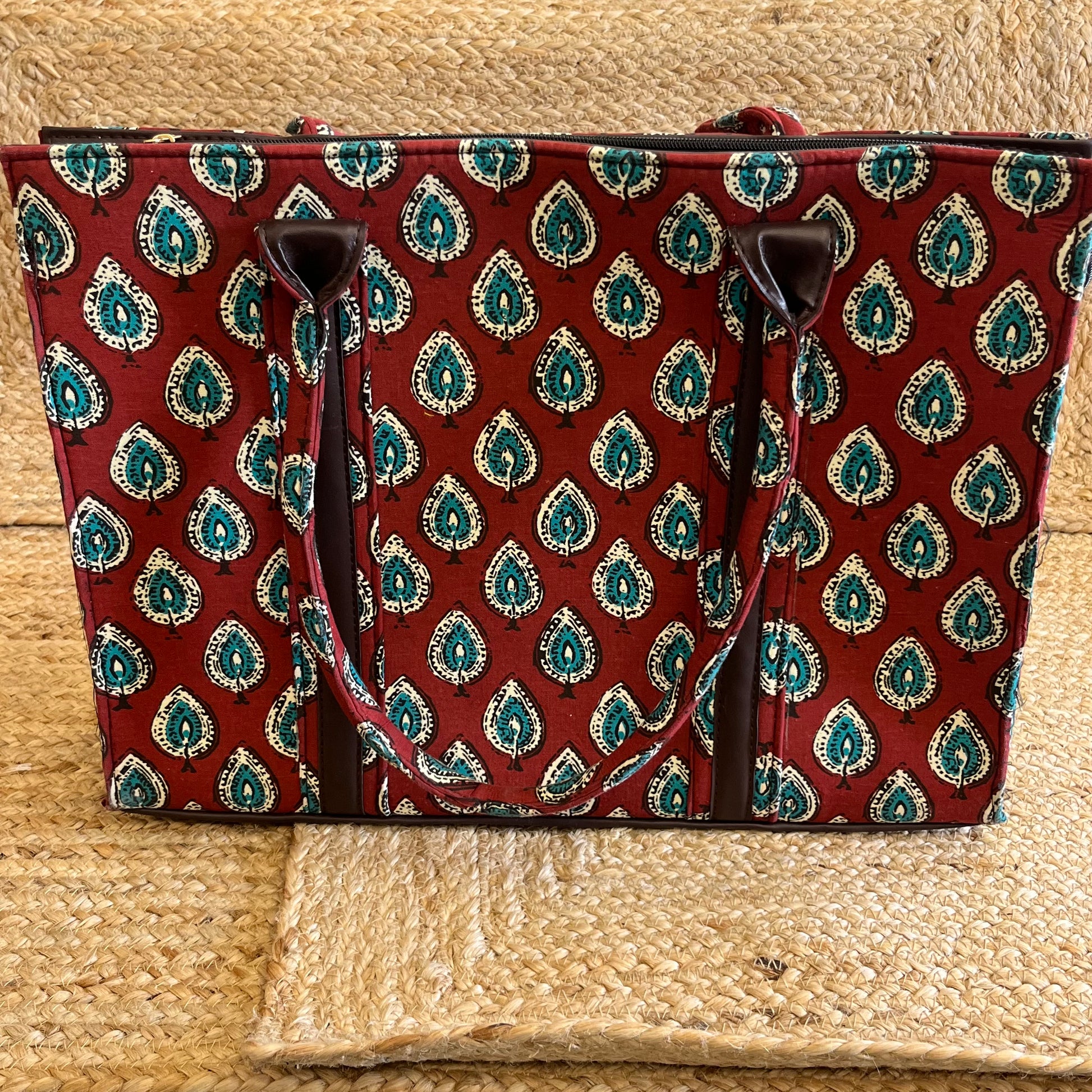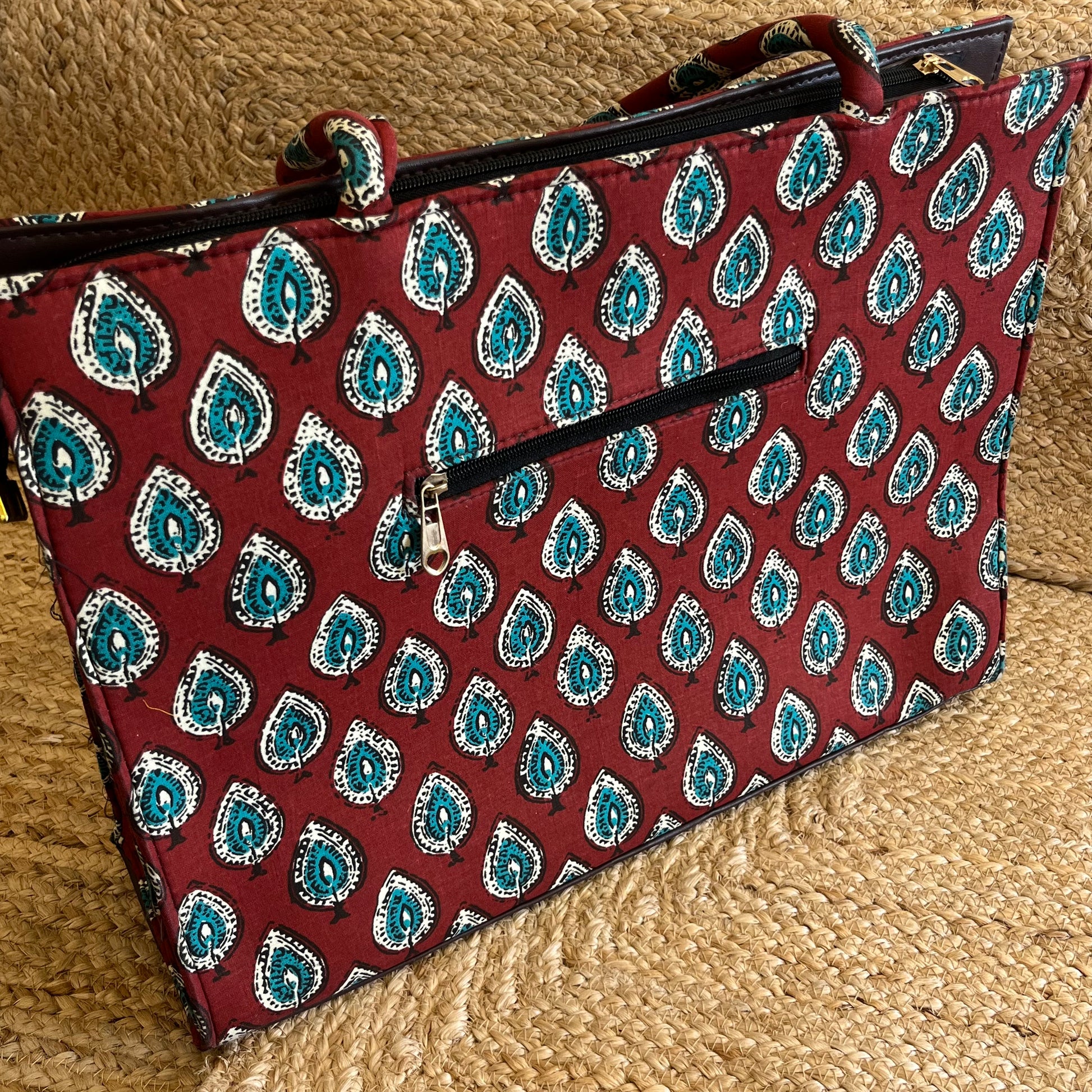 Handblock Printed Vegan Leather Laptop Bag β Stylish & Functional πβ¨