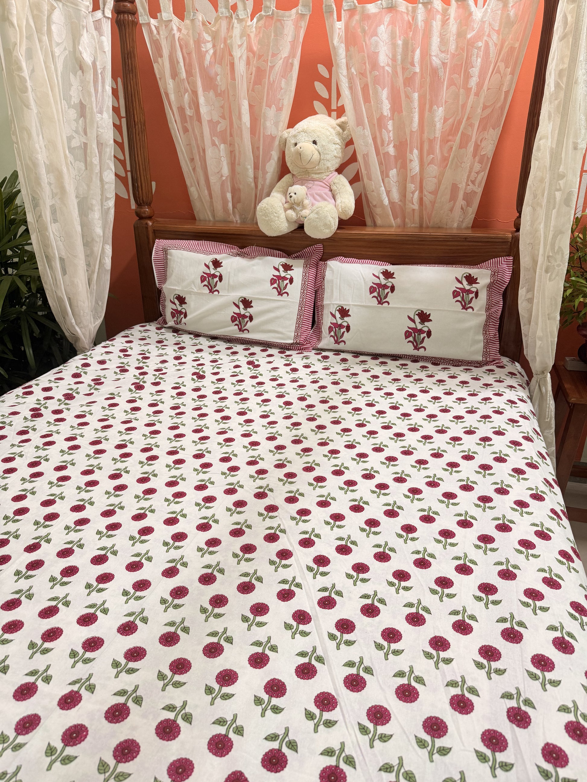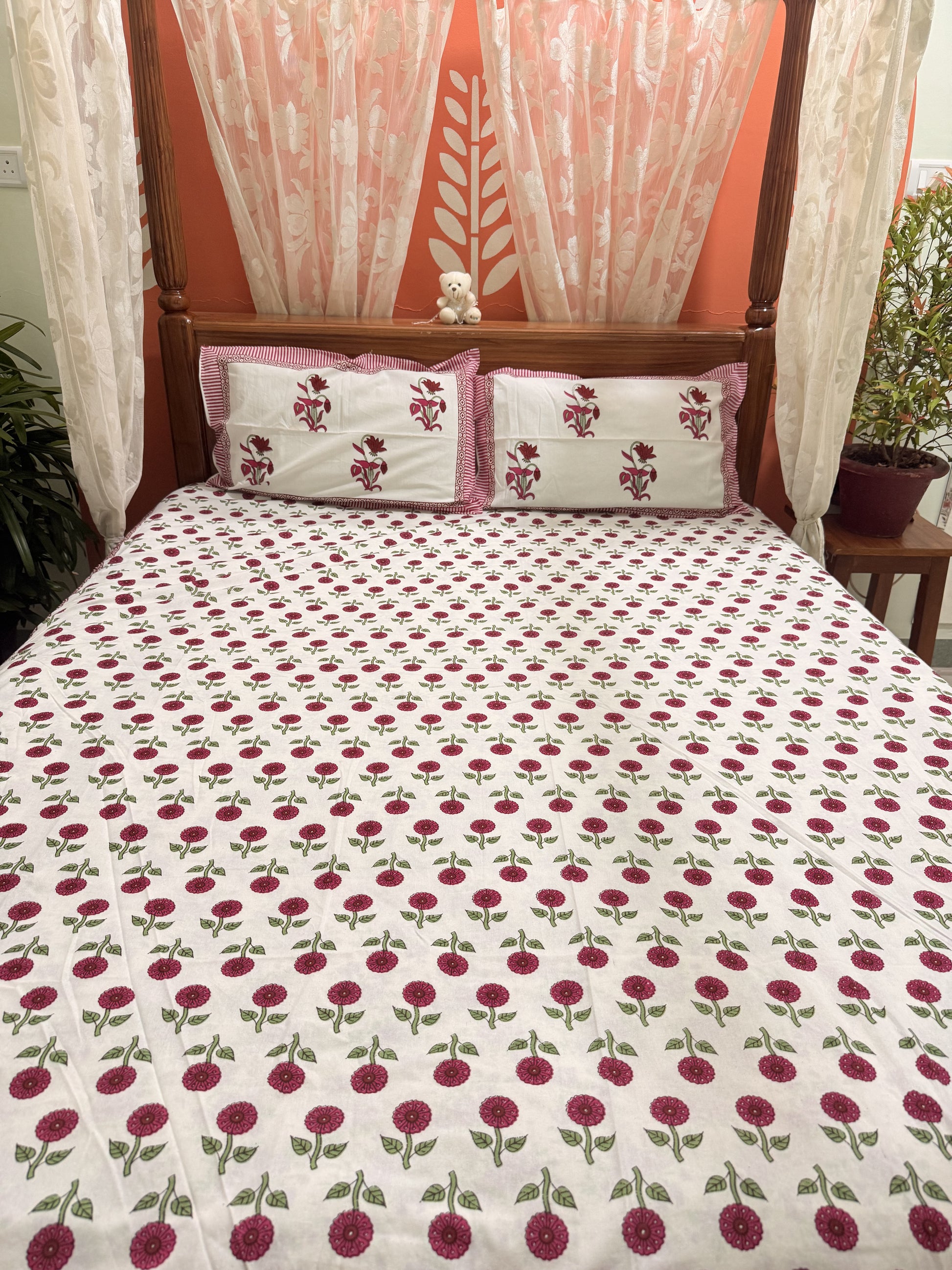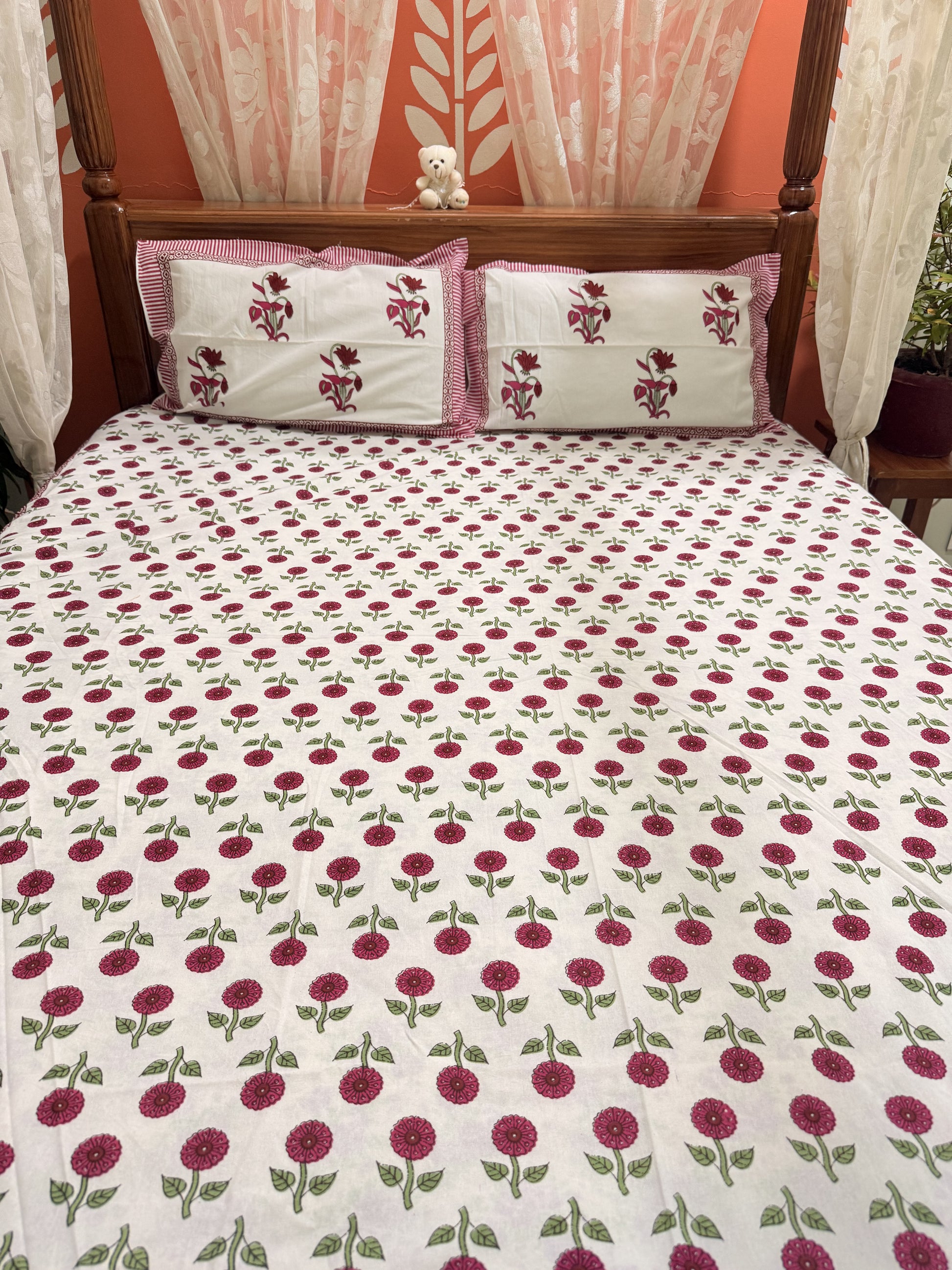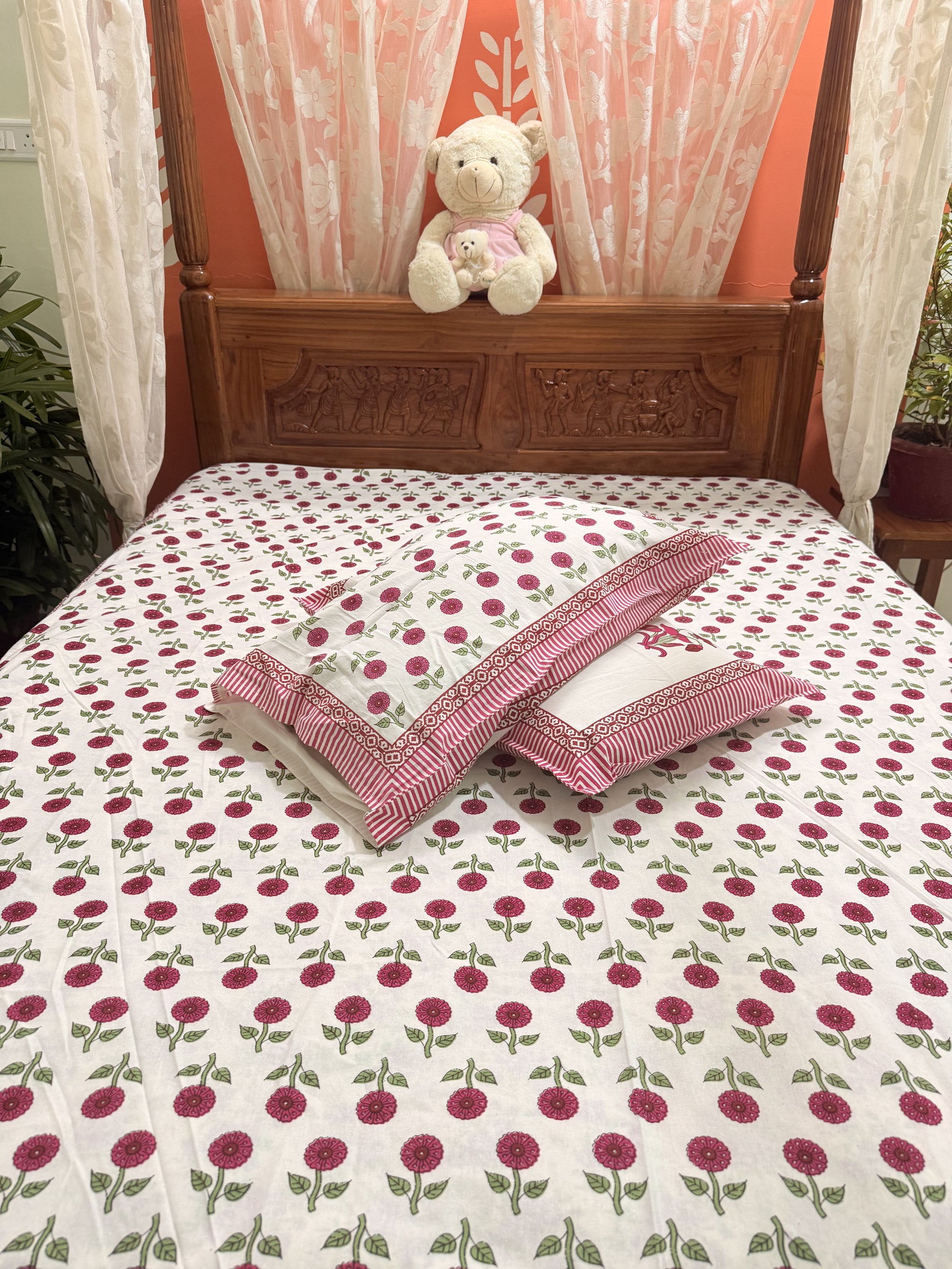 Indulge in the beauty of traditional craftsmanship with this vibrant and elegant bedsheet set, ideal for enhancing your bedroom aesthetics or gifting your loved ones. Experience comfort, culture, and creativity in every thread!