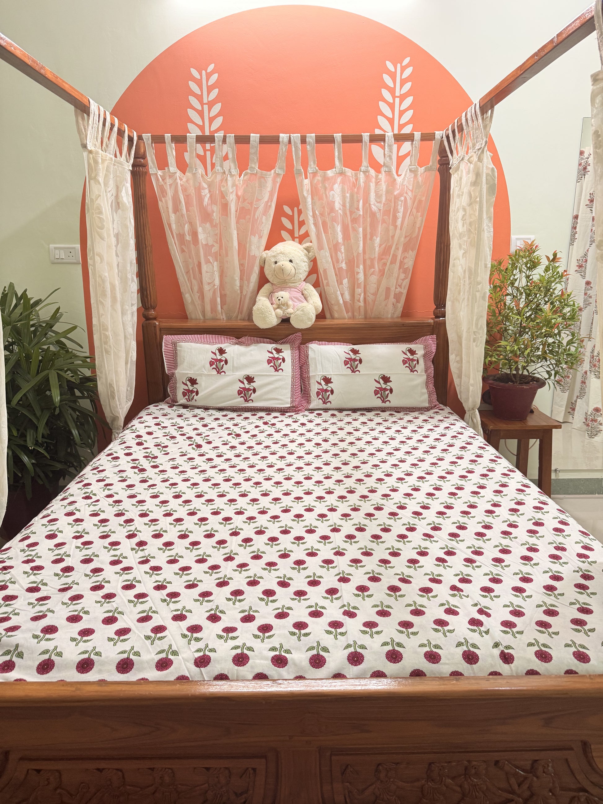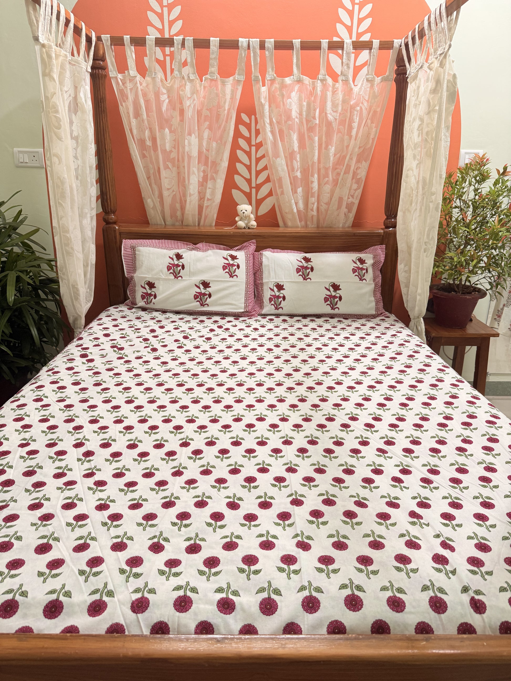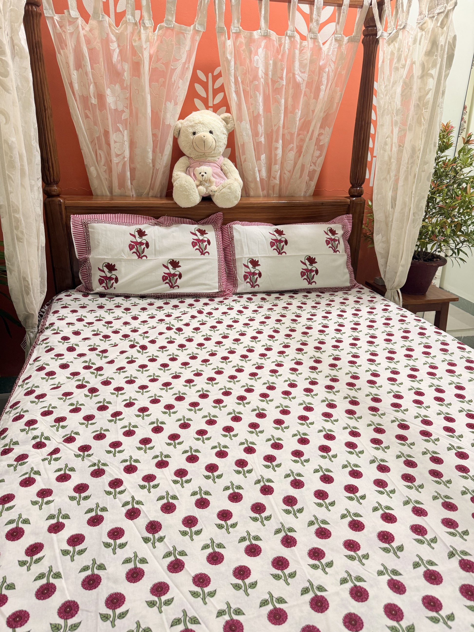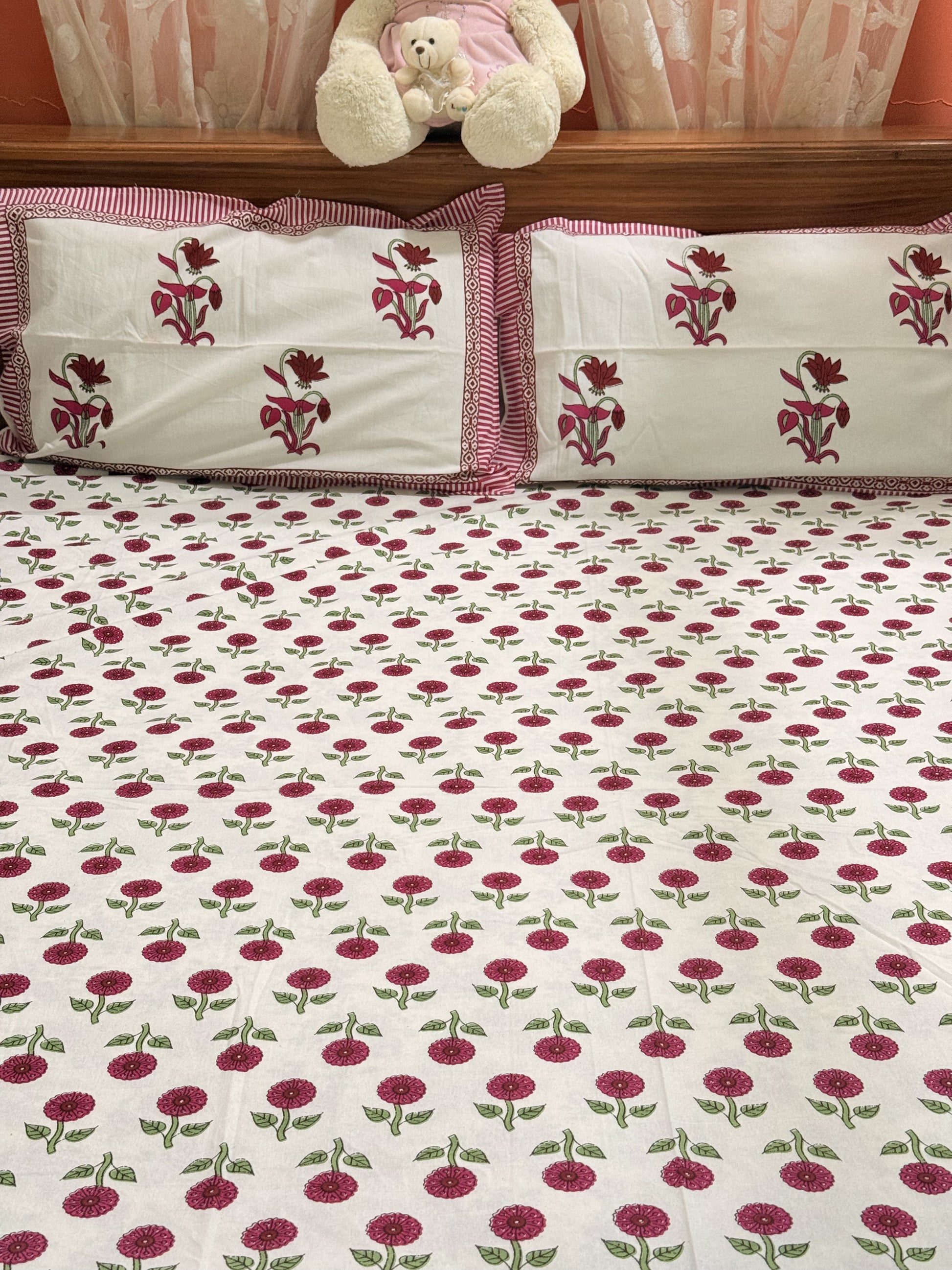Indulge in the beauty of traditional craftsmanship with this vibrant and elegant bedsheet set, ideal for enhancing your bedroom aesthetics or gifting your loved ones. Experience comfort, culture, and creativity in every thread!