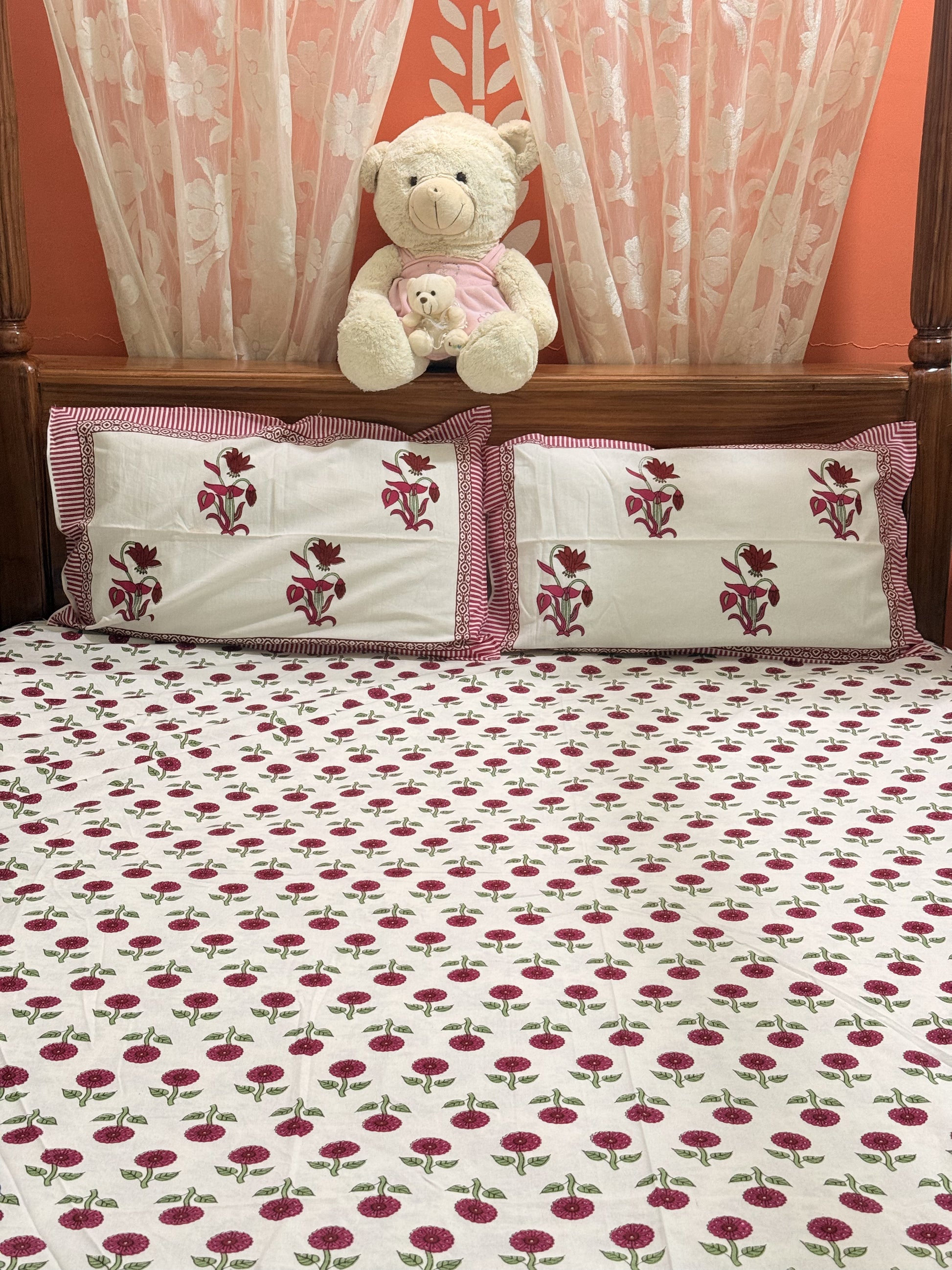 Enjoy the perfect blend of luxury, tradition, and comfort with this beautifully handcrafted bedsheet set!