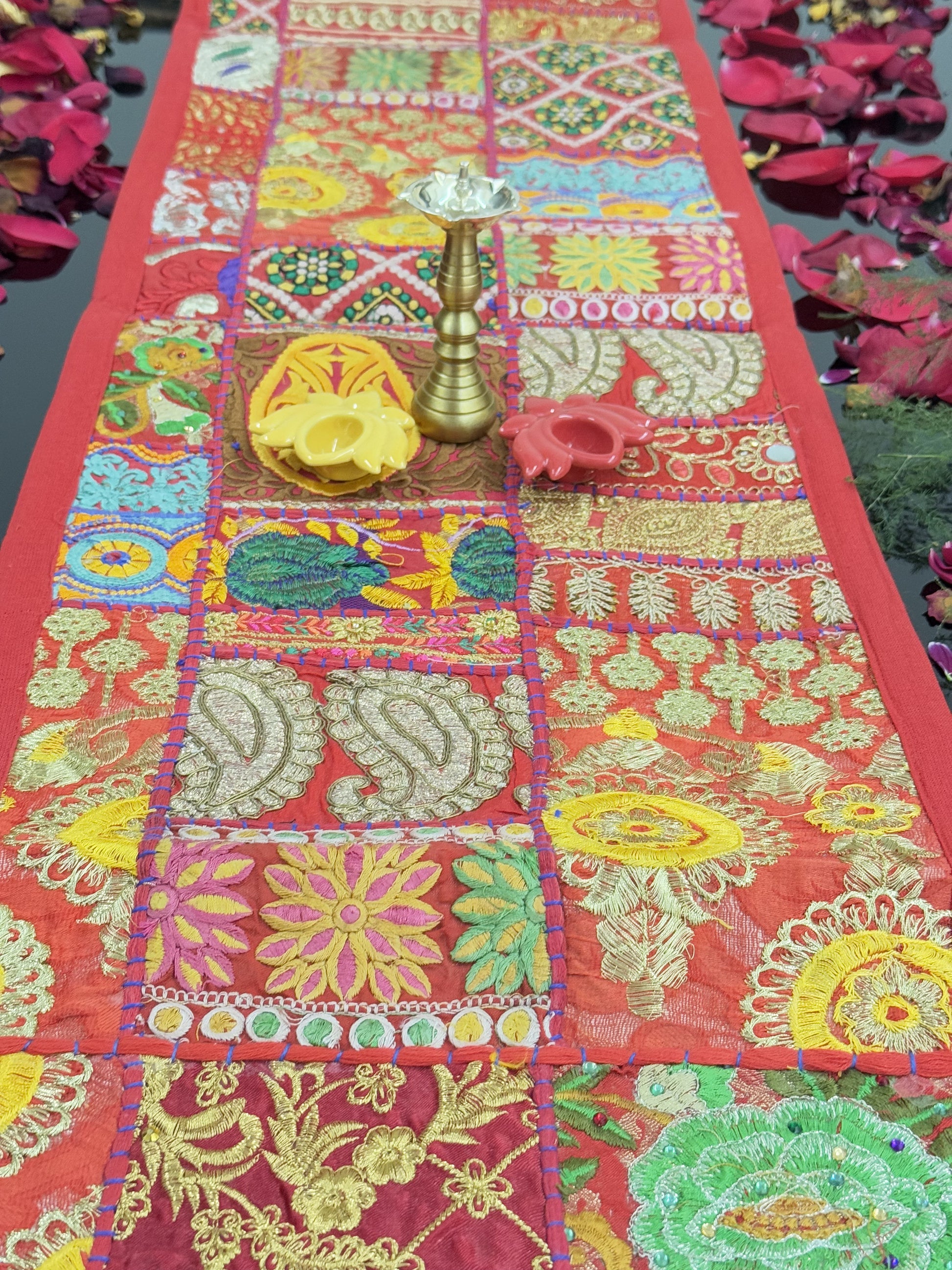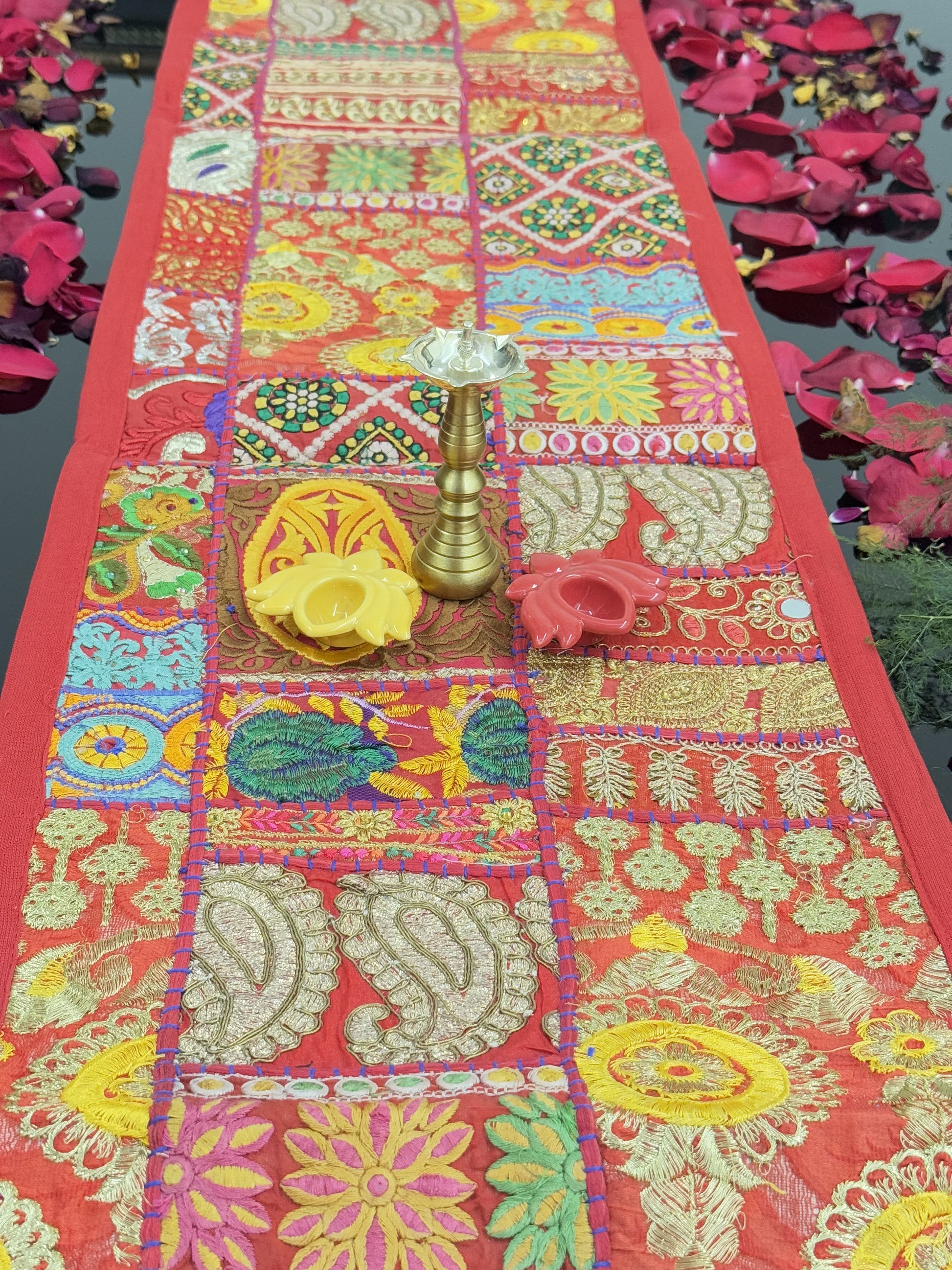 Red Patchwork Rajasthani Runner – Handcrafted Elegance from Rajasthan