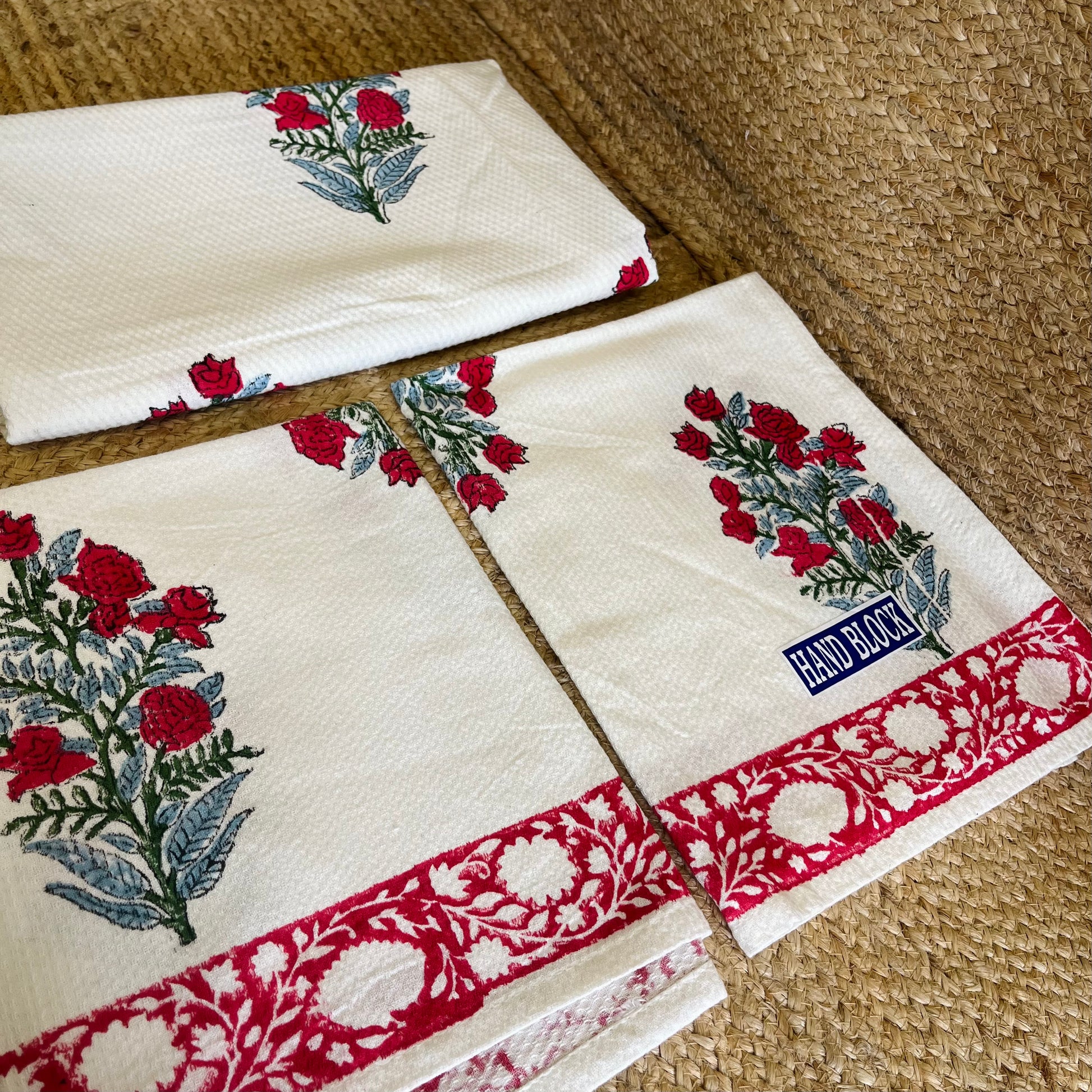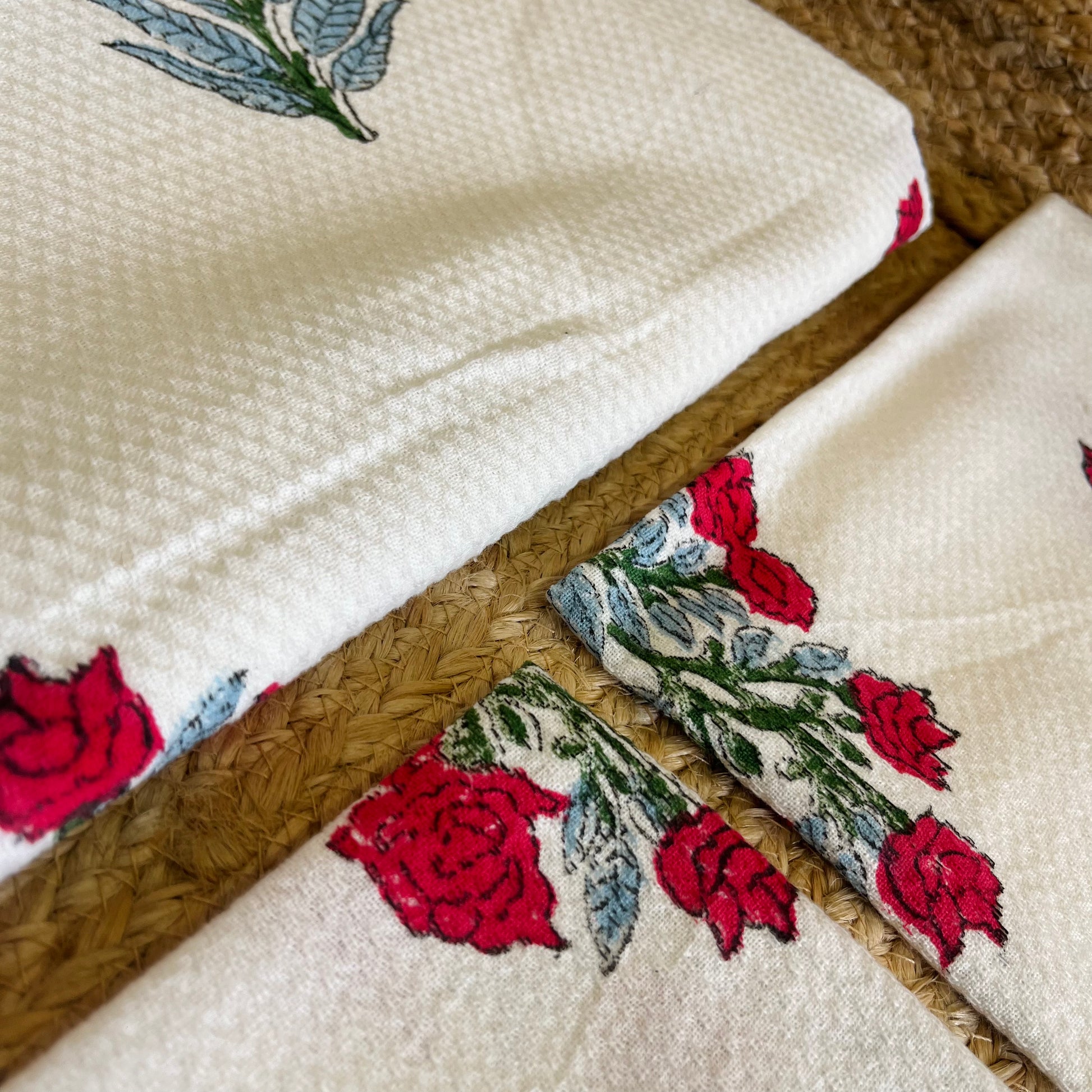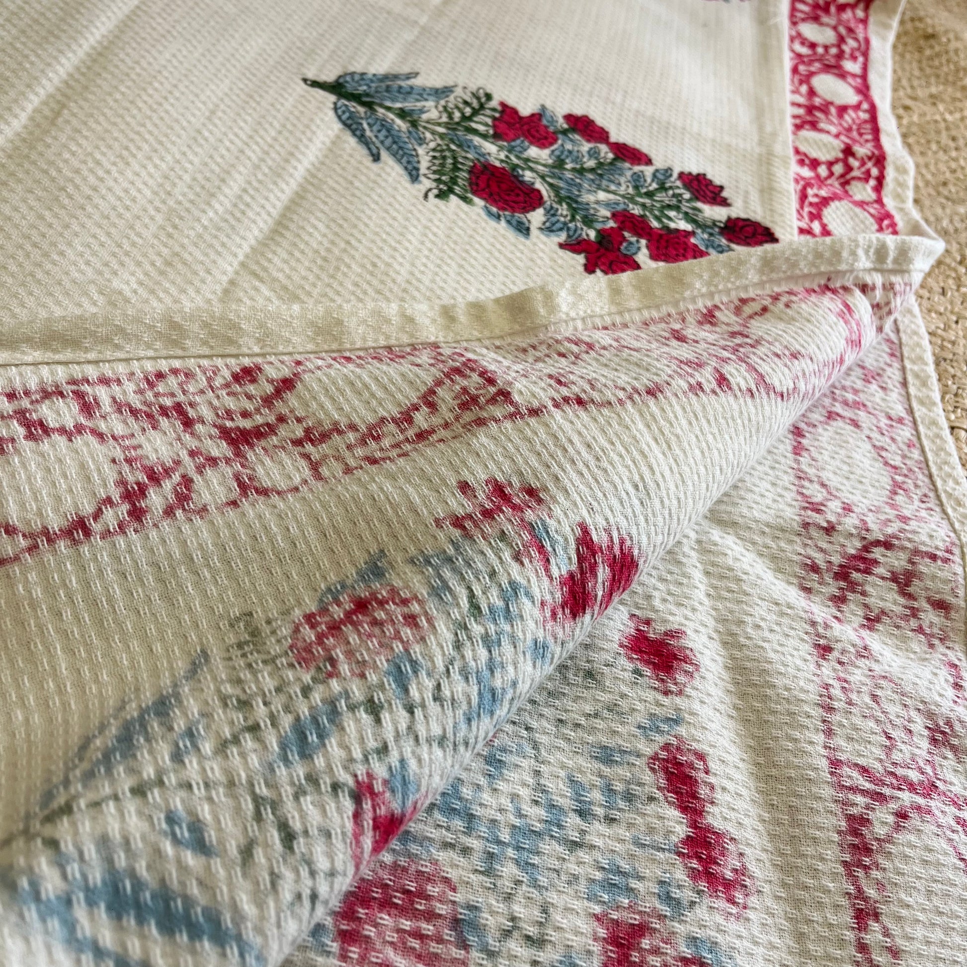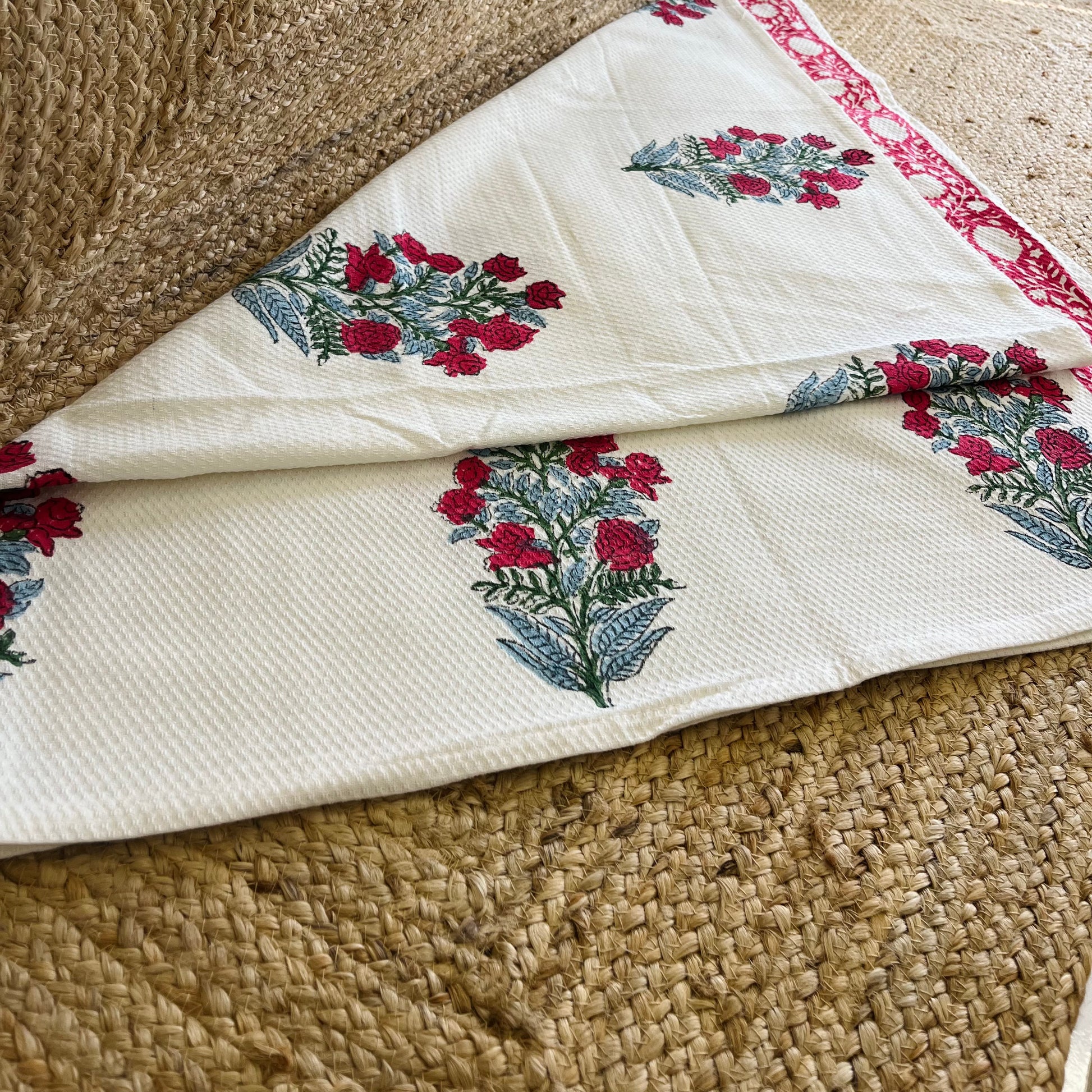 Waffle Cotton Handblock Printed Towel Set – Soft, Absorbent & Artisanal ✨