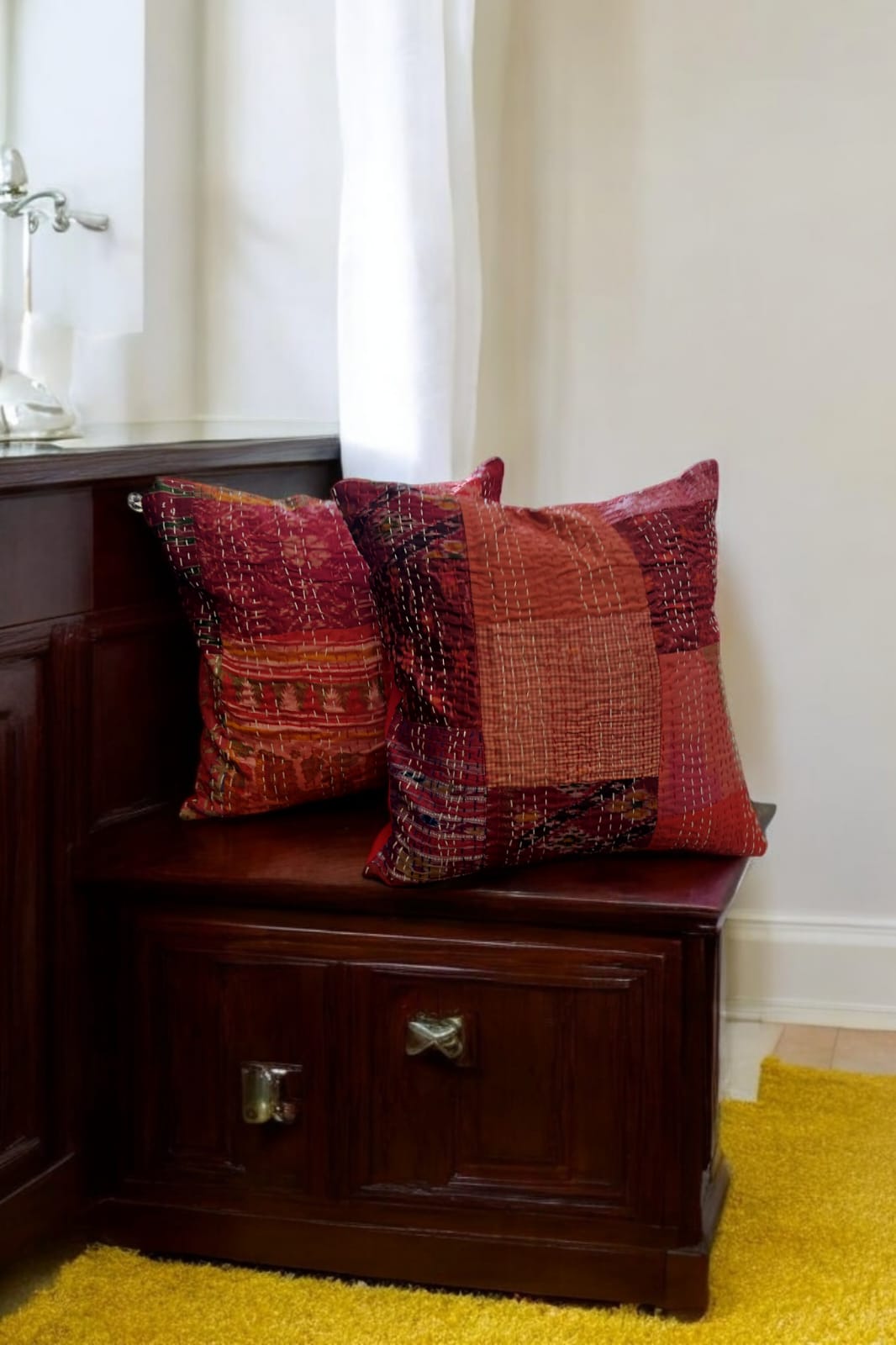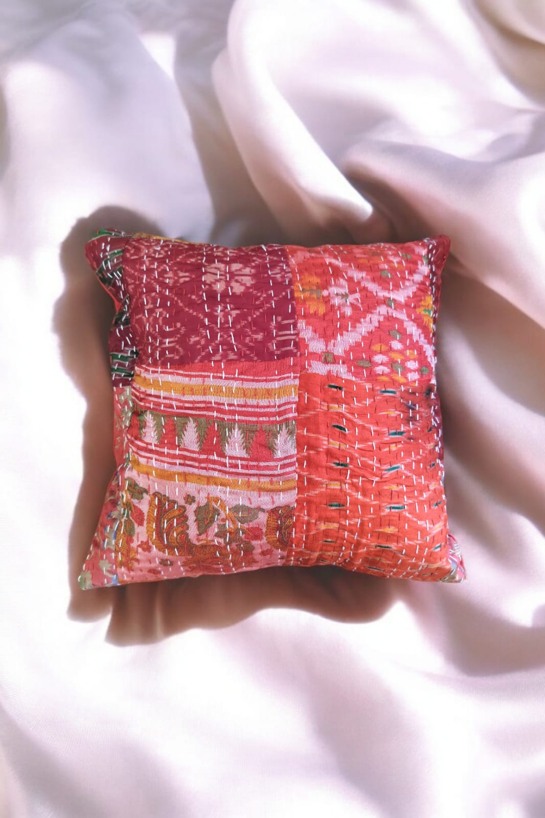 Red silk patchwork cushion cover SET OF 2