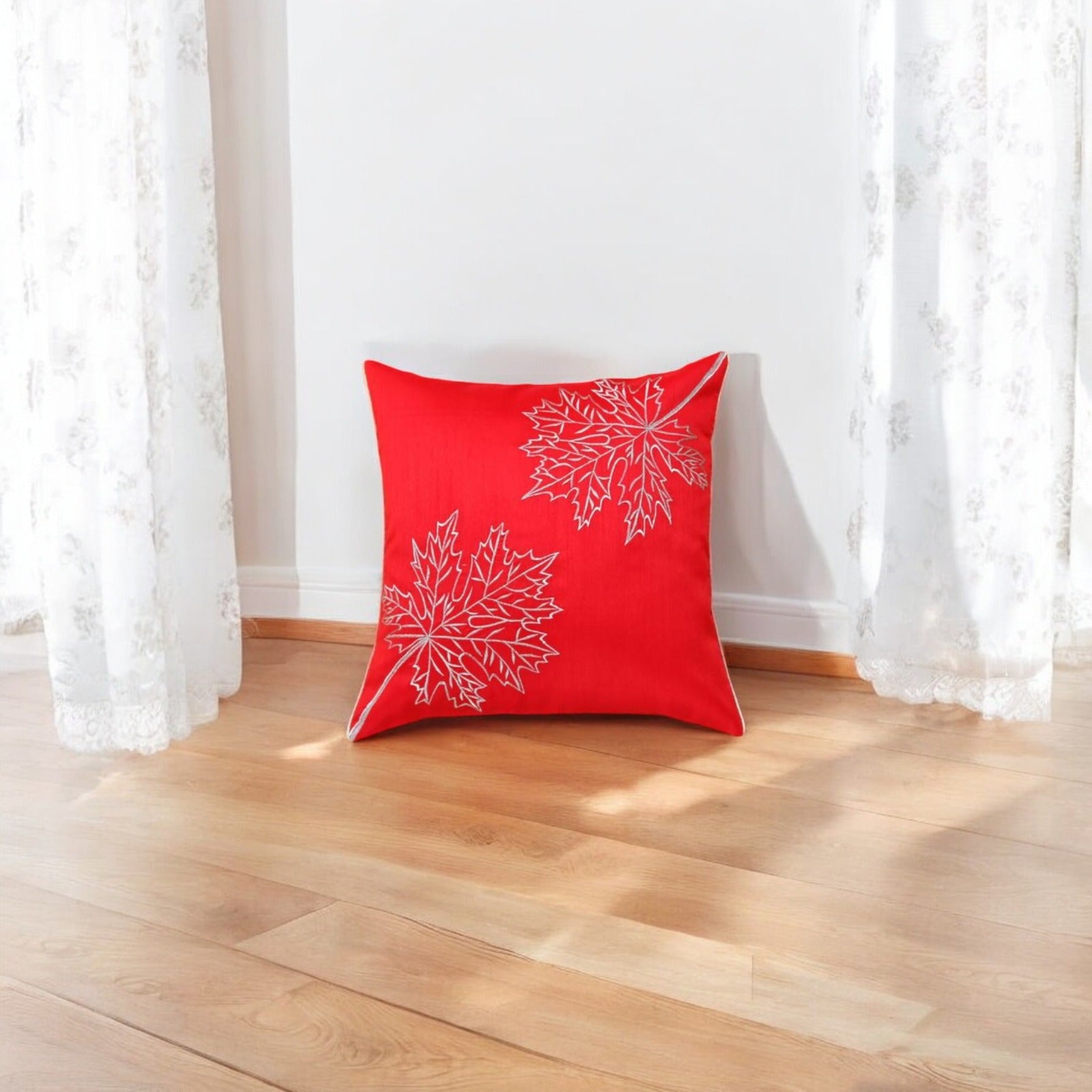 RED ZARI SILK EMBROIDERY CUSHION COVER